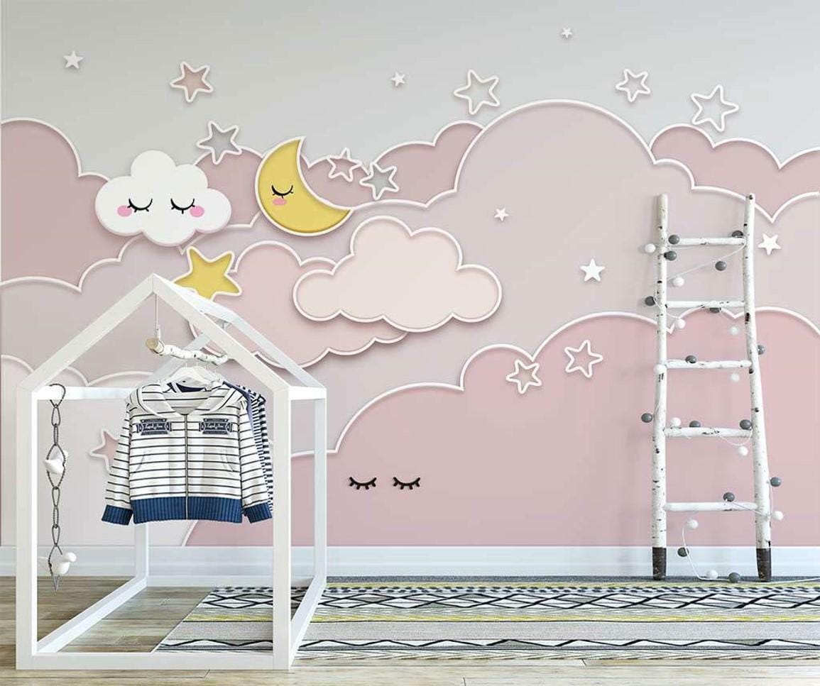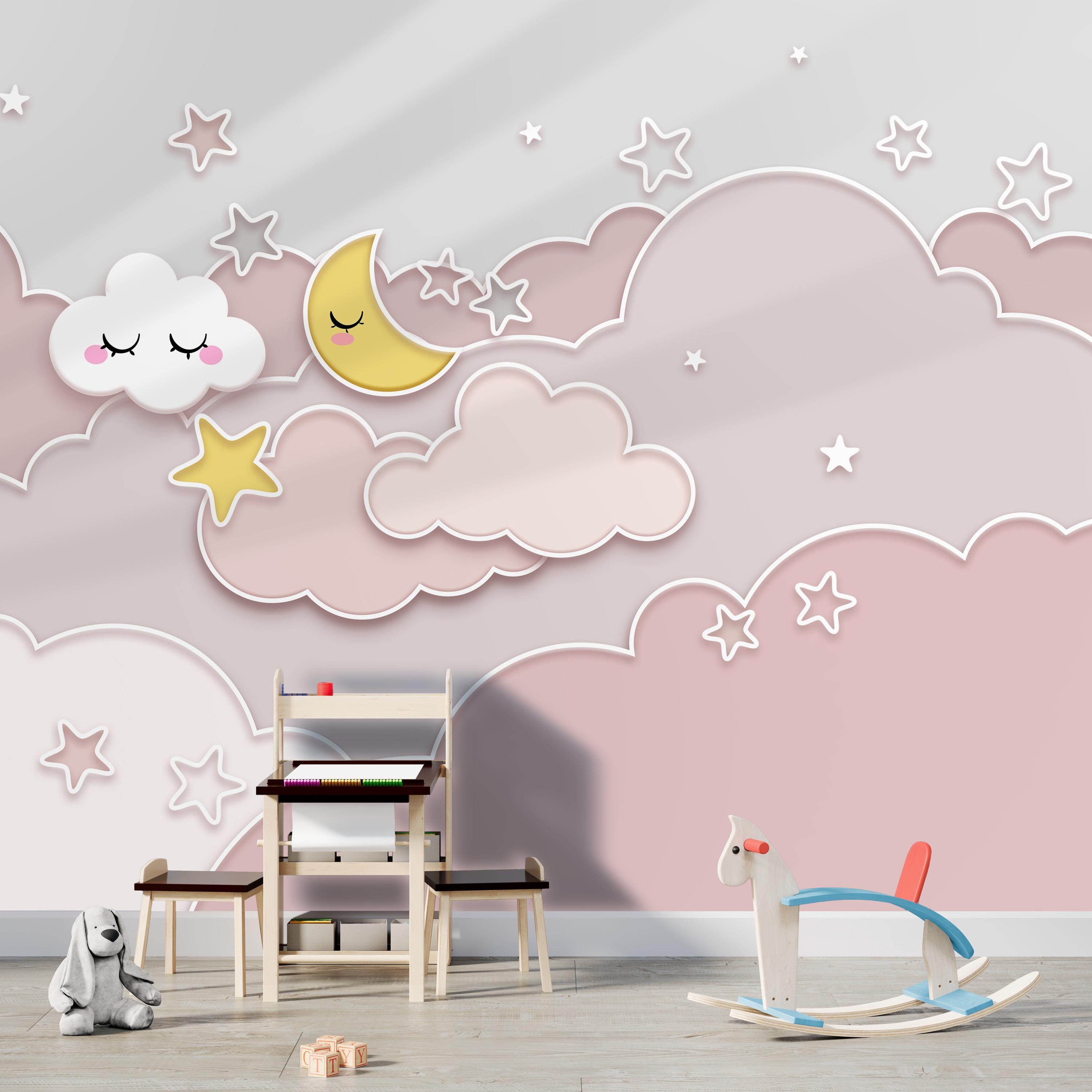 Pink Sky Wallpaper Peel and Stick Wallpaper, Girls Room Wallpaper, Nursery Wallpaper, Removable Wall Paper