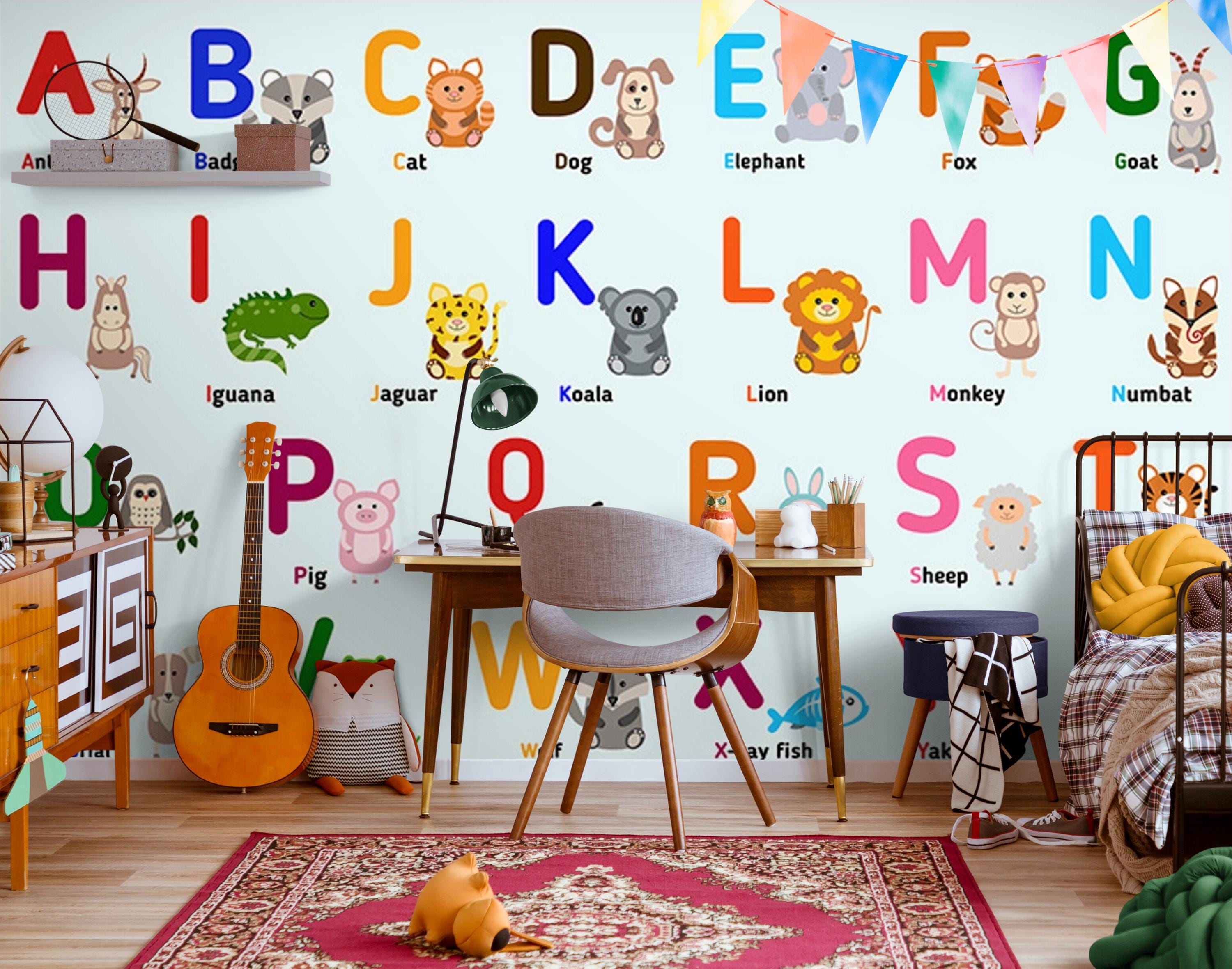 Alphabet wallpaper, Child Room Educational Wallpaper, Animal alphabet Theme Nursery Wall Mural, Kid's Room Decoration