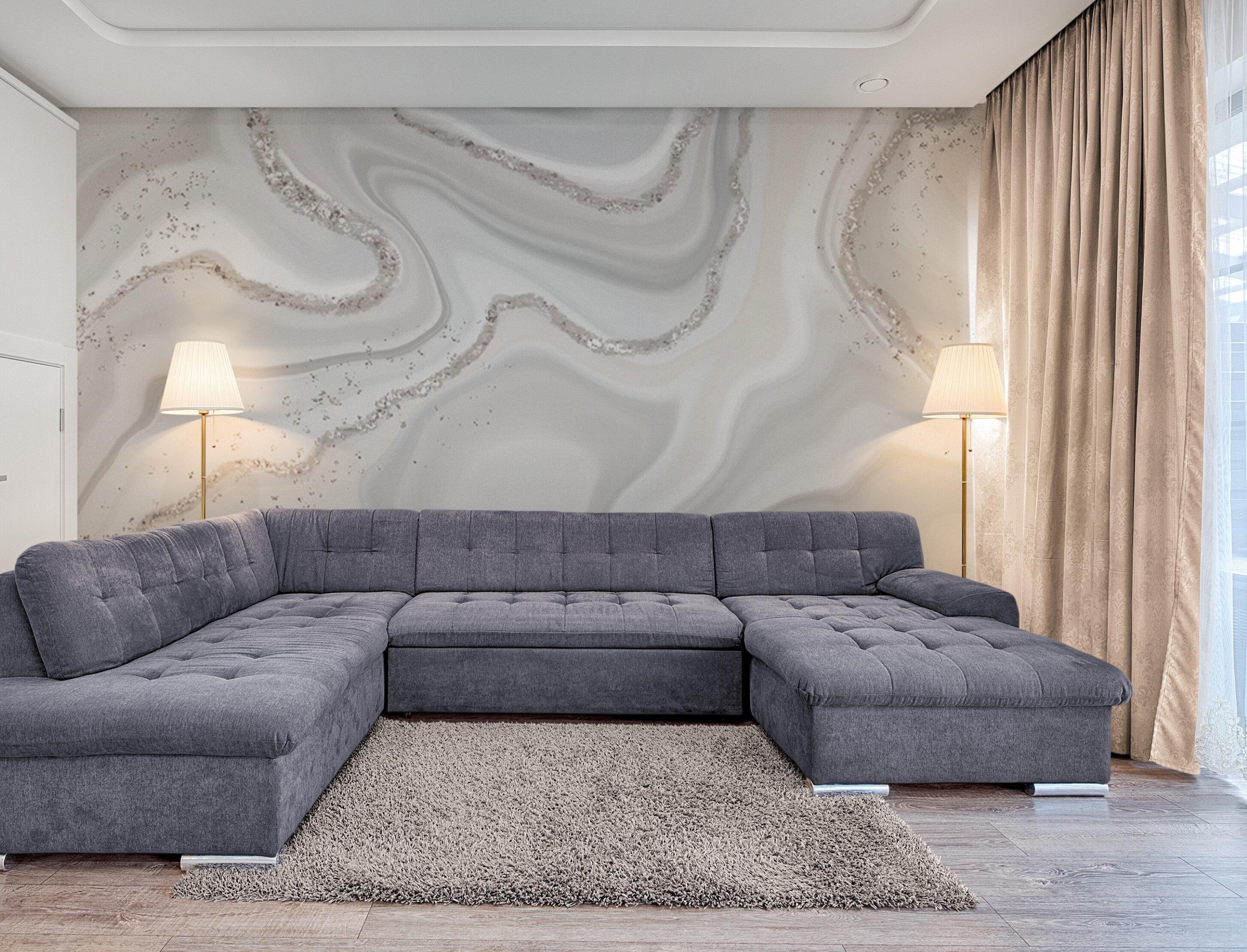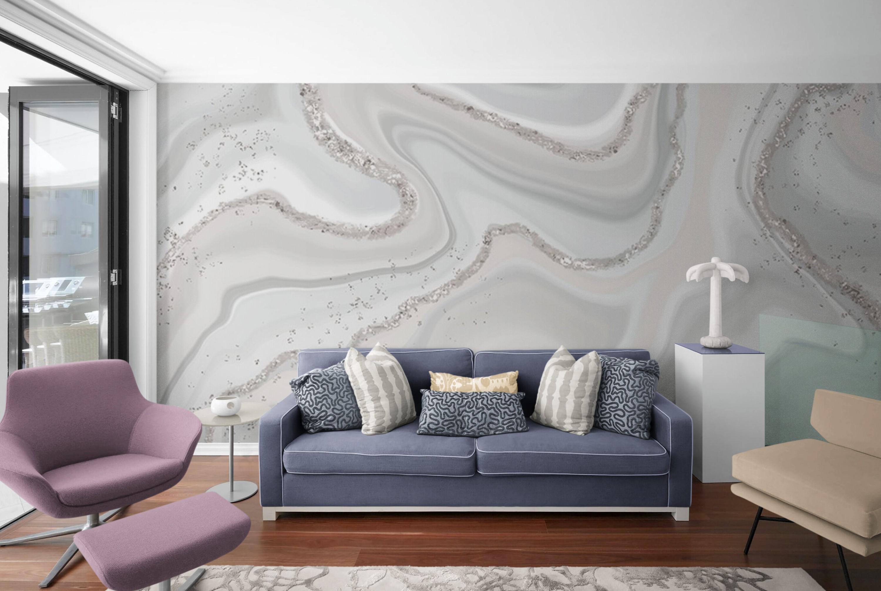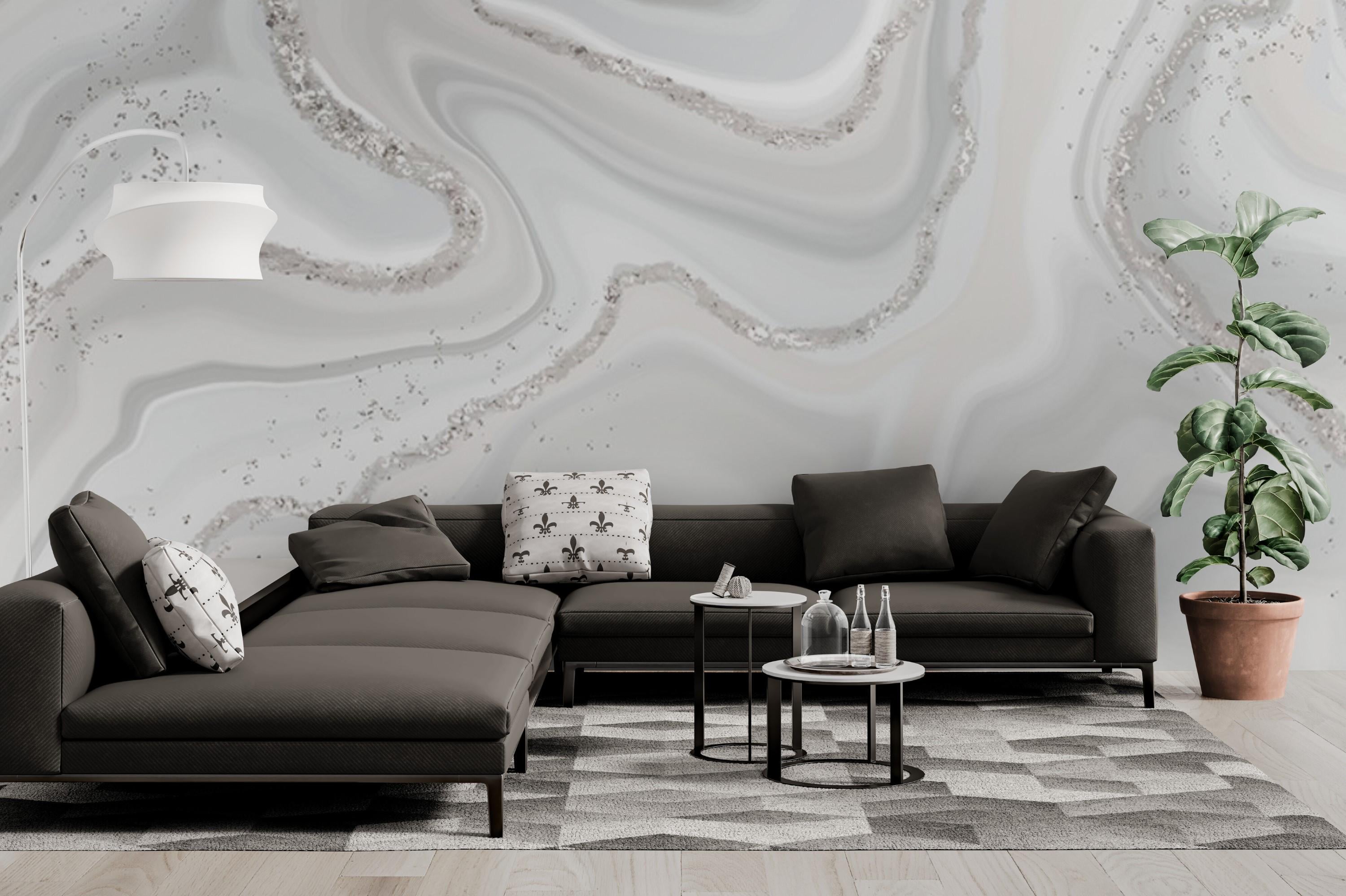 Our Marble Style Wallpaper Wall Mural boasts the timeless elegance of natural stone, enhanced by dazzling silver glitter, perfect for transforming any bedroom or living room into a luxurious sanctuary. Bring a touch of sophistication and glamour to your space with this exquisite marble-inspired wallpaper.