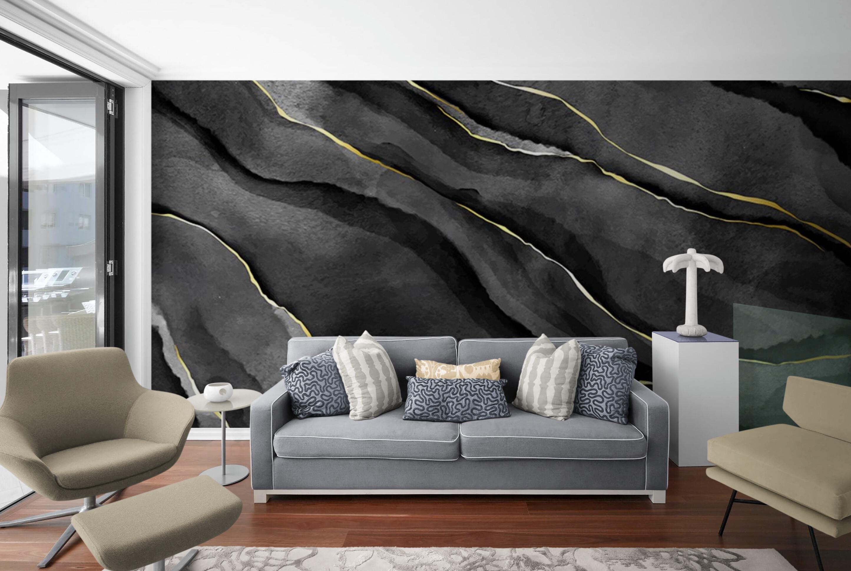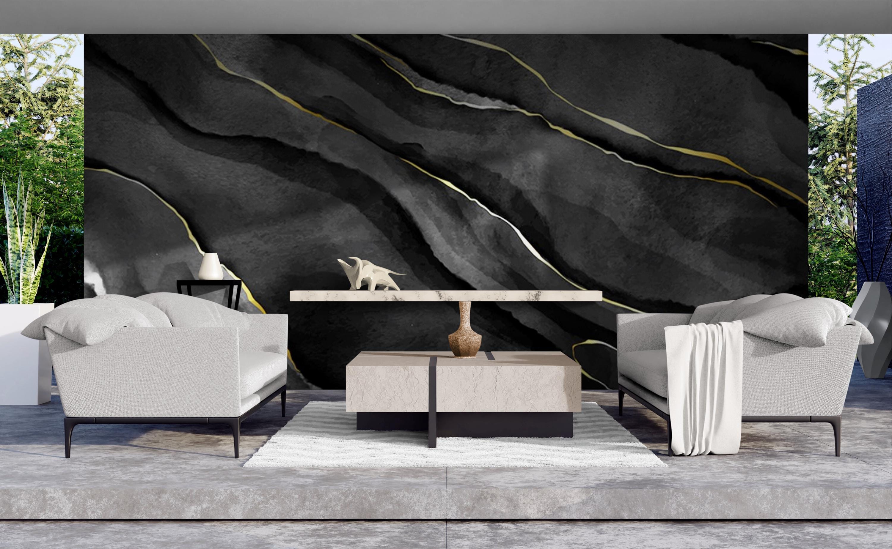 Our Marble Style Wallpaper Wall Mural exudes sophistication, blending striking black hues with elegant gold detailing for a luxurious touch. Perfect for transforming any space, from bedrooms to living rooms and entryways, into a realm of timeless elegance and style.