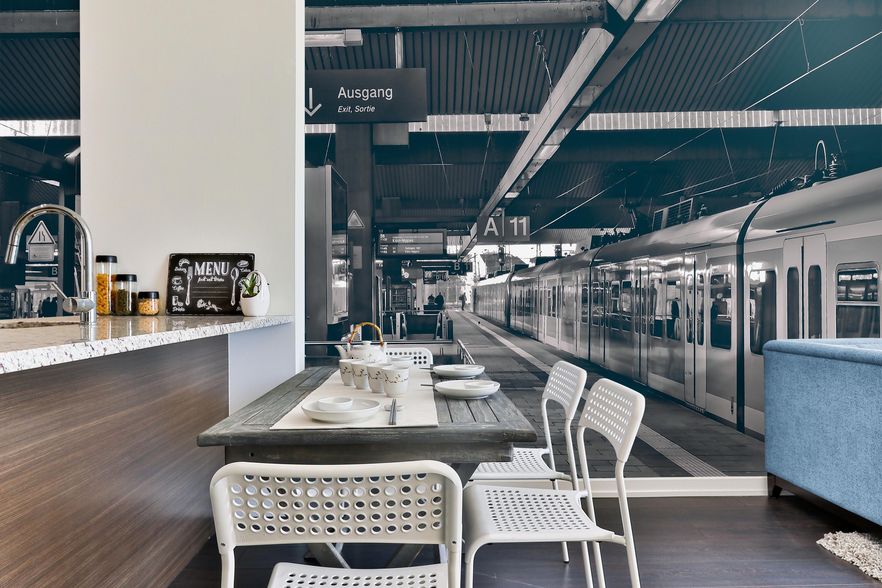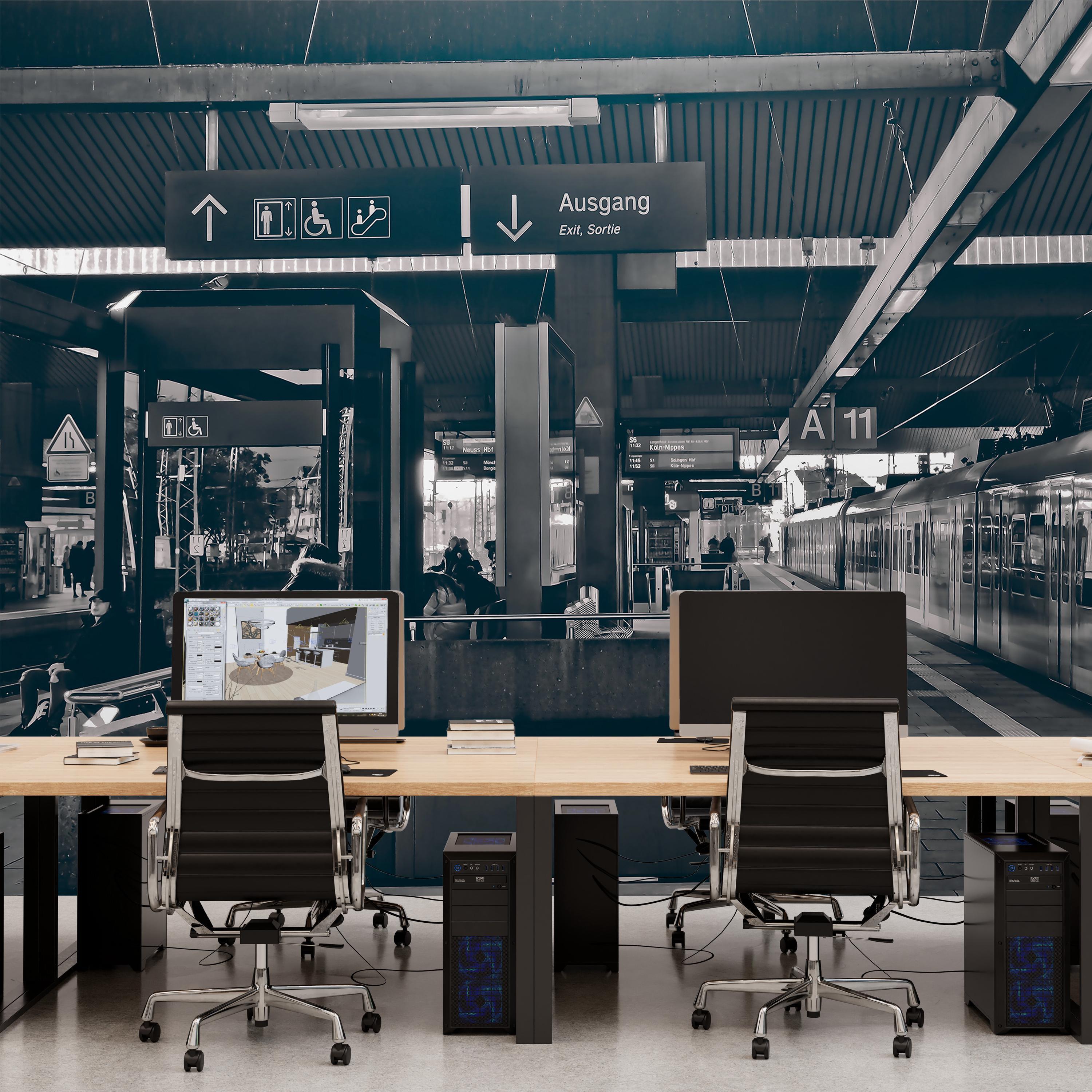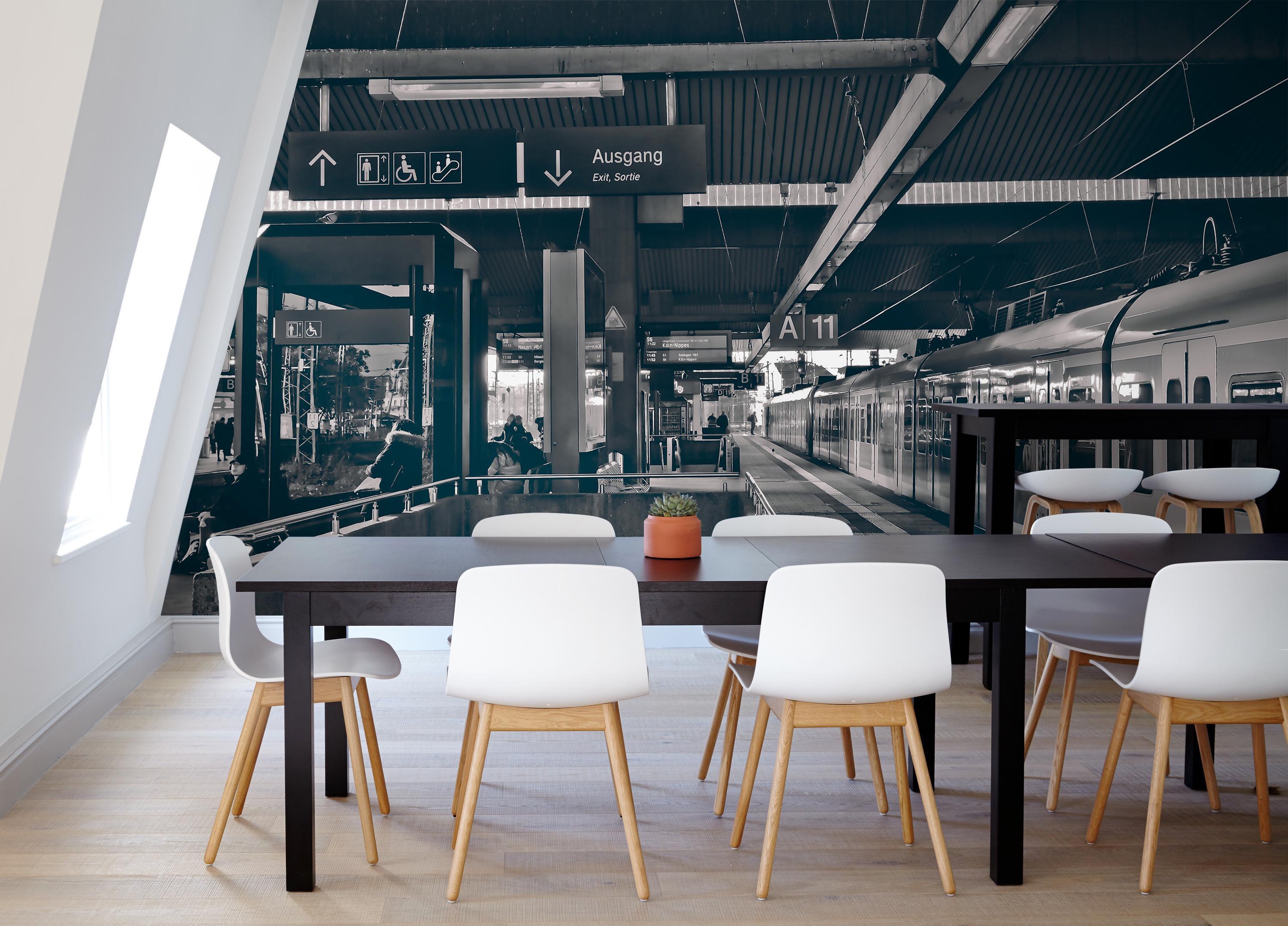 Train Station Wallpaper, Modern Black and White Wall Mural, Large Luxury Wall Decal for Livingroom or Office, Peel and Stick or Traditional