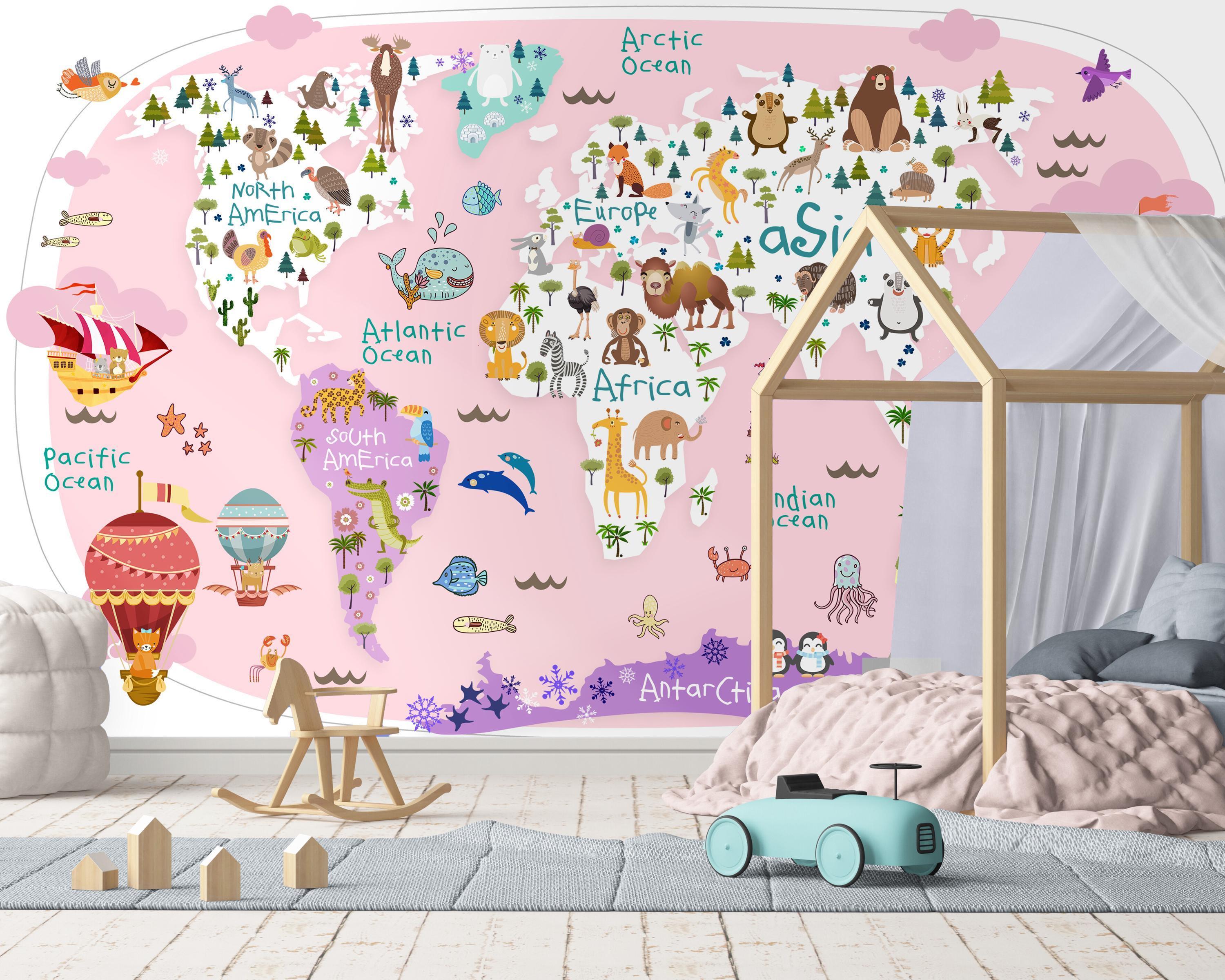 Brighten up your child’s room with our Custom Size Pink World Map Wallpaper. This charming wall mural, available in peel-and-stick, features a playful and educational design perfect for nurseries or kids' rooms. Easy to apply and remove, it’s an ideal choice for creating a fun and inviting space for your little one.