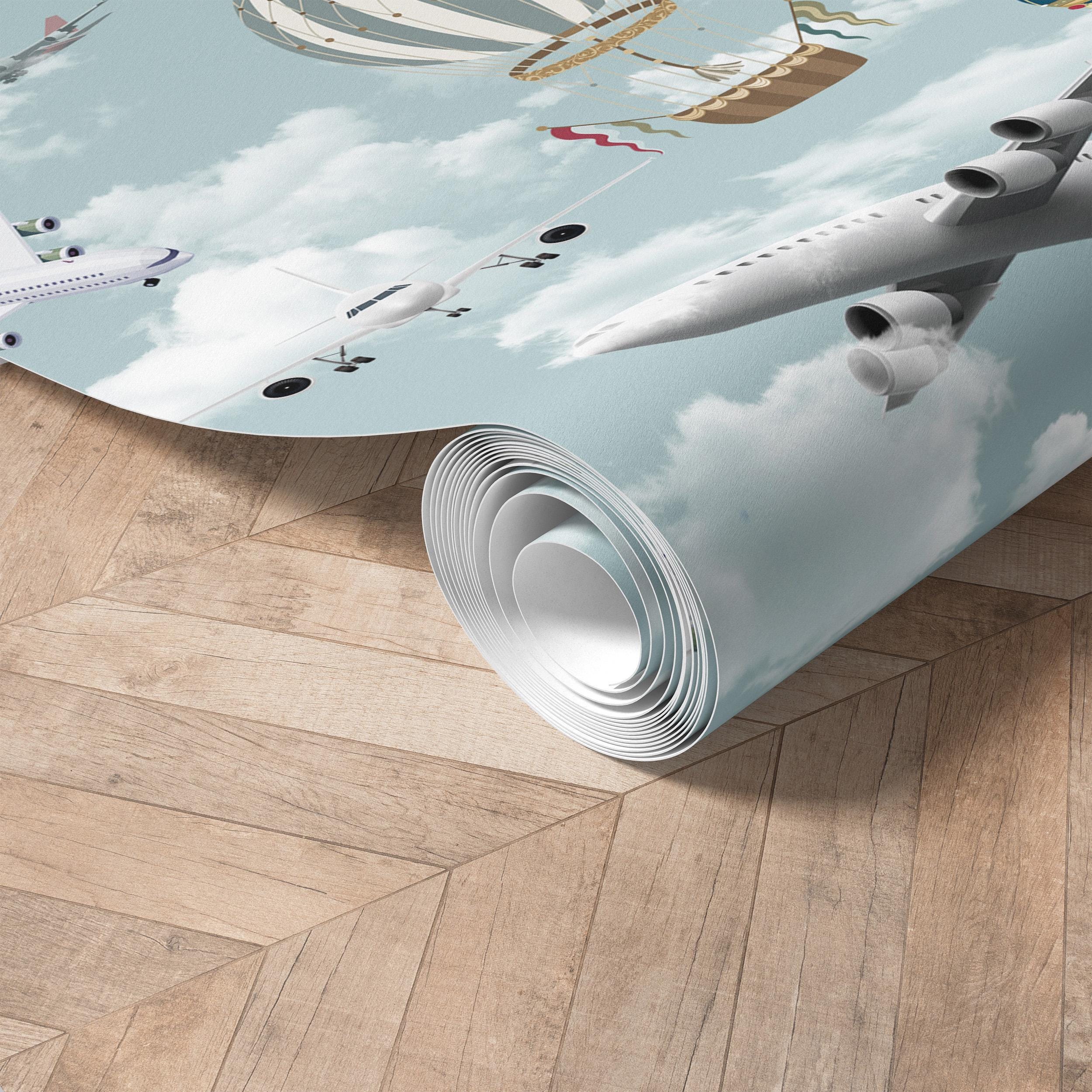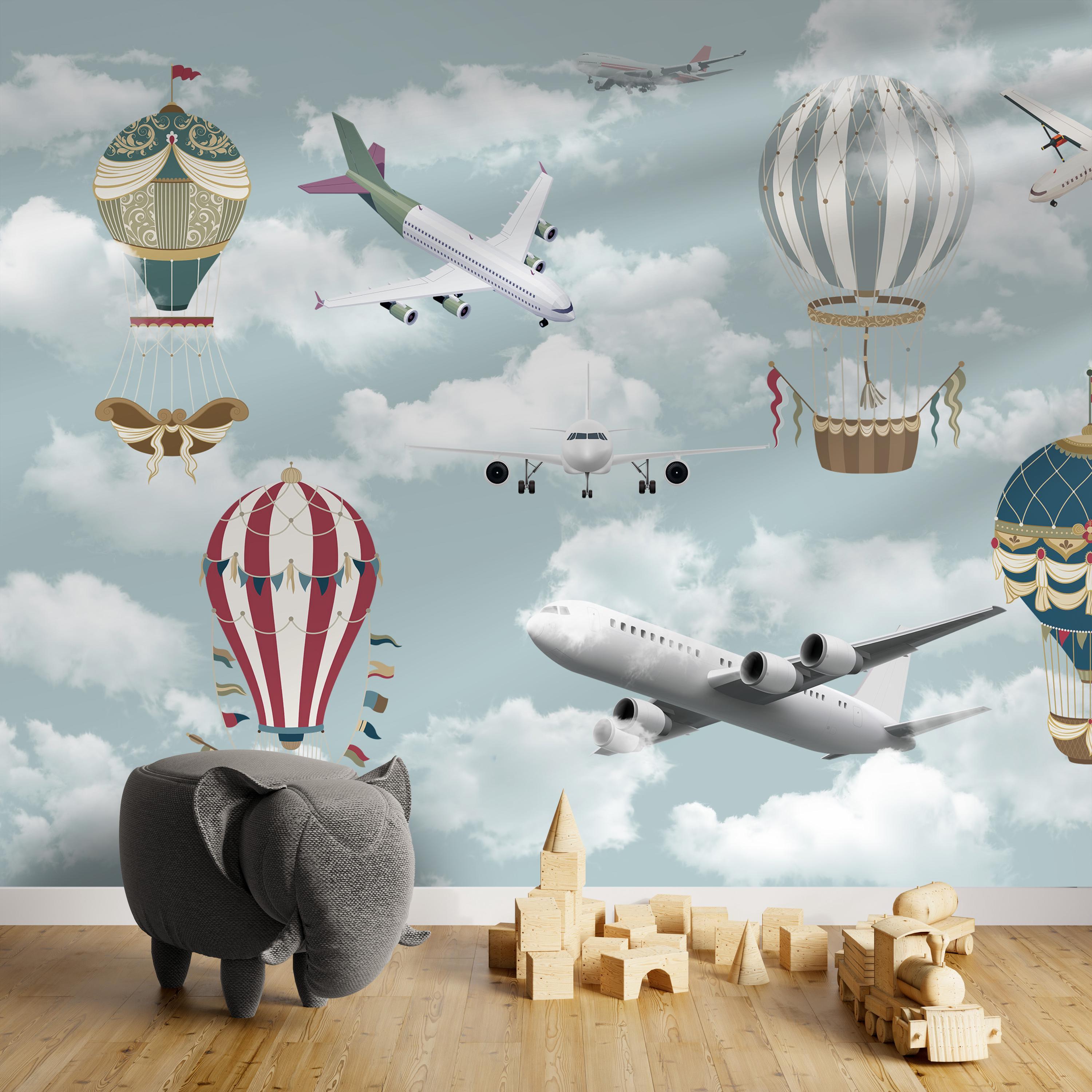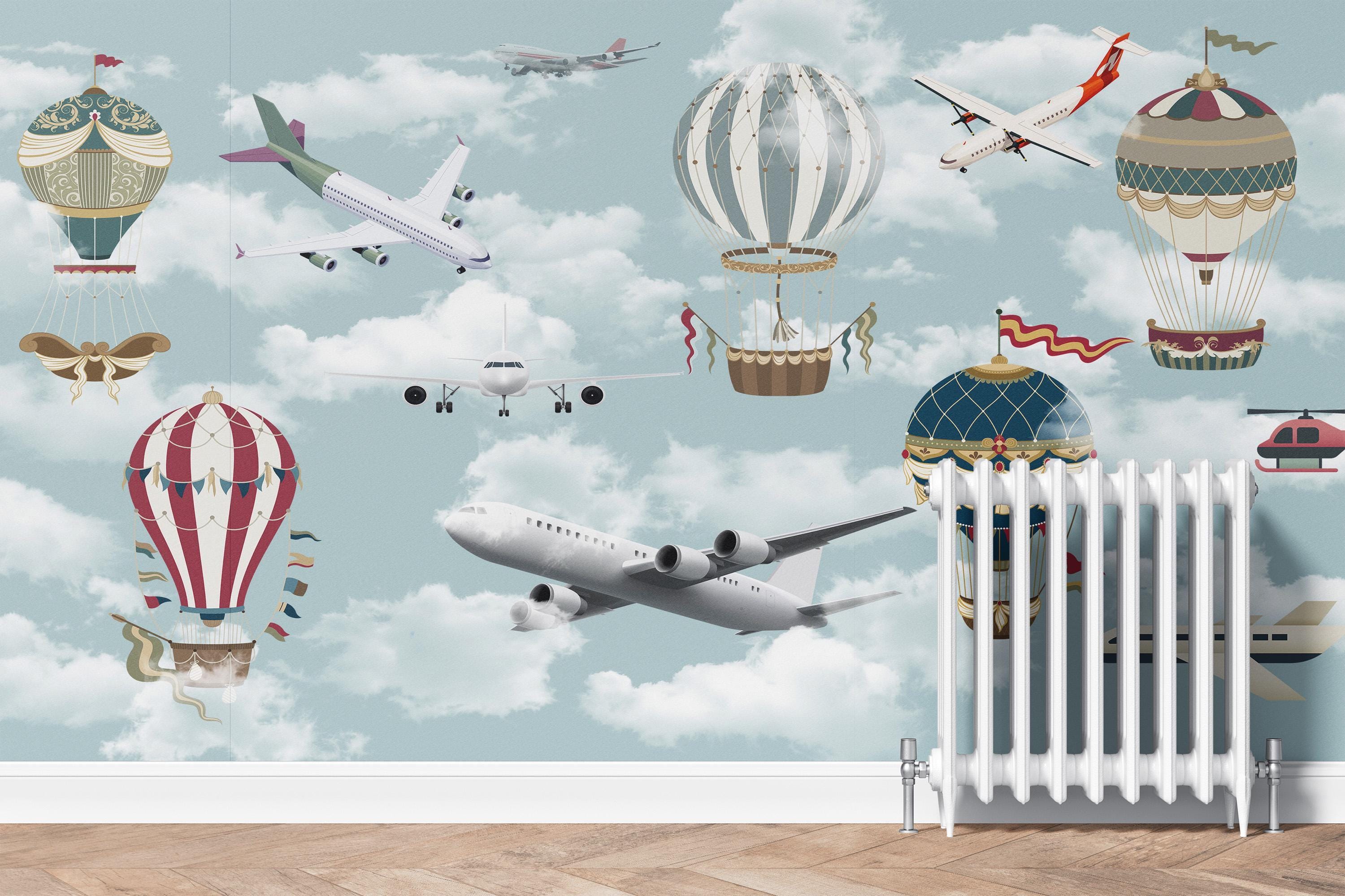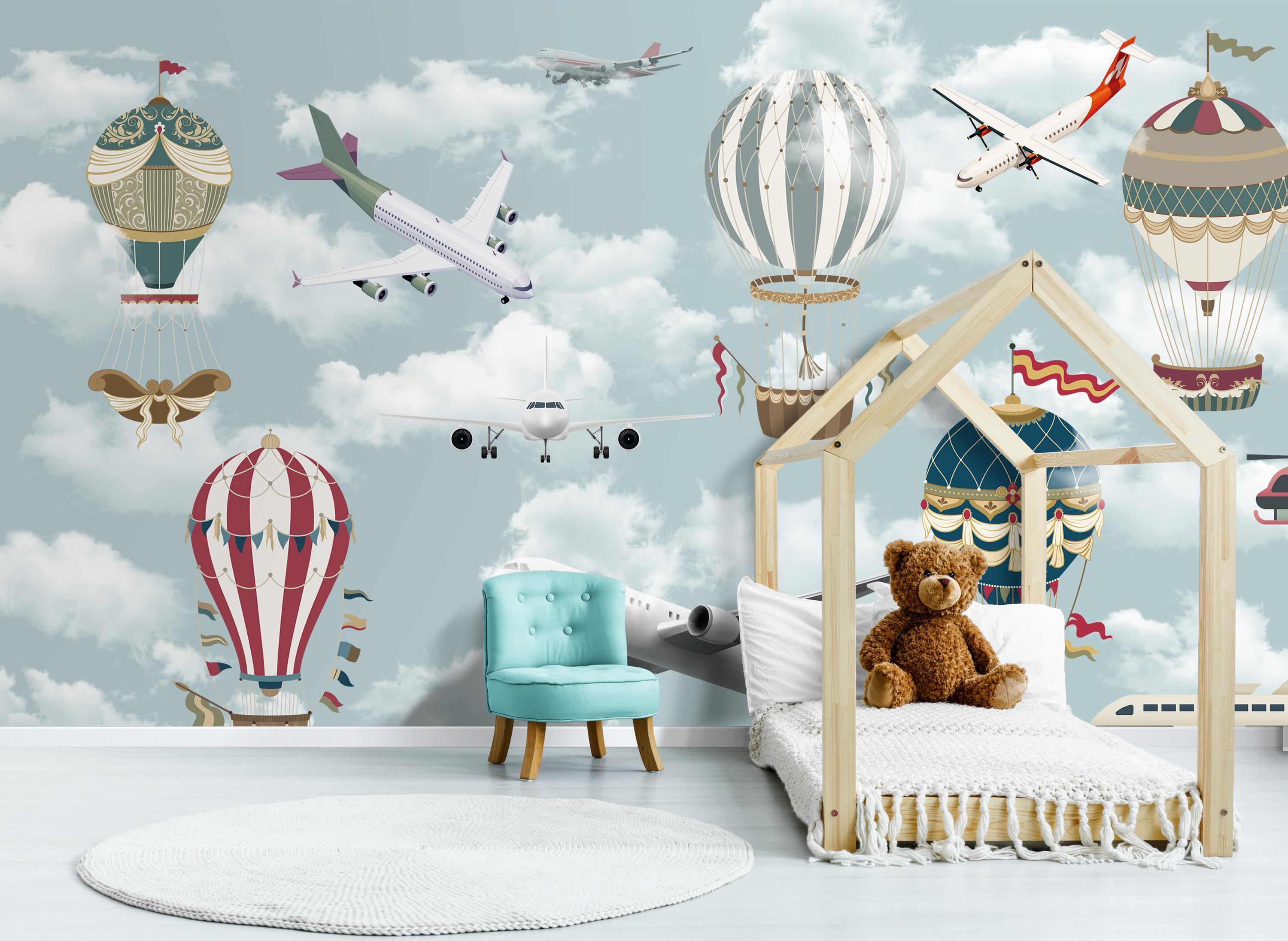 Transform your child's room with our Custom Size Blue Sky Wallpaper, featuring air balloons, planes, and fluffy white clouds. This delightful mural creates a dreamy, sky-high adventure, perfect for nurseries and kids' rooms. Available in peel-and-stick for easy application and removal, it’s a hassle-free way to bring a playful and uplifting atmosphere to any space.