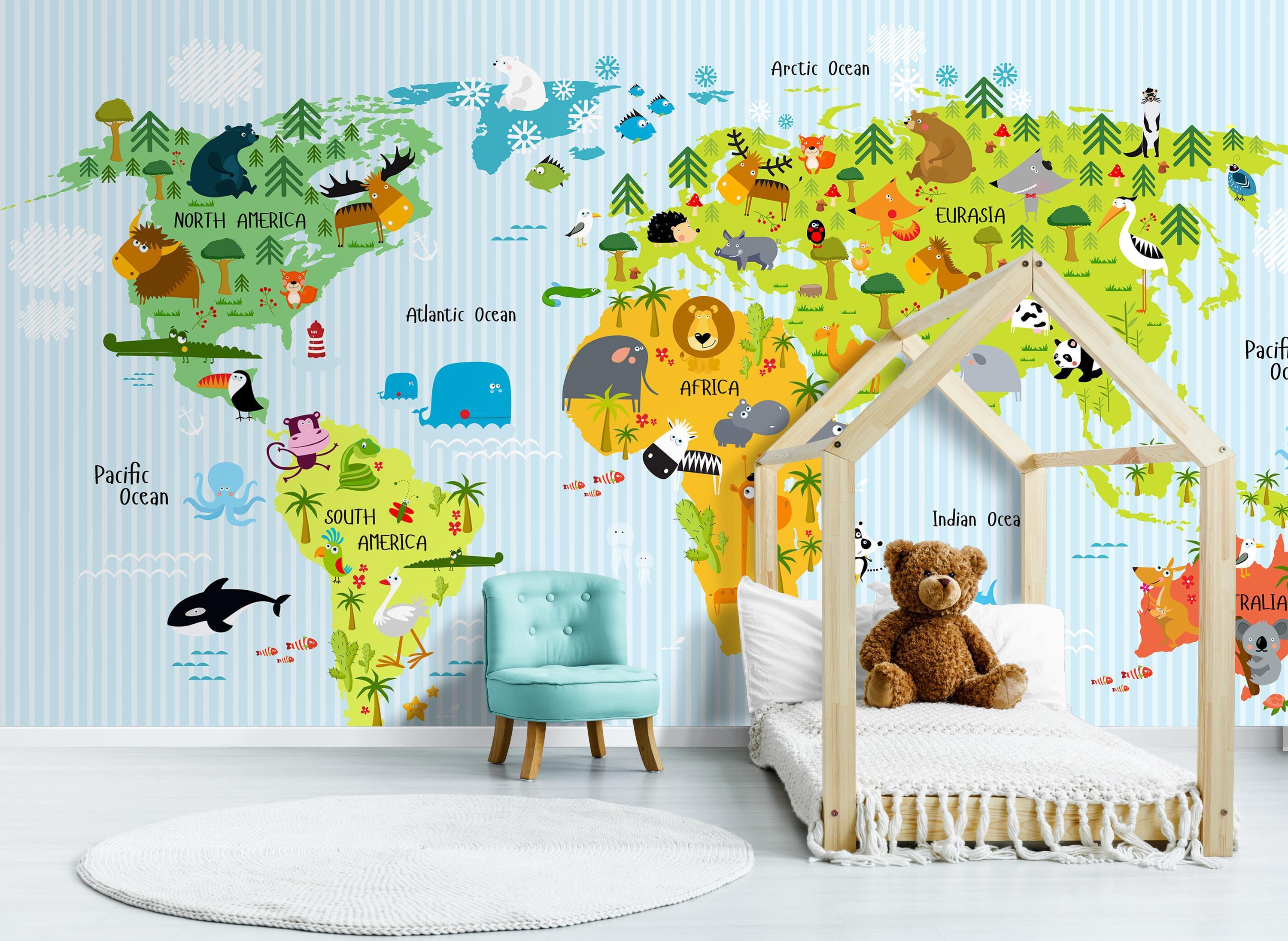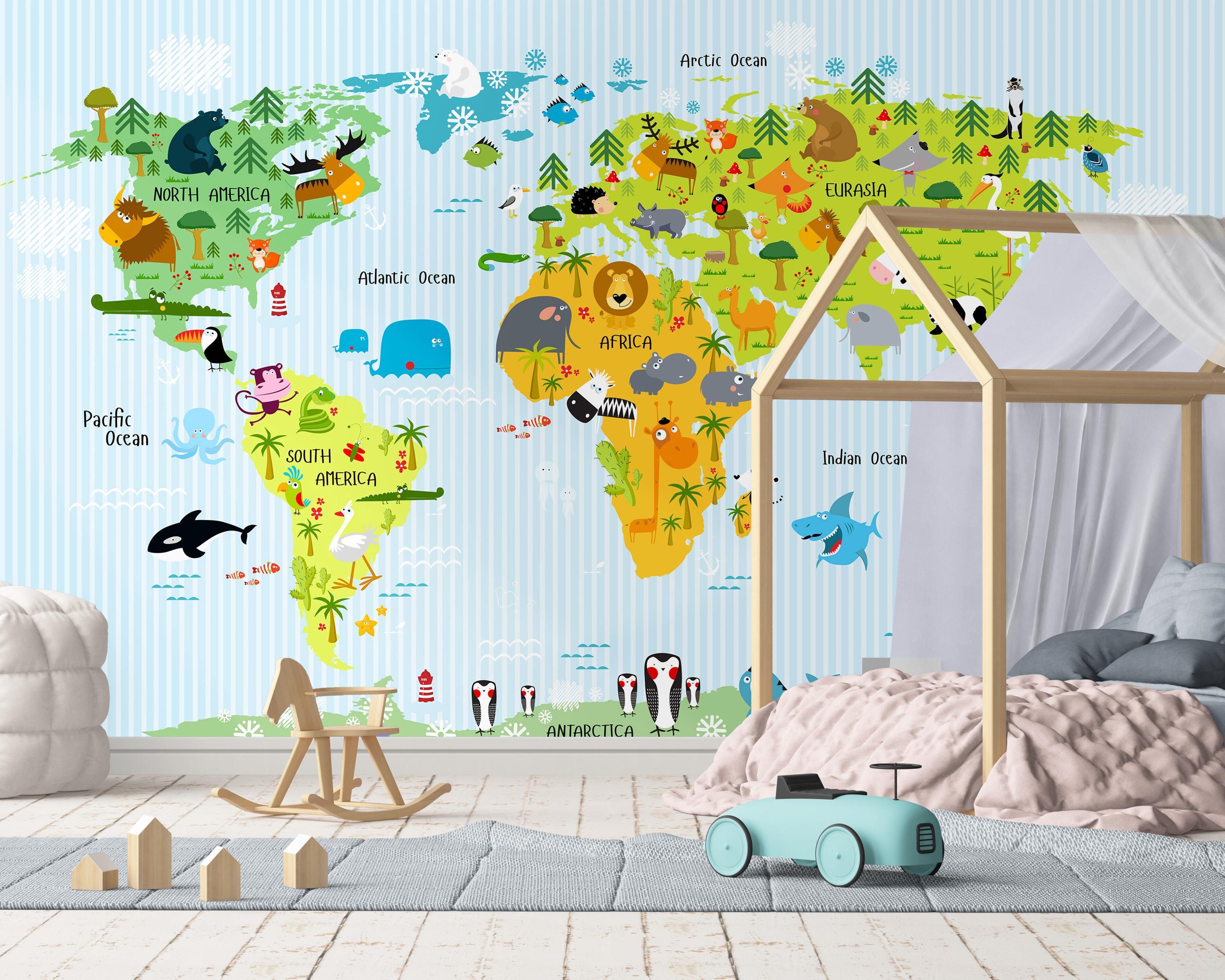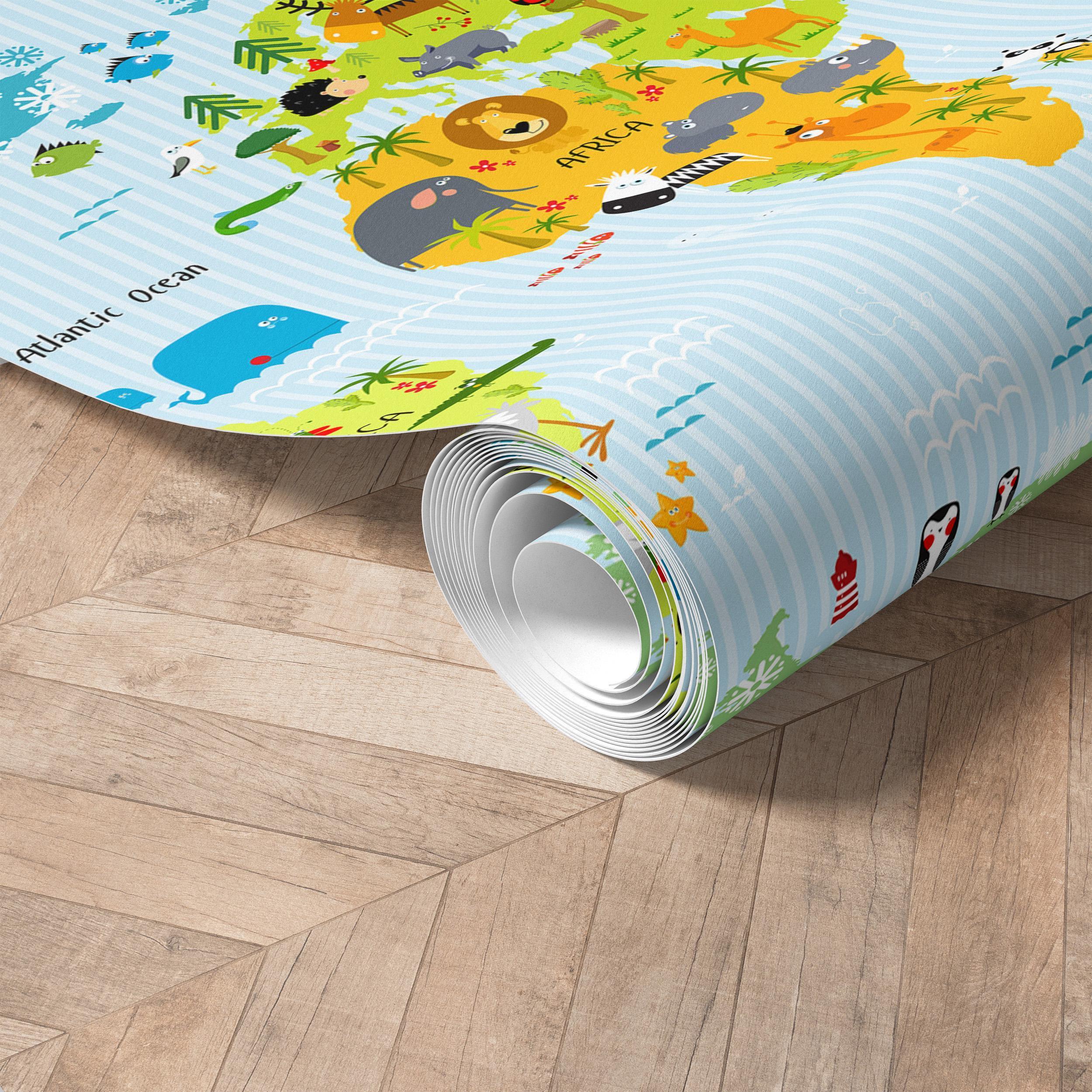 Transform your child’s room with our Baby Room Wallpaper featuring a vibrant Kids World Map Wall Mural. This peel-and-stick wallpaper is not only easy to install but also offers an educational and fun way to learn about animals from around the world. Perfect for creating a playful and engaging environment, it’s designed to spark curiosity and imagination. Ideal for nurseries or children's rooms, this mural adds color, charm, and a touch of adventure to any space while being a practical and removable wall decoration.