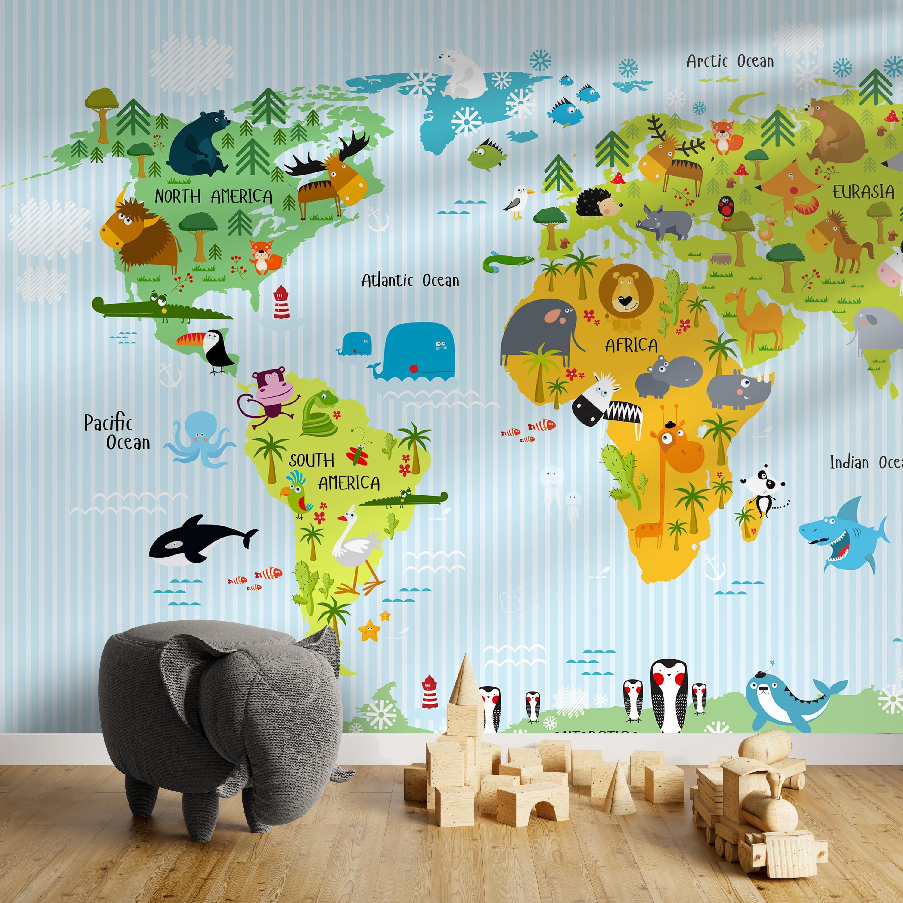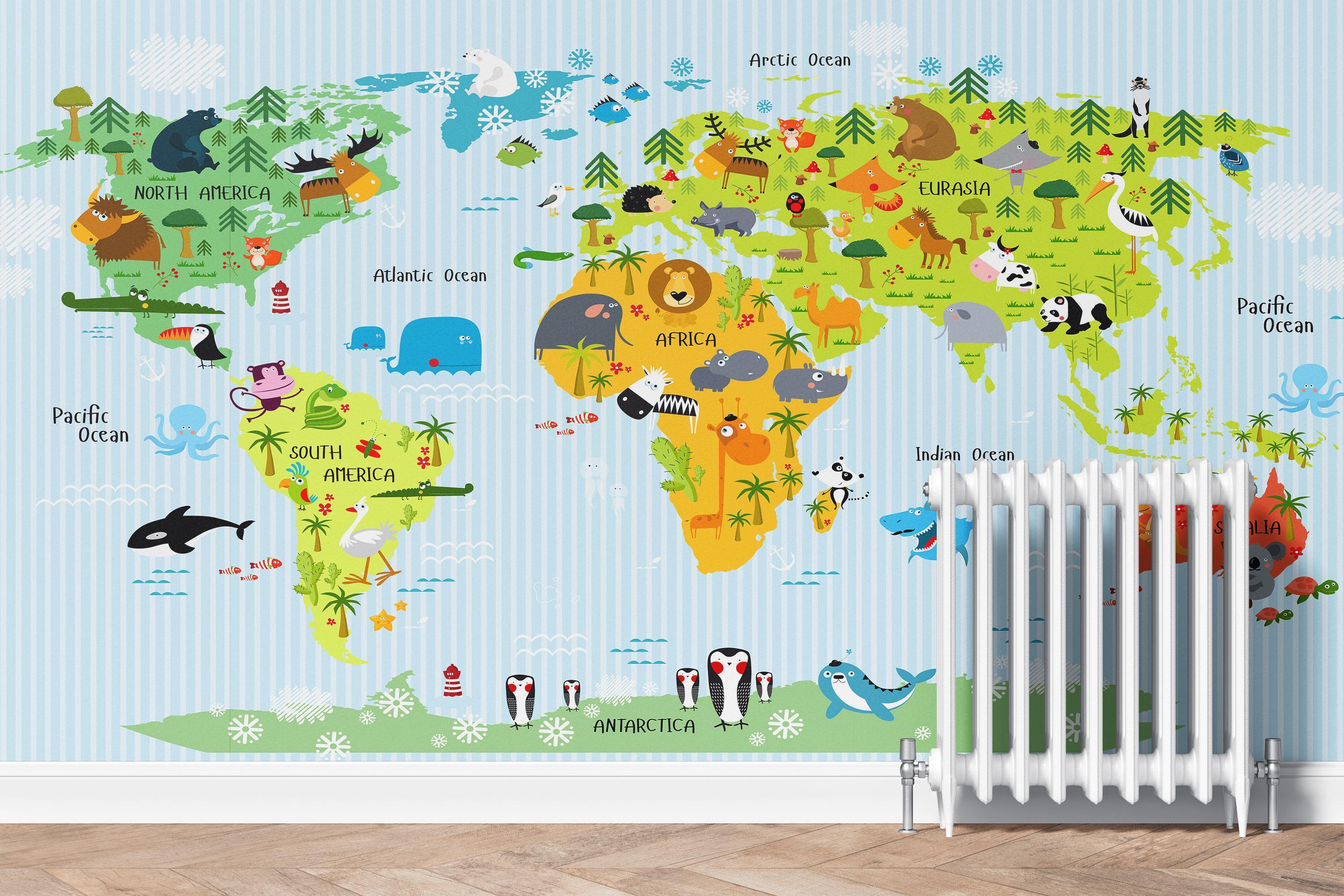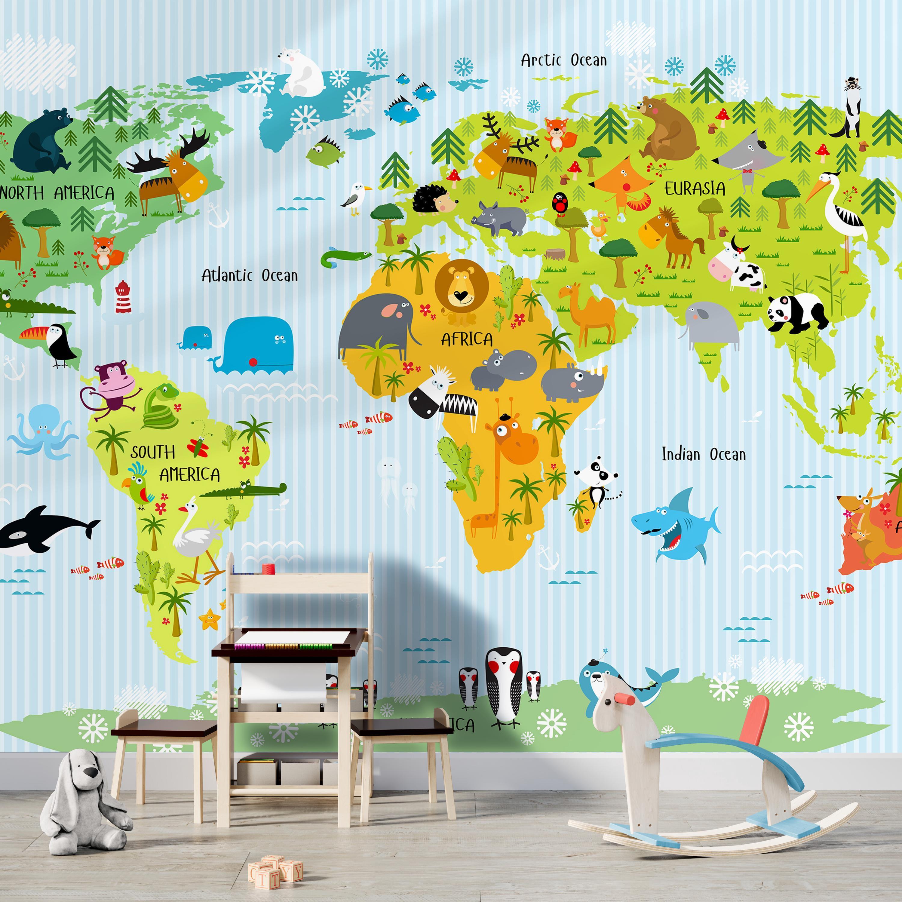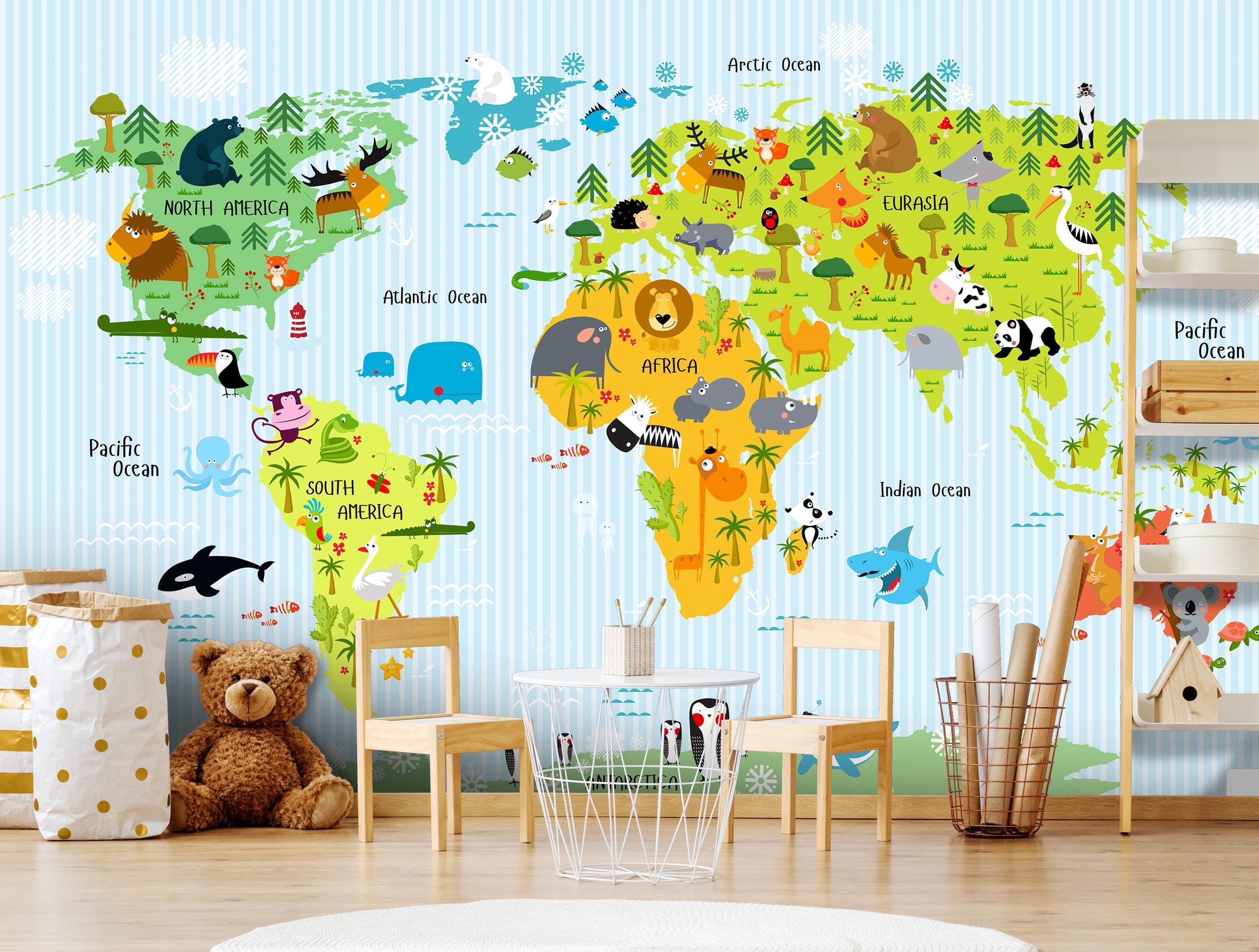 Transform your child’s room with our Baby Room Wallpaper featuring a vibrant Kids World Map Wall Mural. This peel-and-stick wallpaper is not only easy to install but also offers an educational and fun way to learn about animals from around the world. Perfect for creating a playful and engaging environment, it’s designed to spark curiosity and imagination. Ideal for nurseries or children's rooms, this mural adds color, charm, and a touch of adventure to any space while being a practical and removable wall decoration.