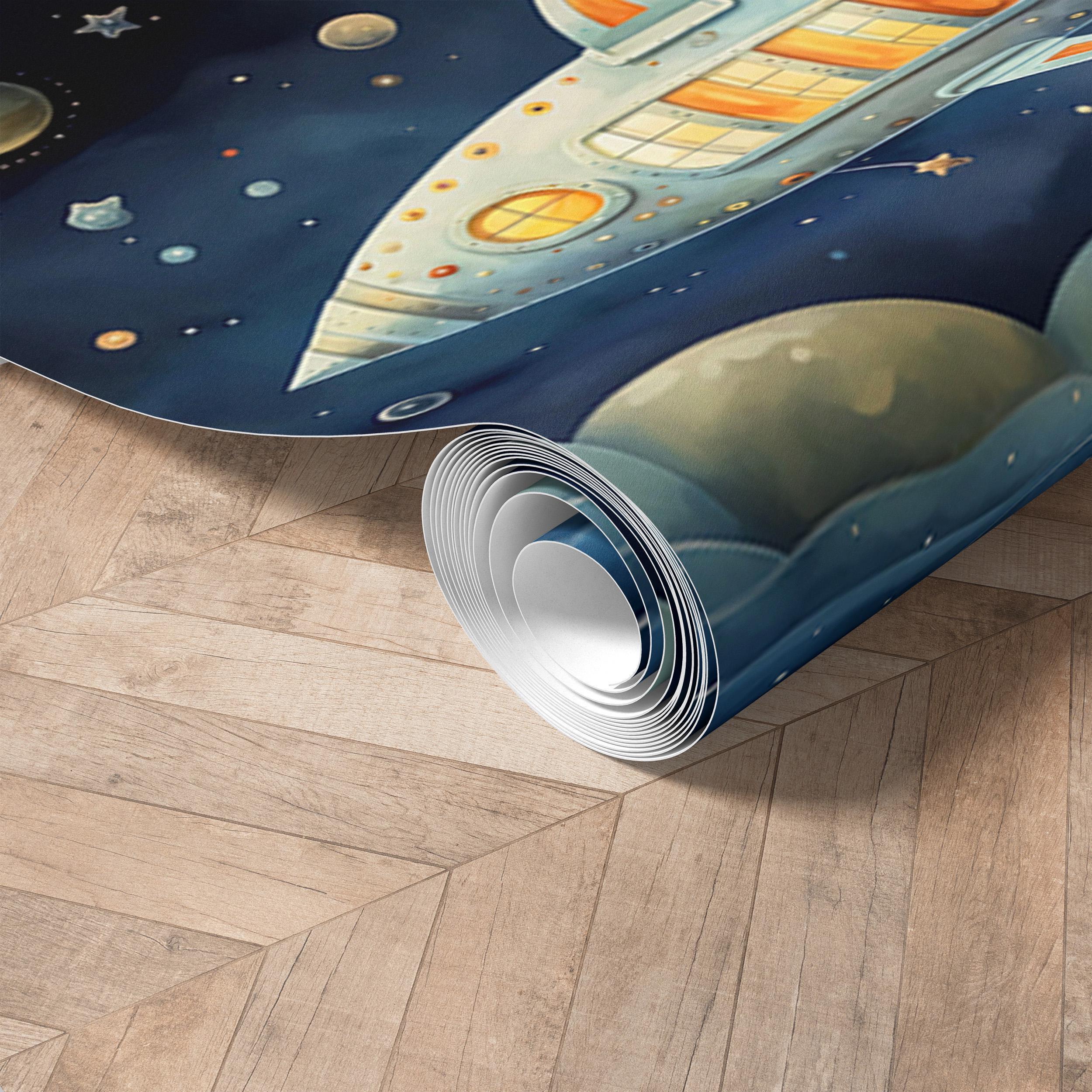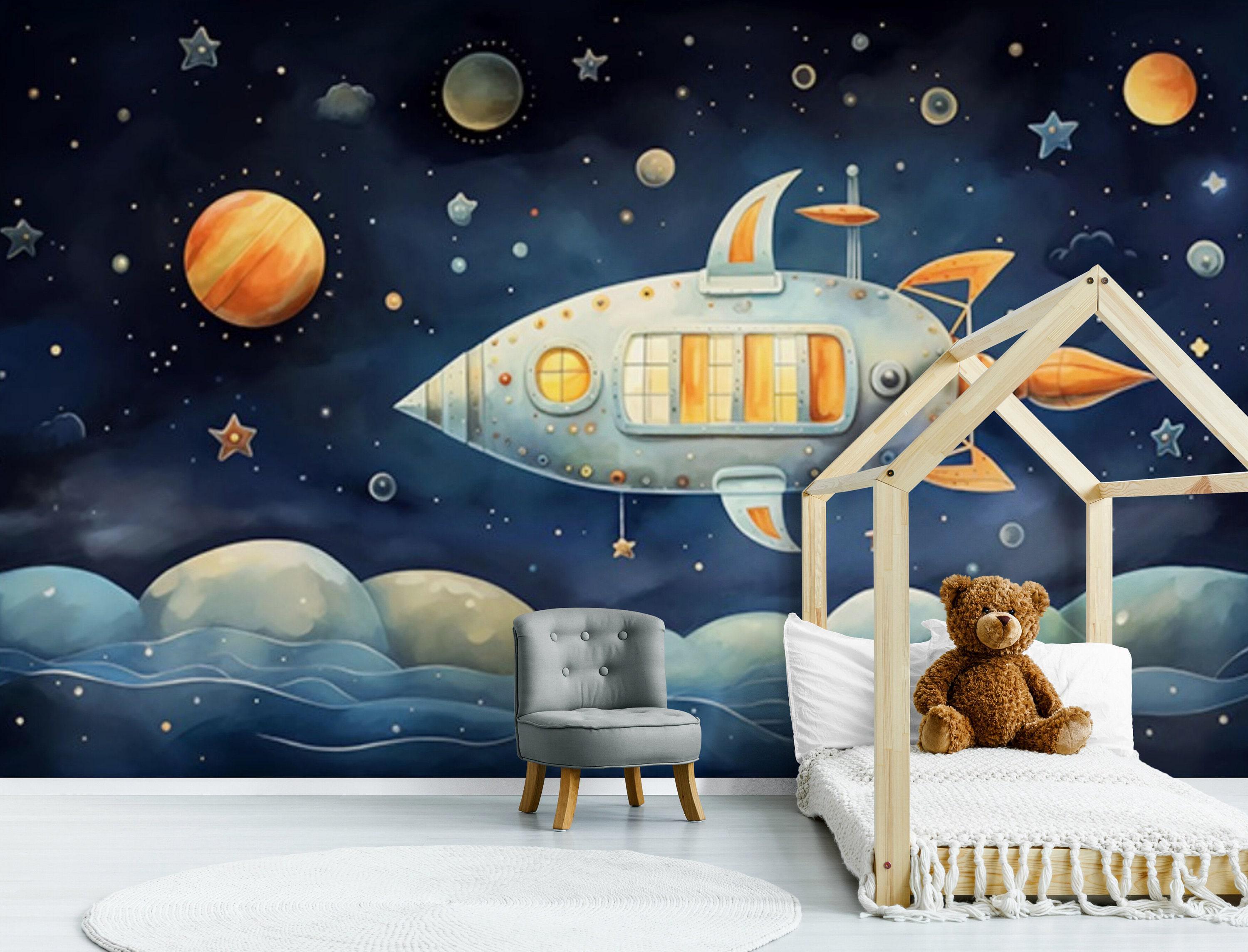 Our Child Room Wallpaper Wall Mural brings the wonders of the cosmos to life with vibrant spacecraft, planets, and stars, creating a colorful and imaginative space for your little one. Transform your baby's nursery or child's room into a fantastic galactic adventure with this captivating space-themed design.