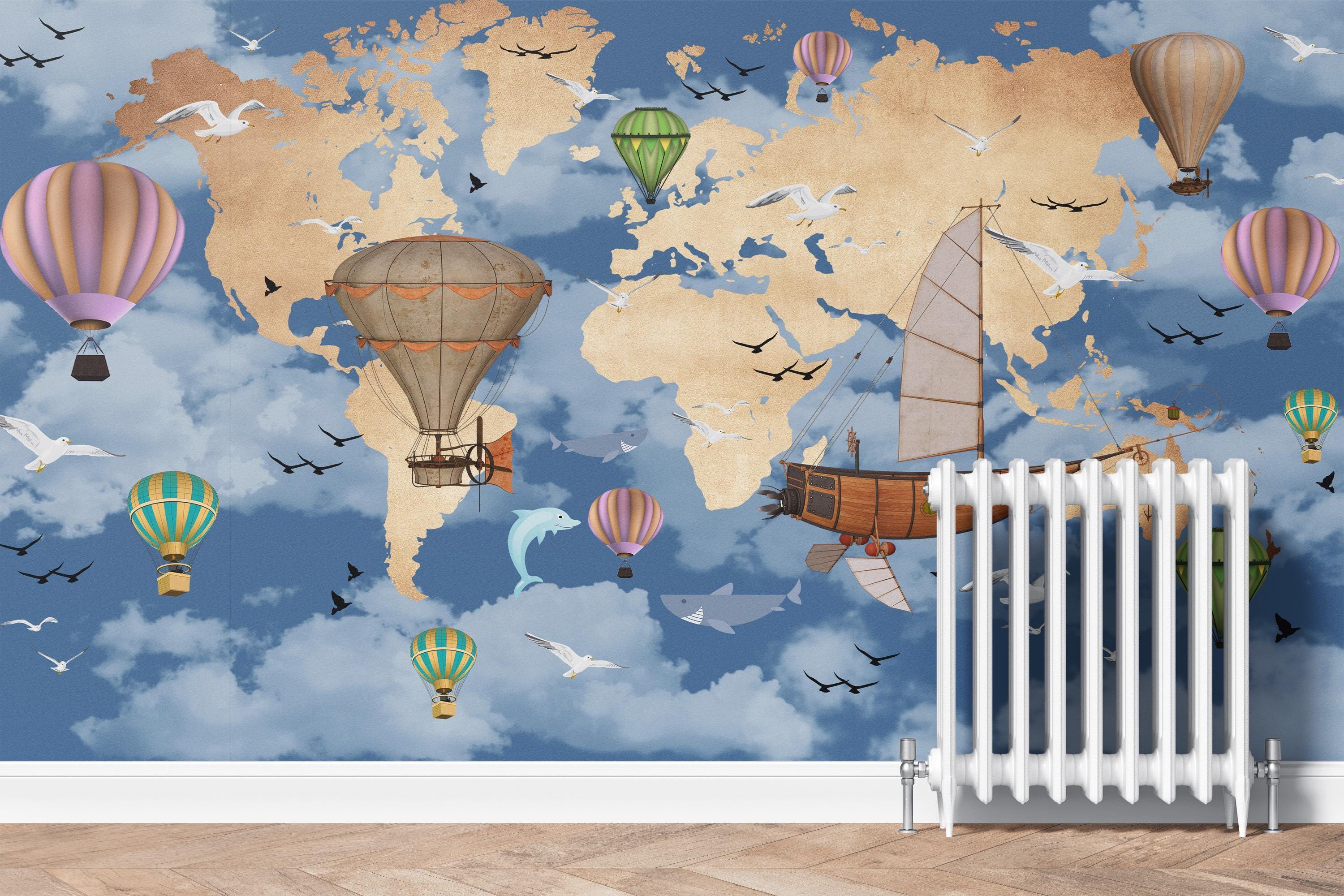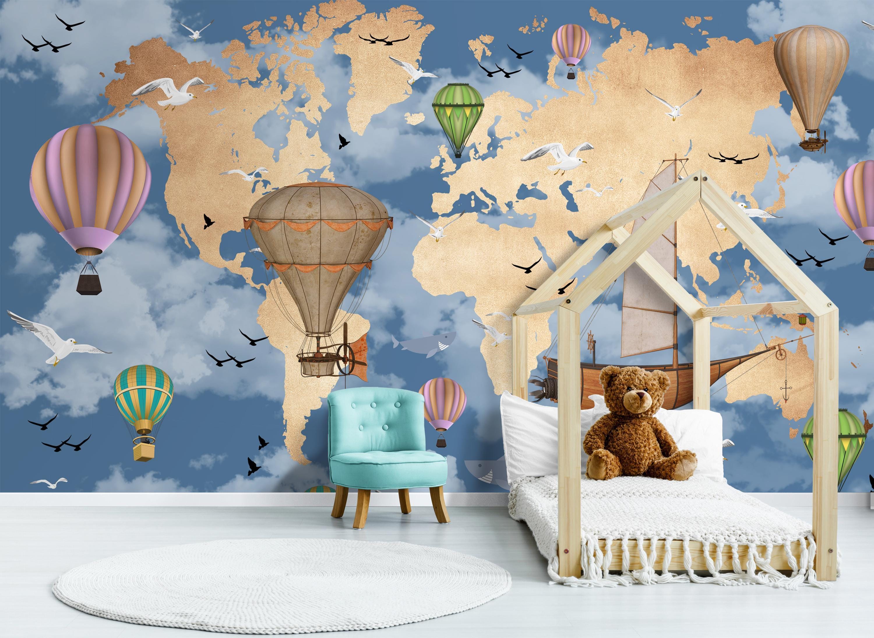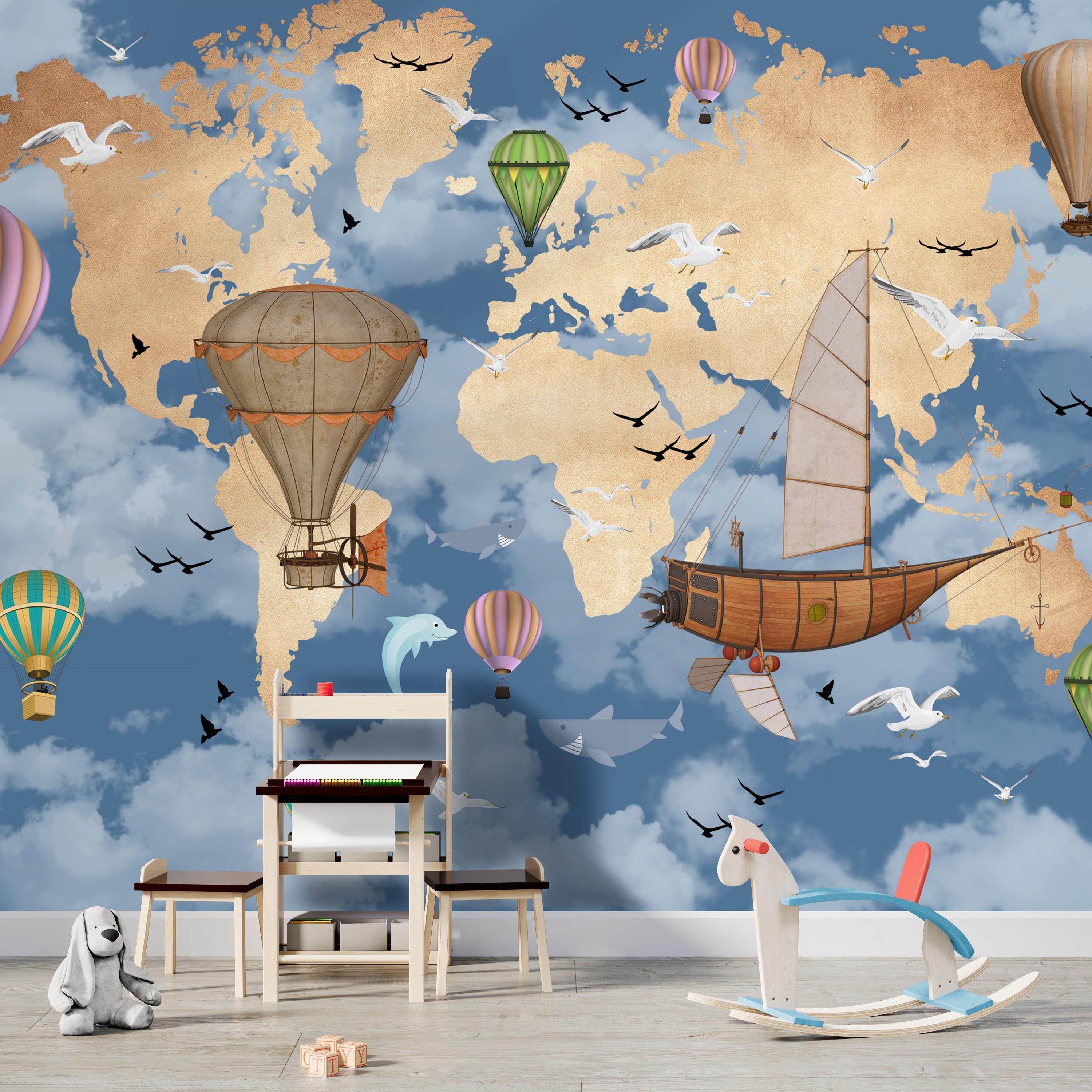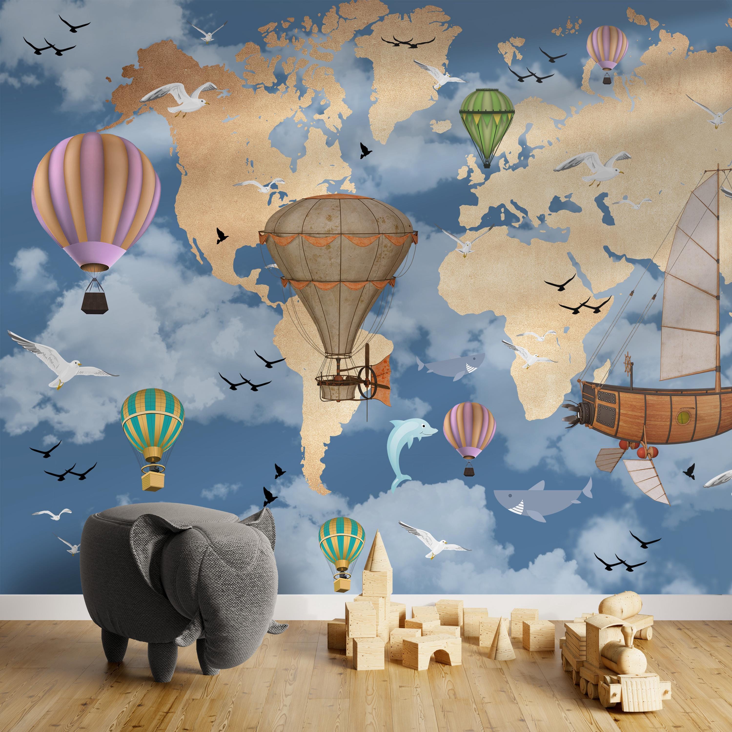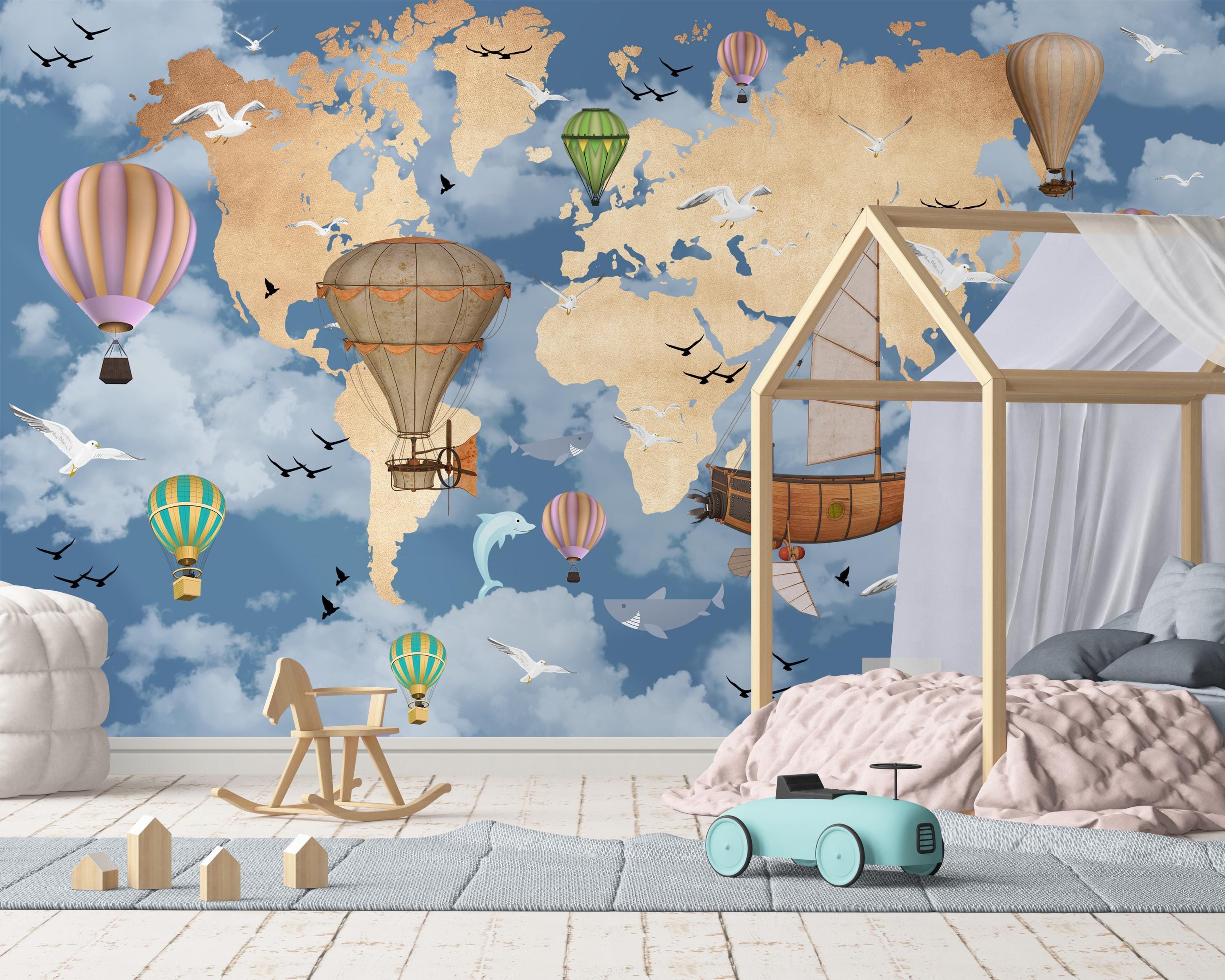 Transform your child’s room with this vibrant world map wallpaper, designed to spark curiosity and creativity. The colorful nursery wall mural features a detailed map, perfect for young explorers. Not only does it add a playful and educational touch to the room, but it also encourages learning about different countries, cultures, and continents. Ideal for a child’s bedroom or playroom, this world map mural enhances the space with a fun, adventurous vibe while serving as an engaging and decorative element. A wonderful way to make your little one’s room both exciting and educational!