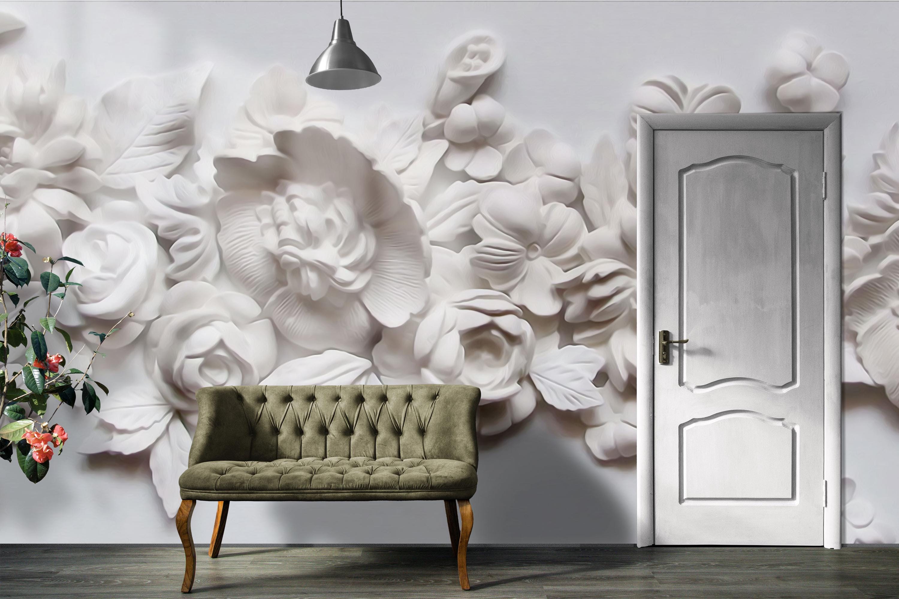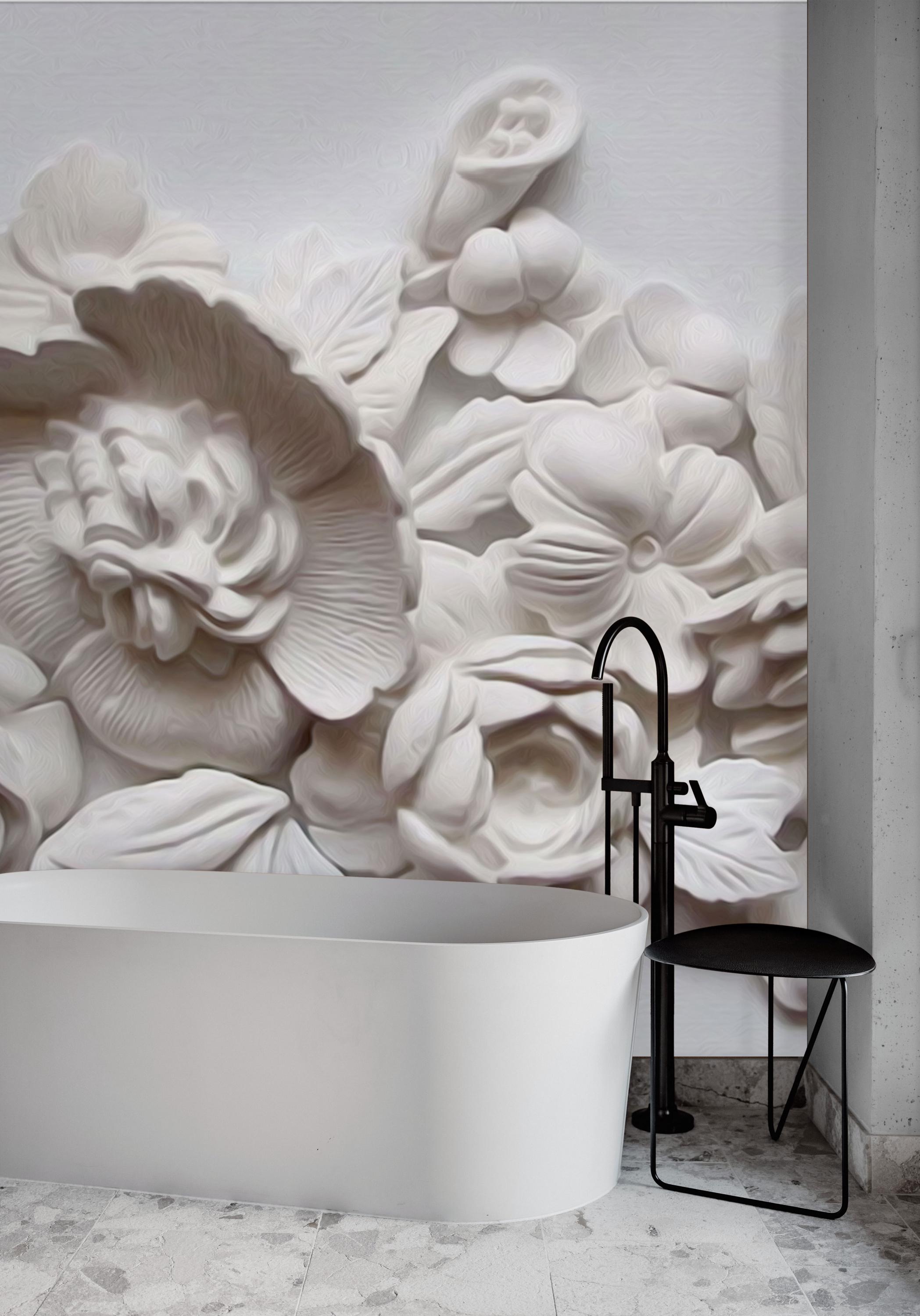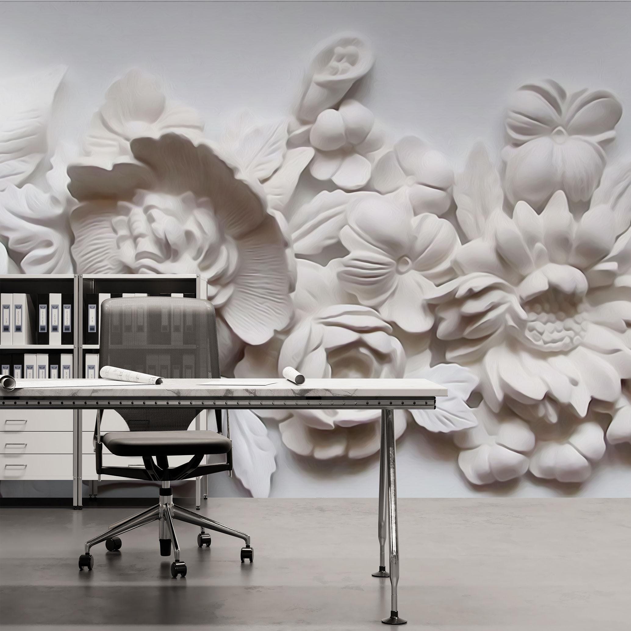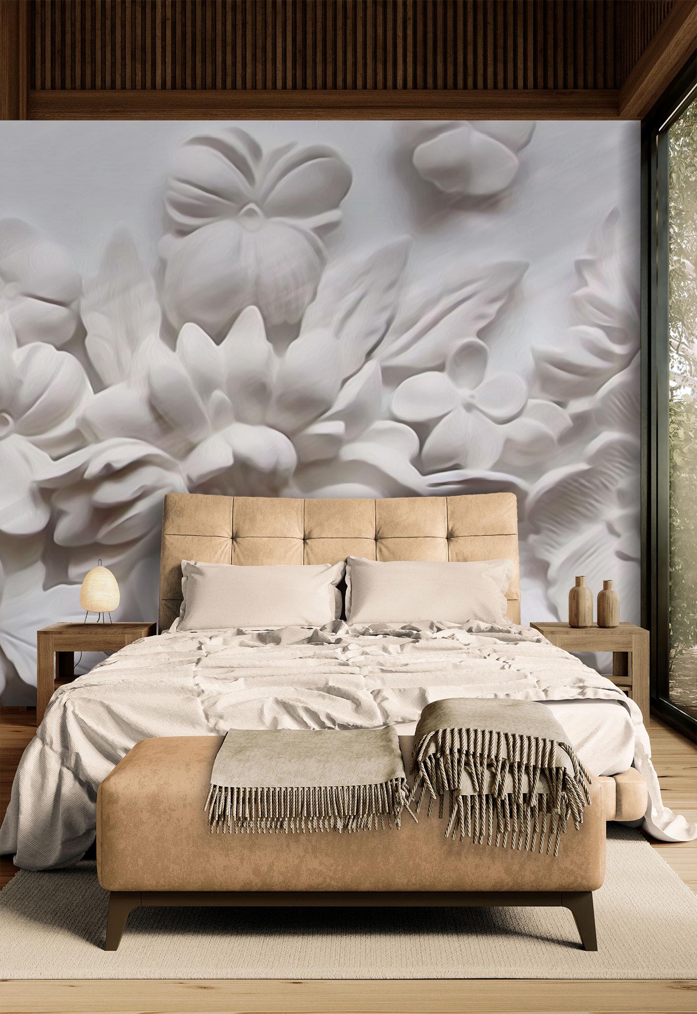 3D White Floral Wall Mural, Elegant Textured Flower Wallpaper, Modern Botanical Wall Art for Bedroom, Office, Bathroom or Living Room