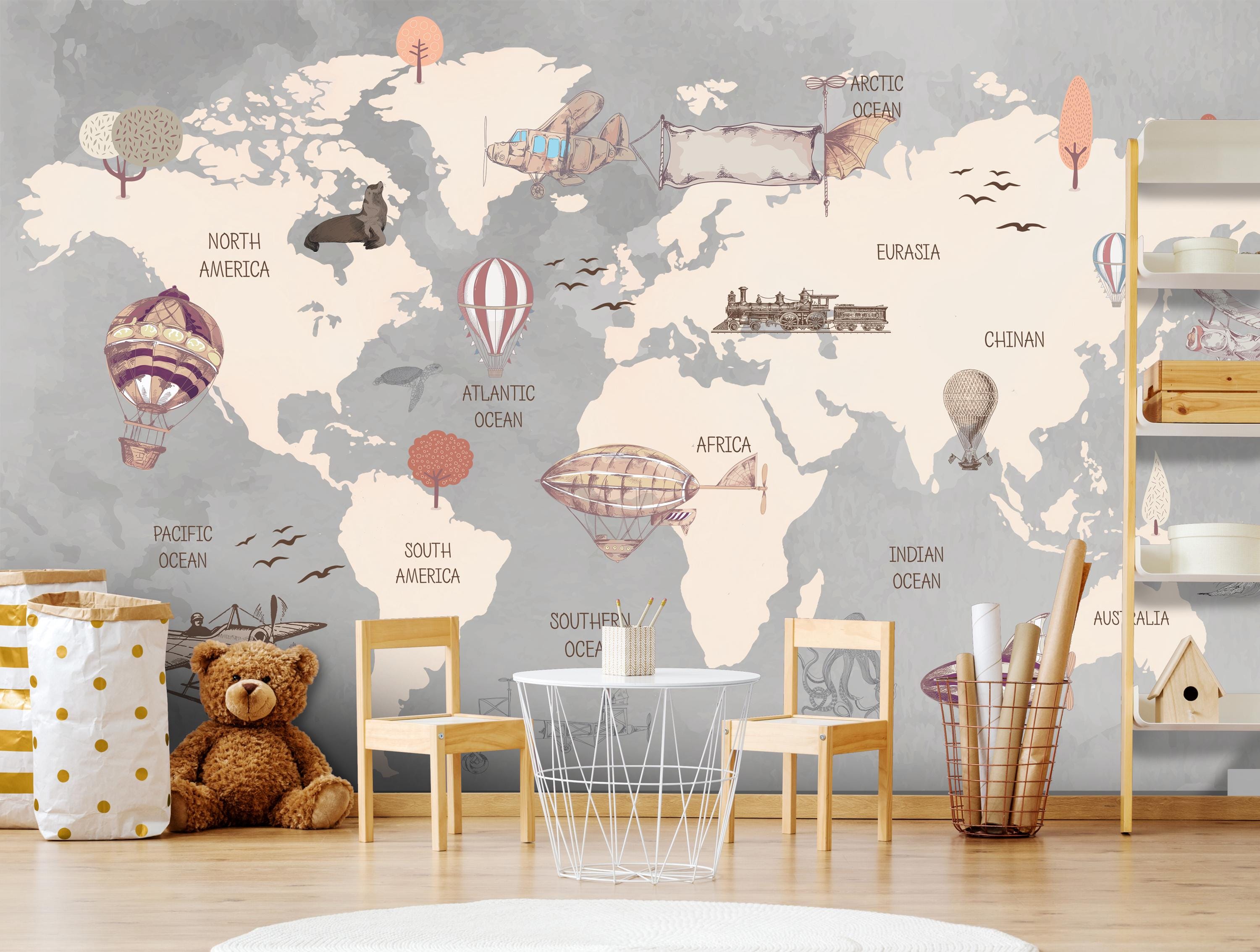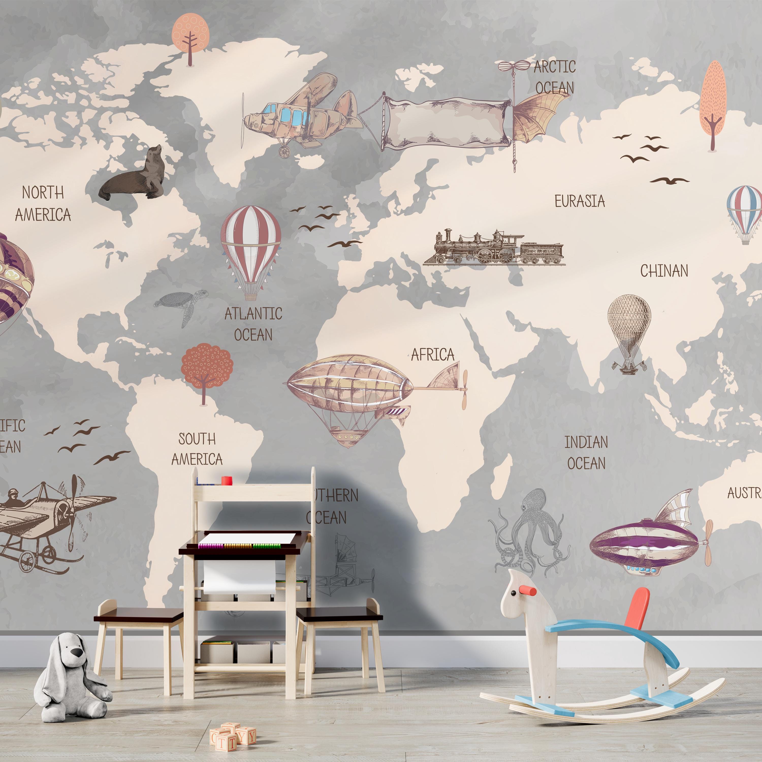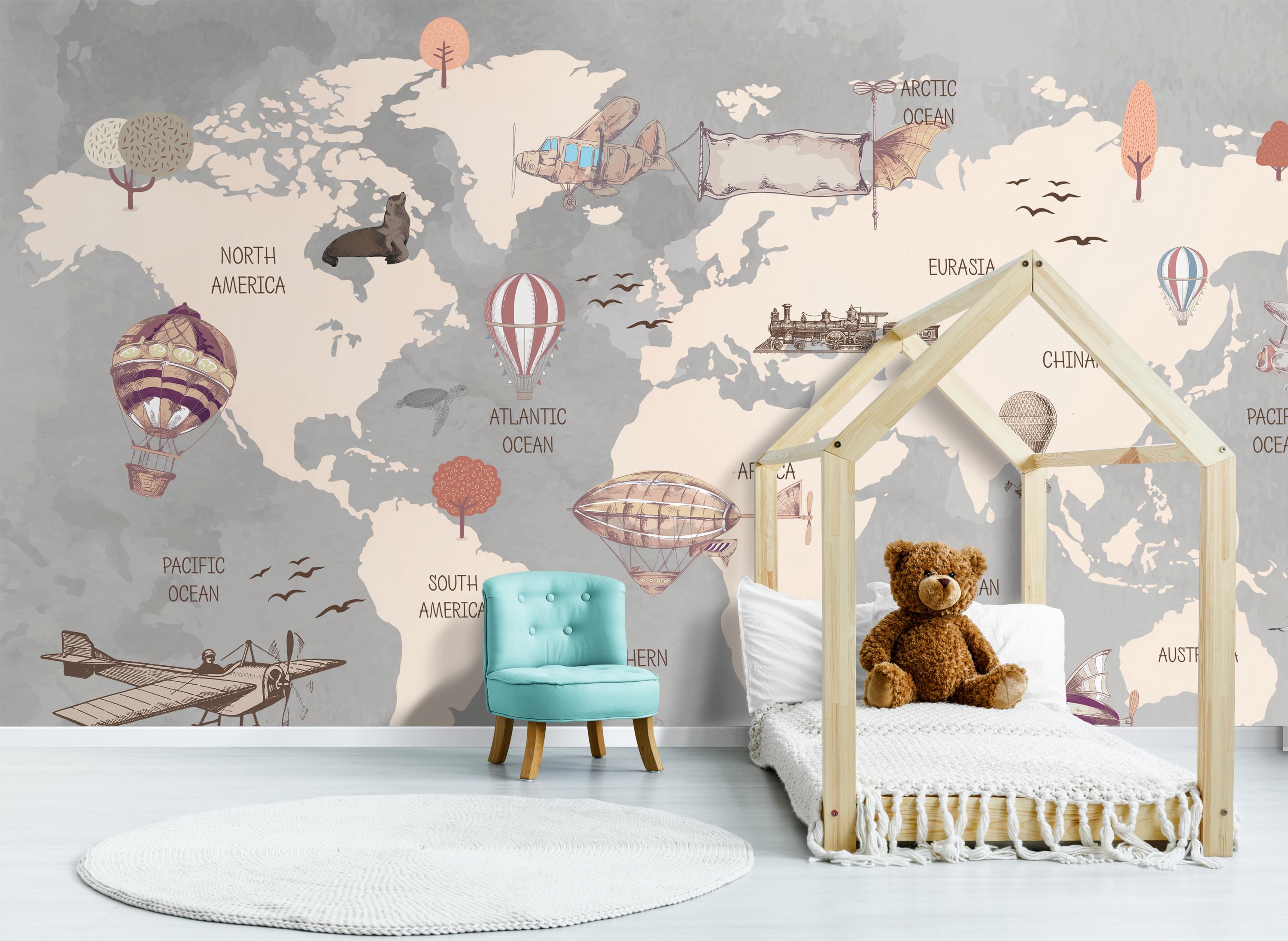 Let our Child Room Wallpaper inspire your child's curiosity and creativity as they embark on imaginary journeys across the globe. From playtime to bedtime, our mural fosters a sense of wonder and joy in their room.