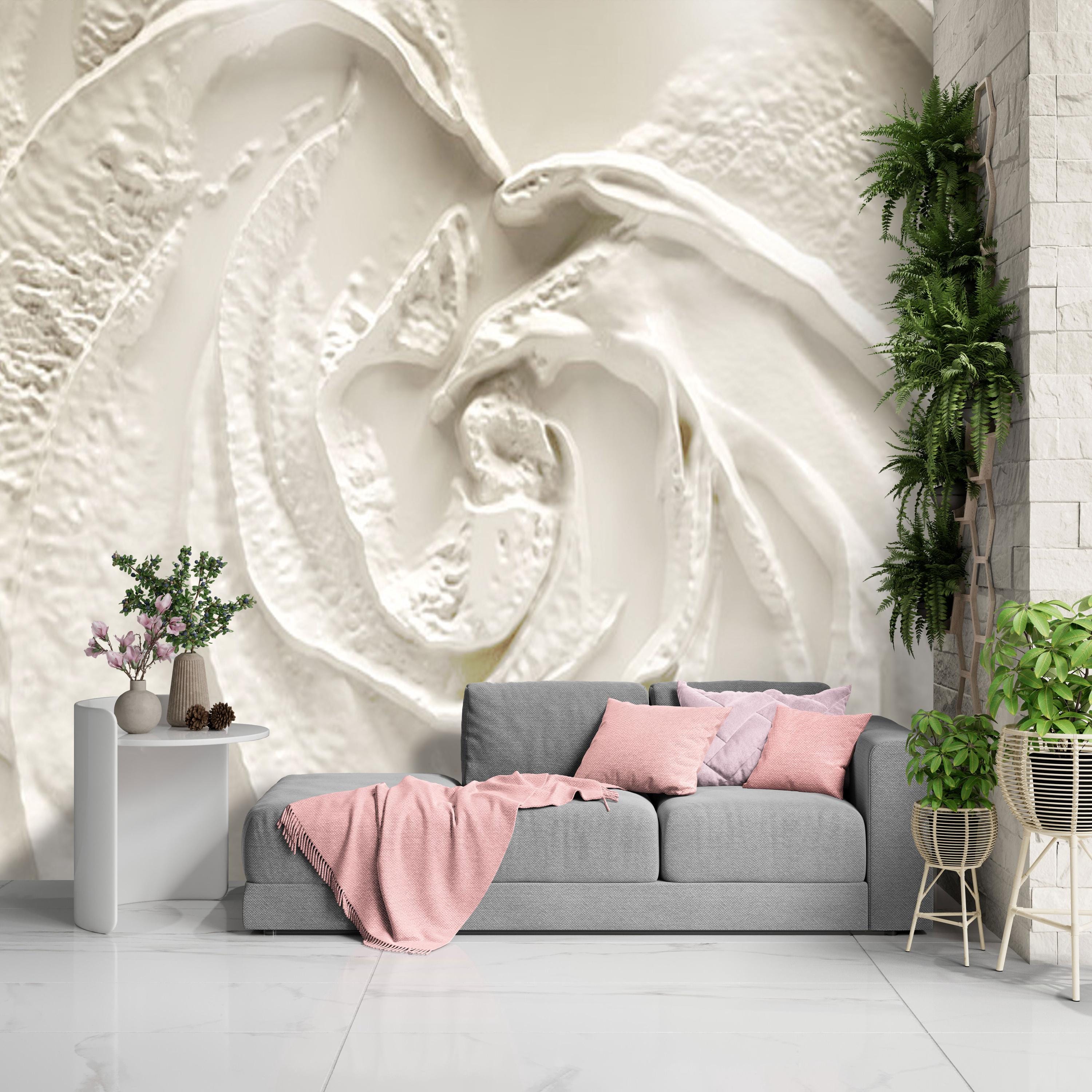 3D White Rose Marble Wall Mural – Sculpted Floral Texture Wallpaper for Modern Interiors, Bedroom Accent Wall, or Luxe Home Decor