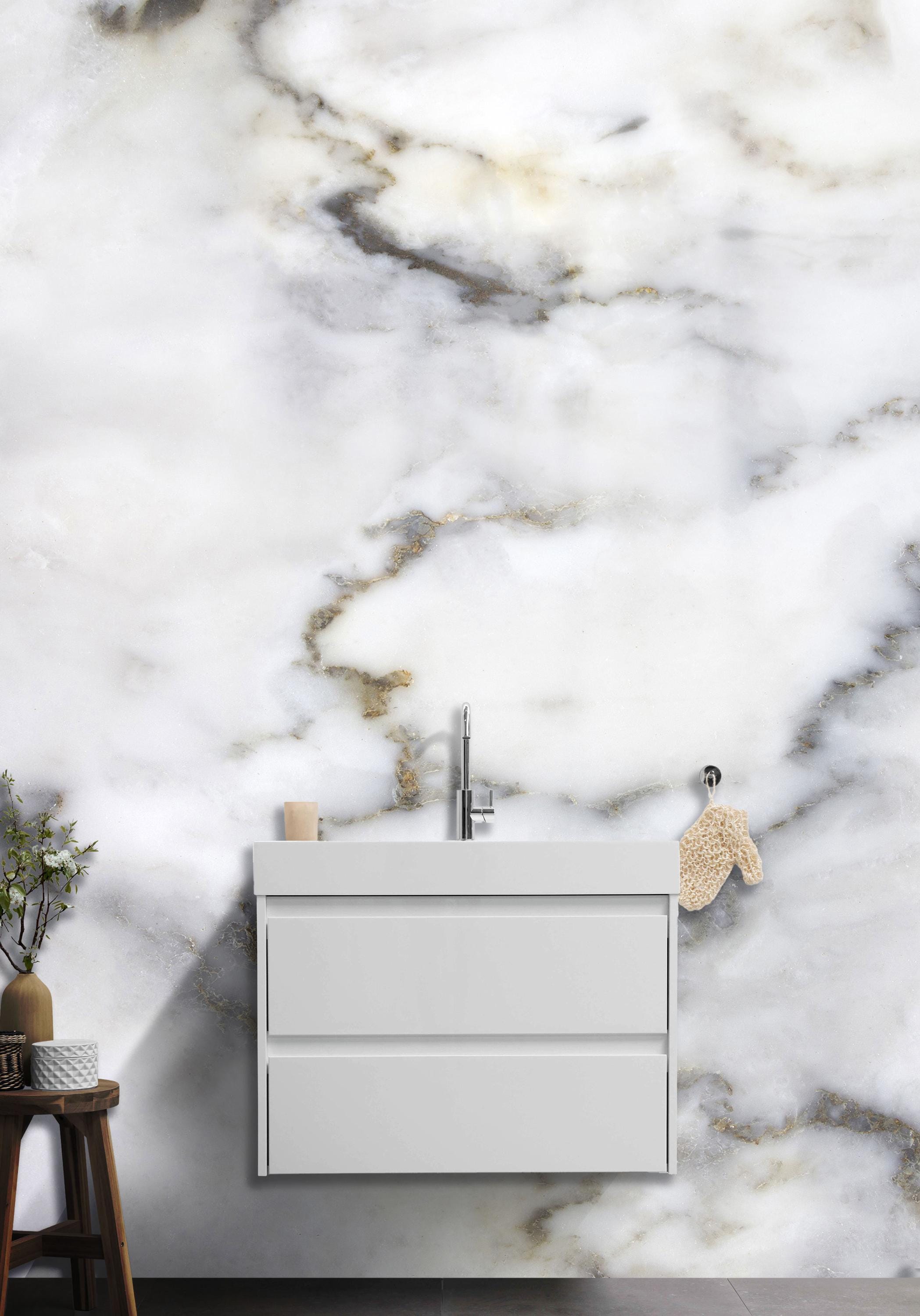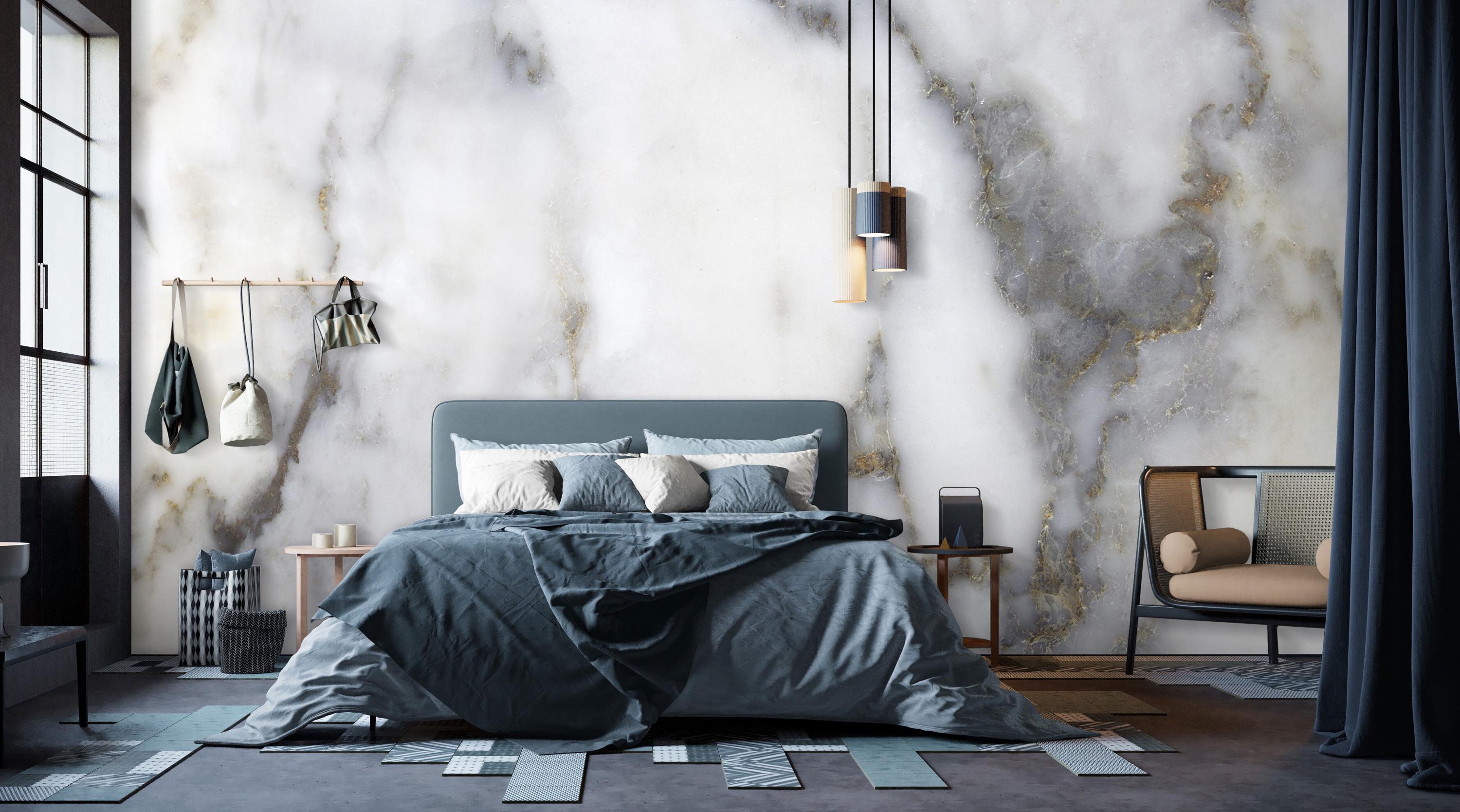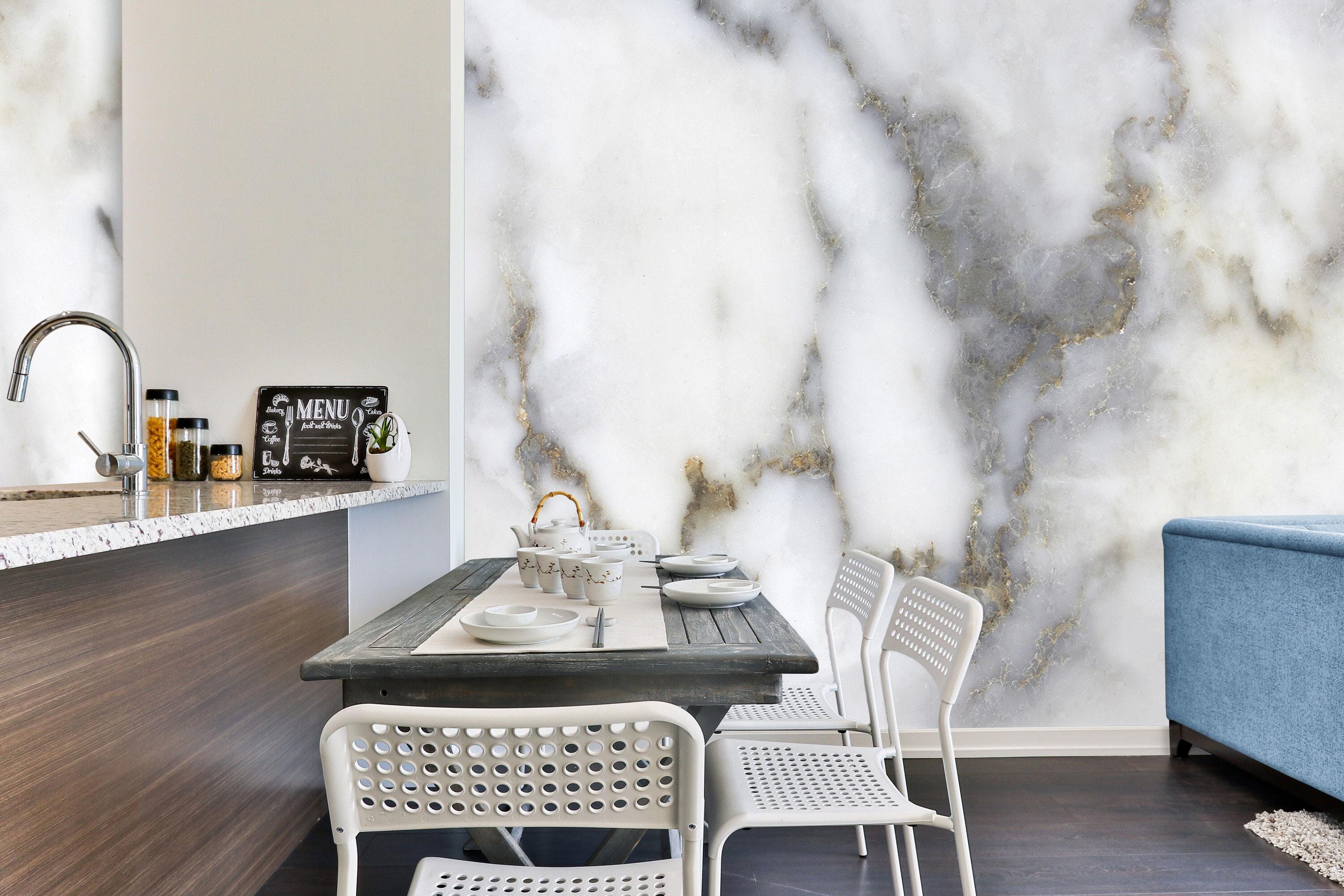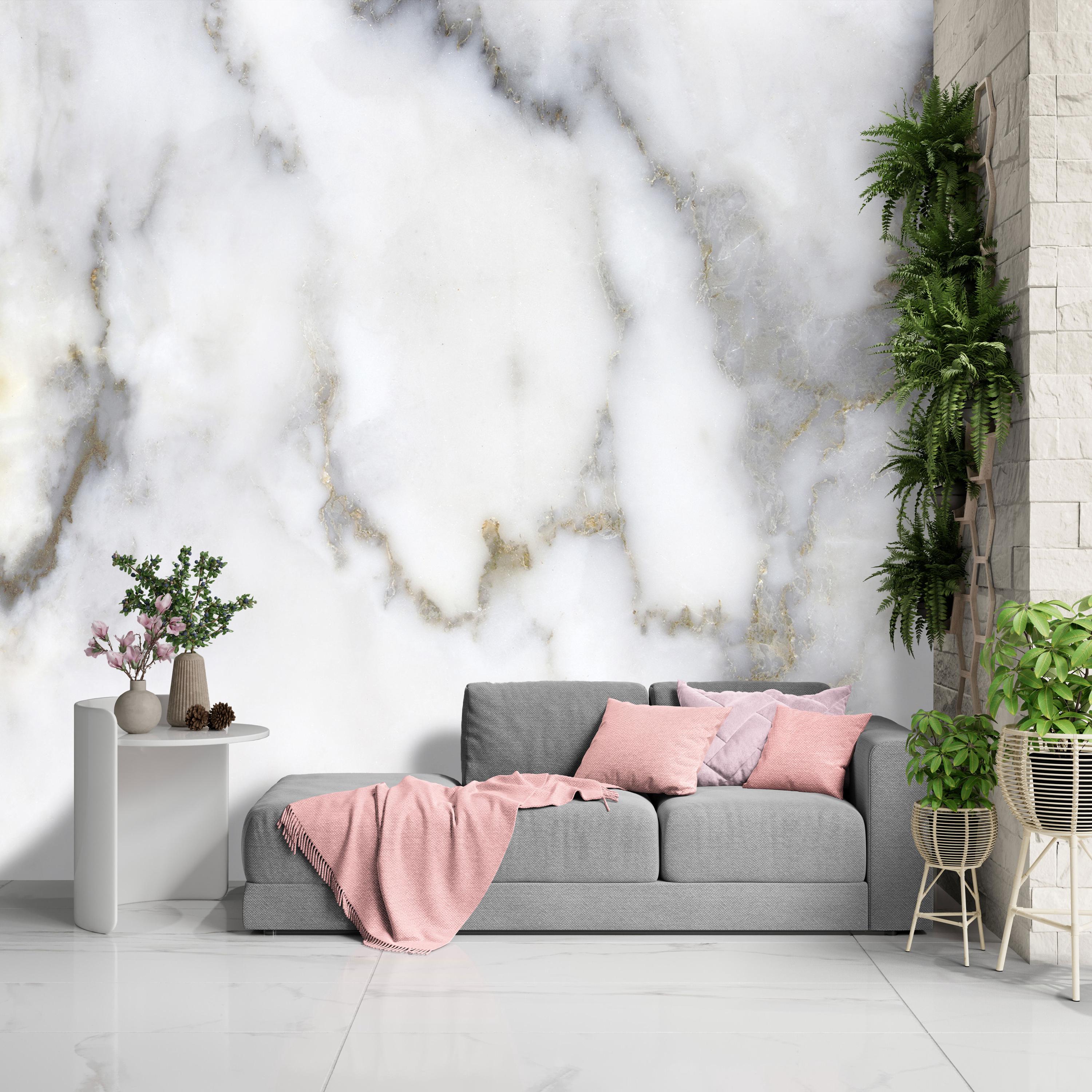 White Marble Wall Mural with Subtle Gold Veins – Elegant Modern Stone Effect Wallpaper for Living Room or Interior Accent Walls