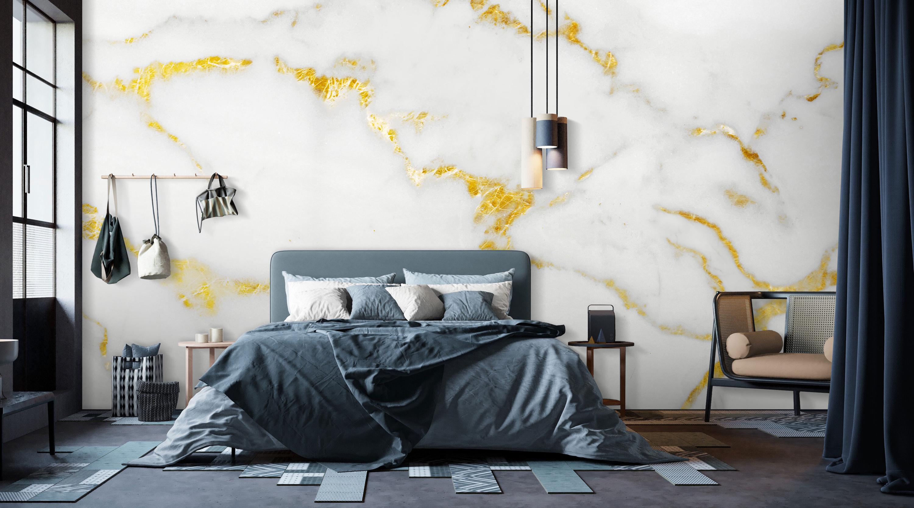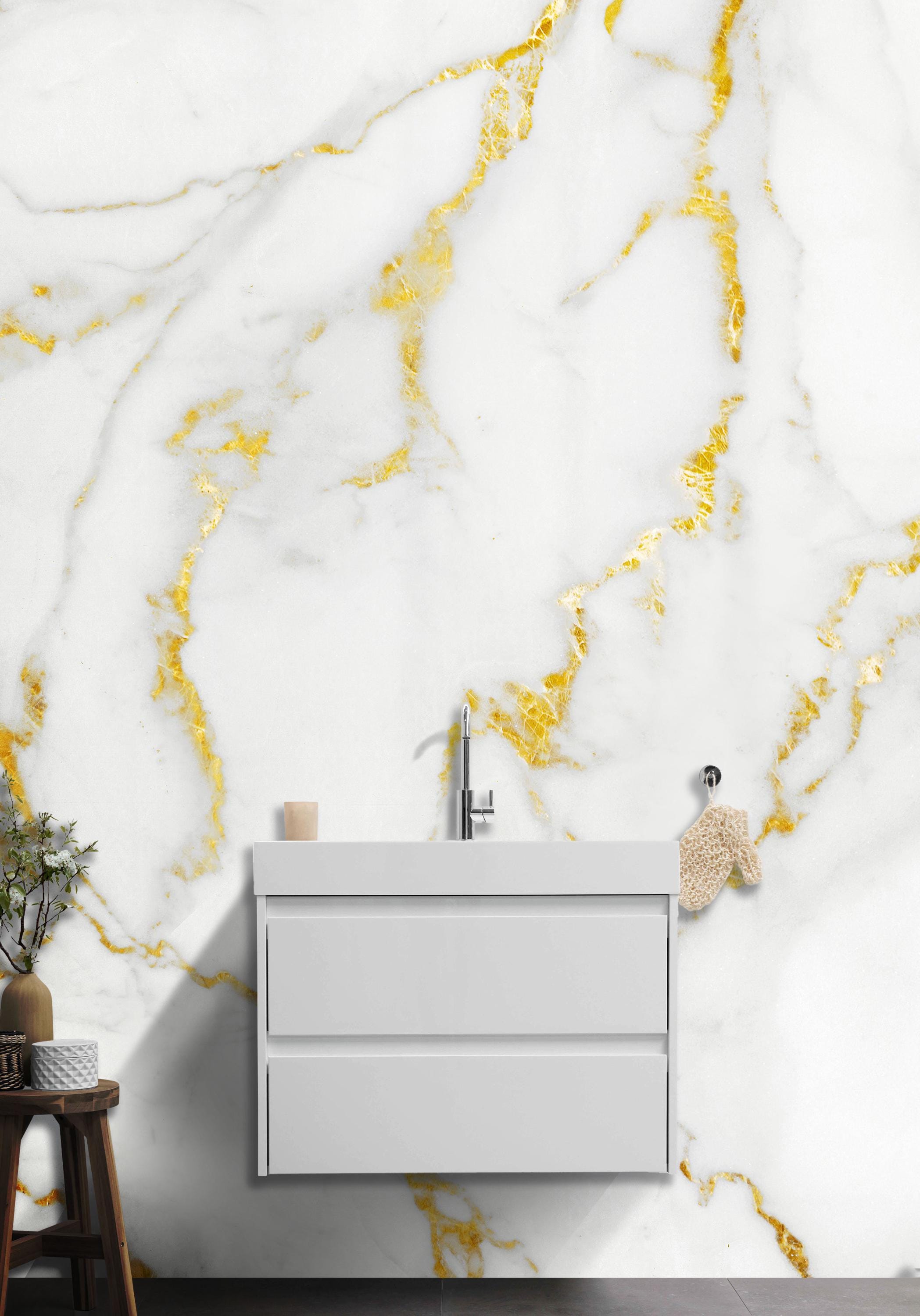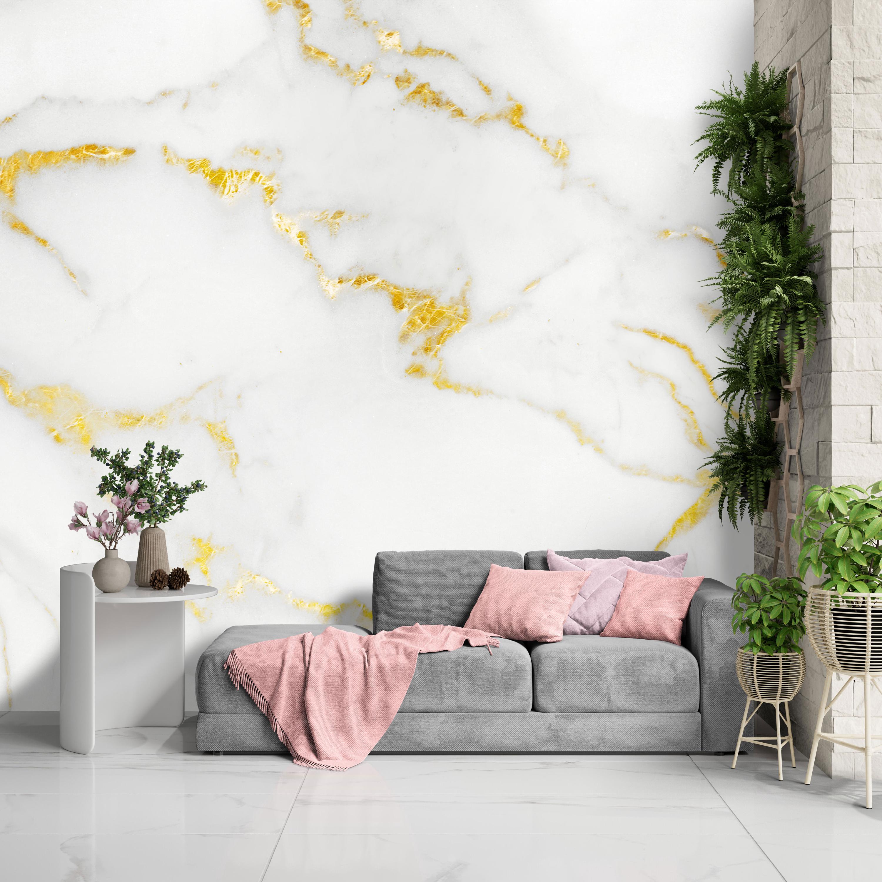 White Marble Wall Mural with Gold Veins – Luxury Stone Pattern Wallpaper for Elegant Interiors, Living Rooms, and Accent Walls