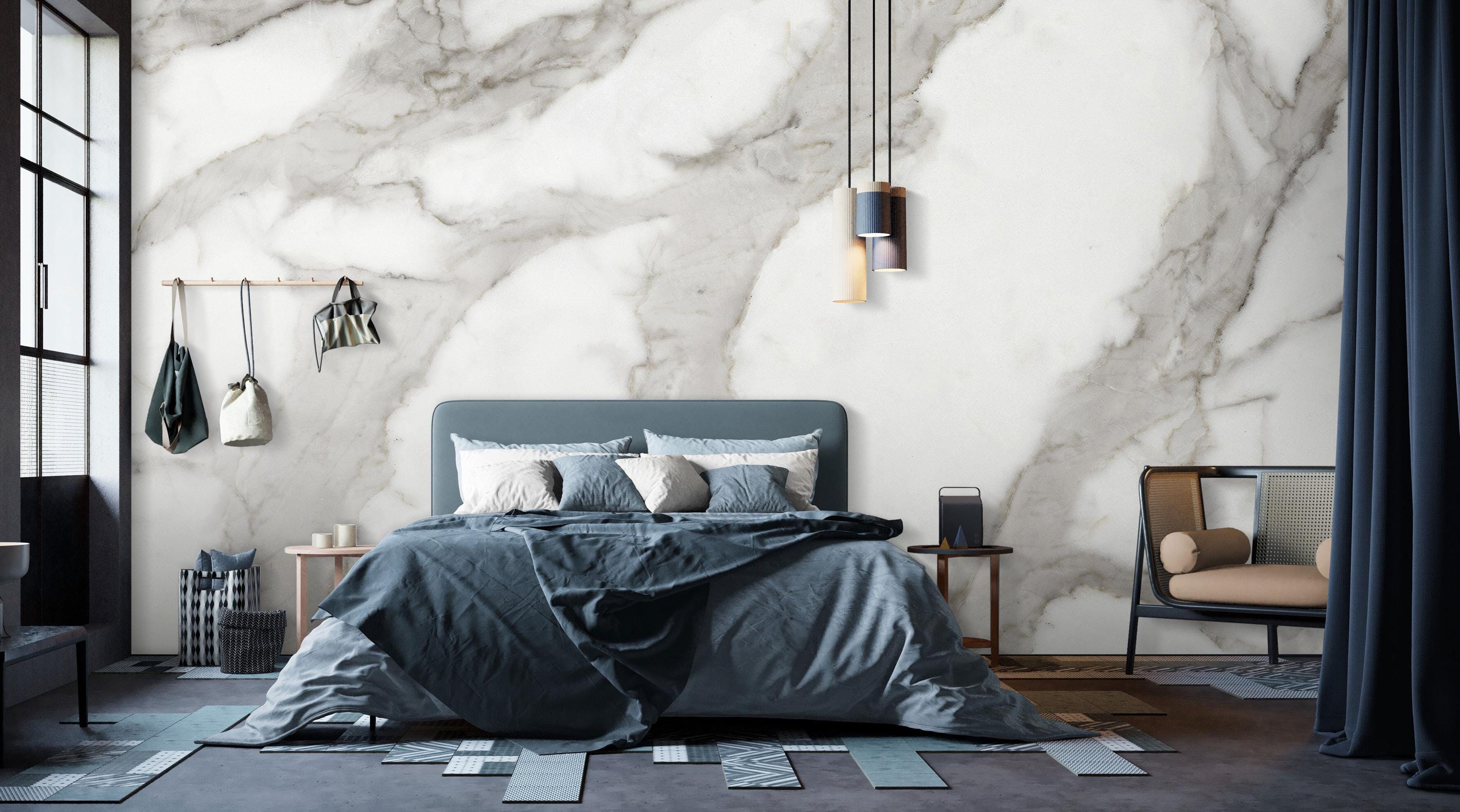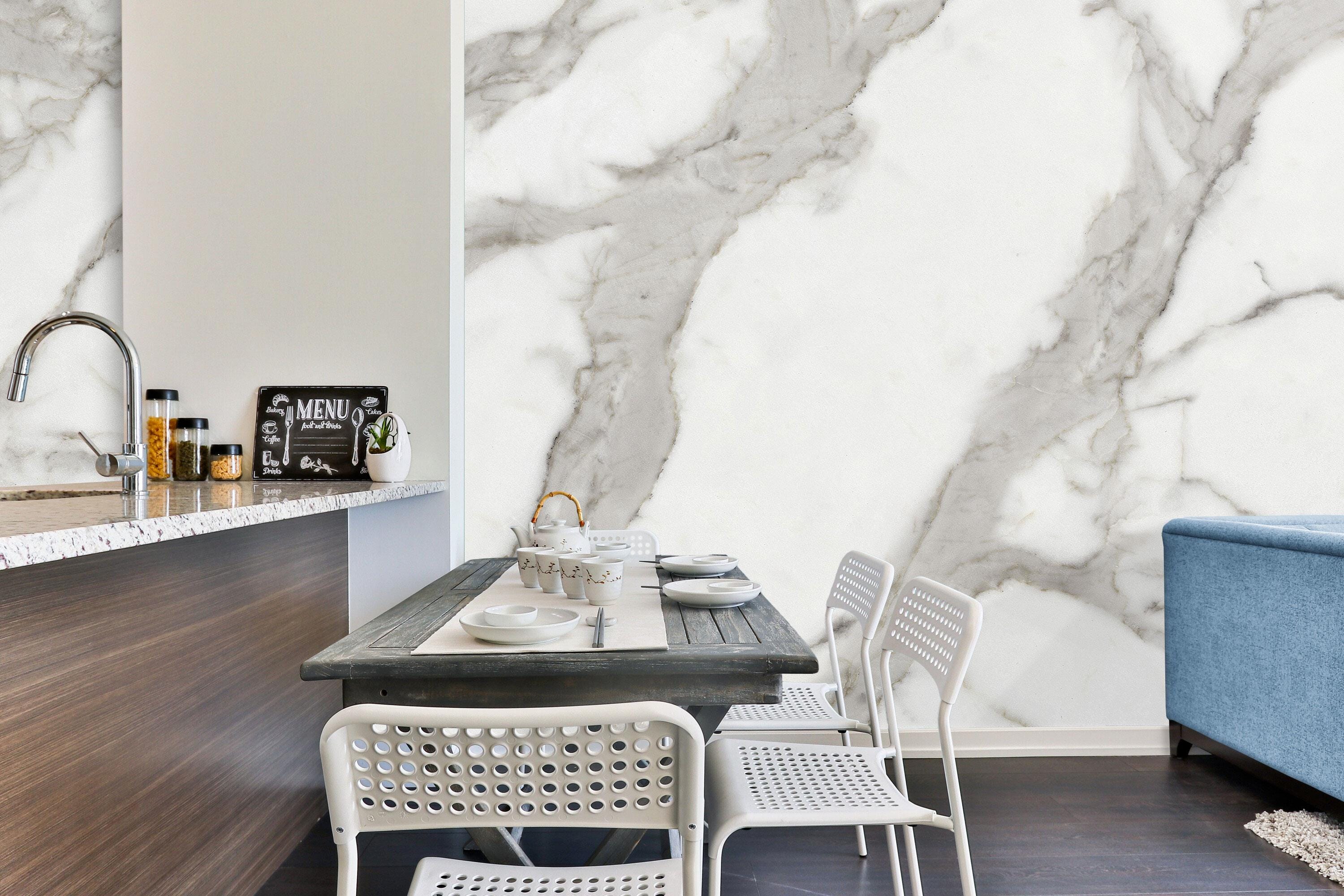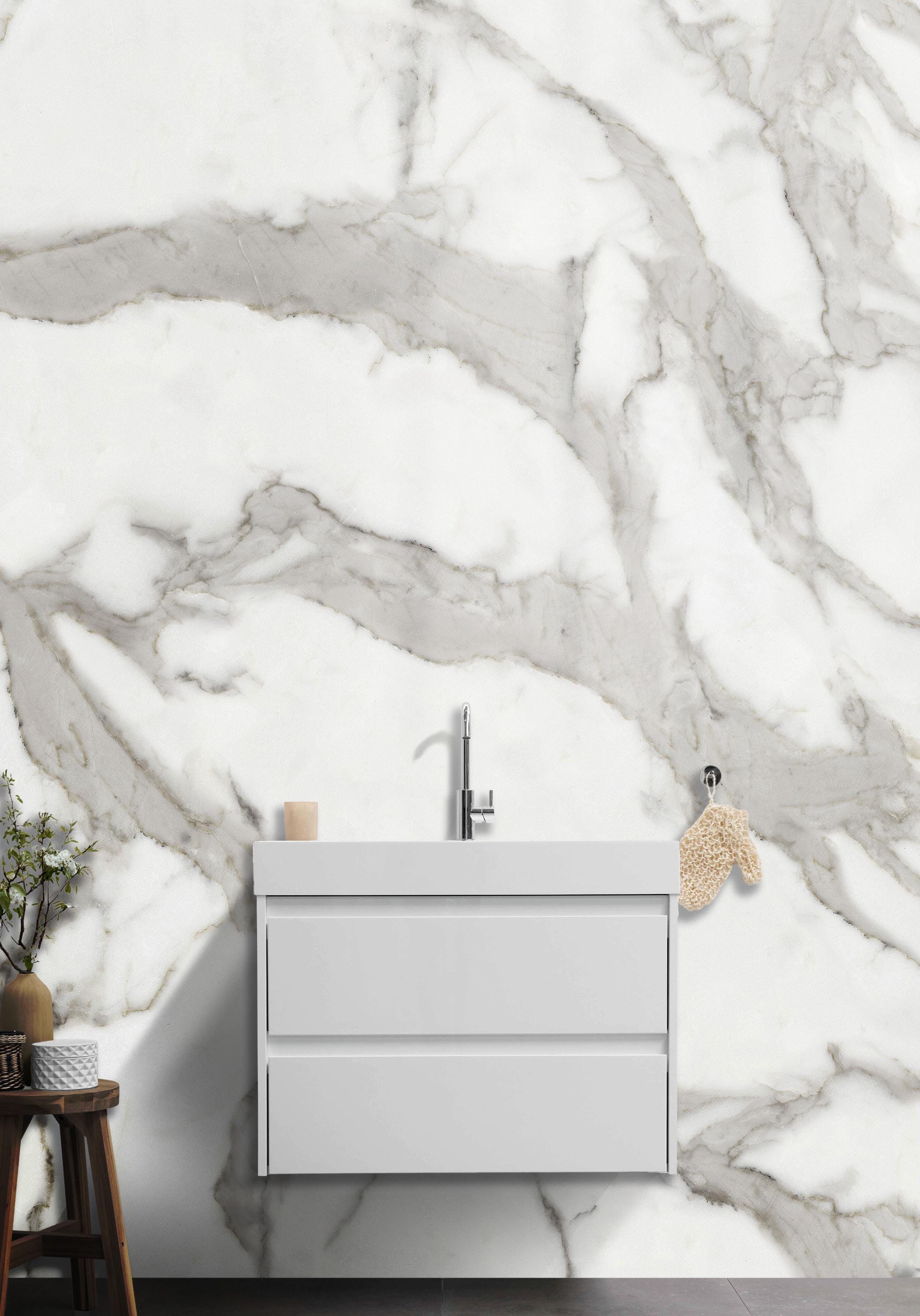 Bring timeless elegance into your bathroom with this white marble wallpaper mural. Designed with realistic stone textures and natural grey veining, it offers a high-end look without the cost of real marble. Perfect for bathroom vanity walls, spa spaces, or modern interiors seeking a luxury finish.