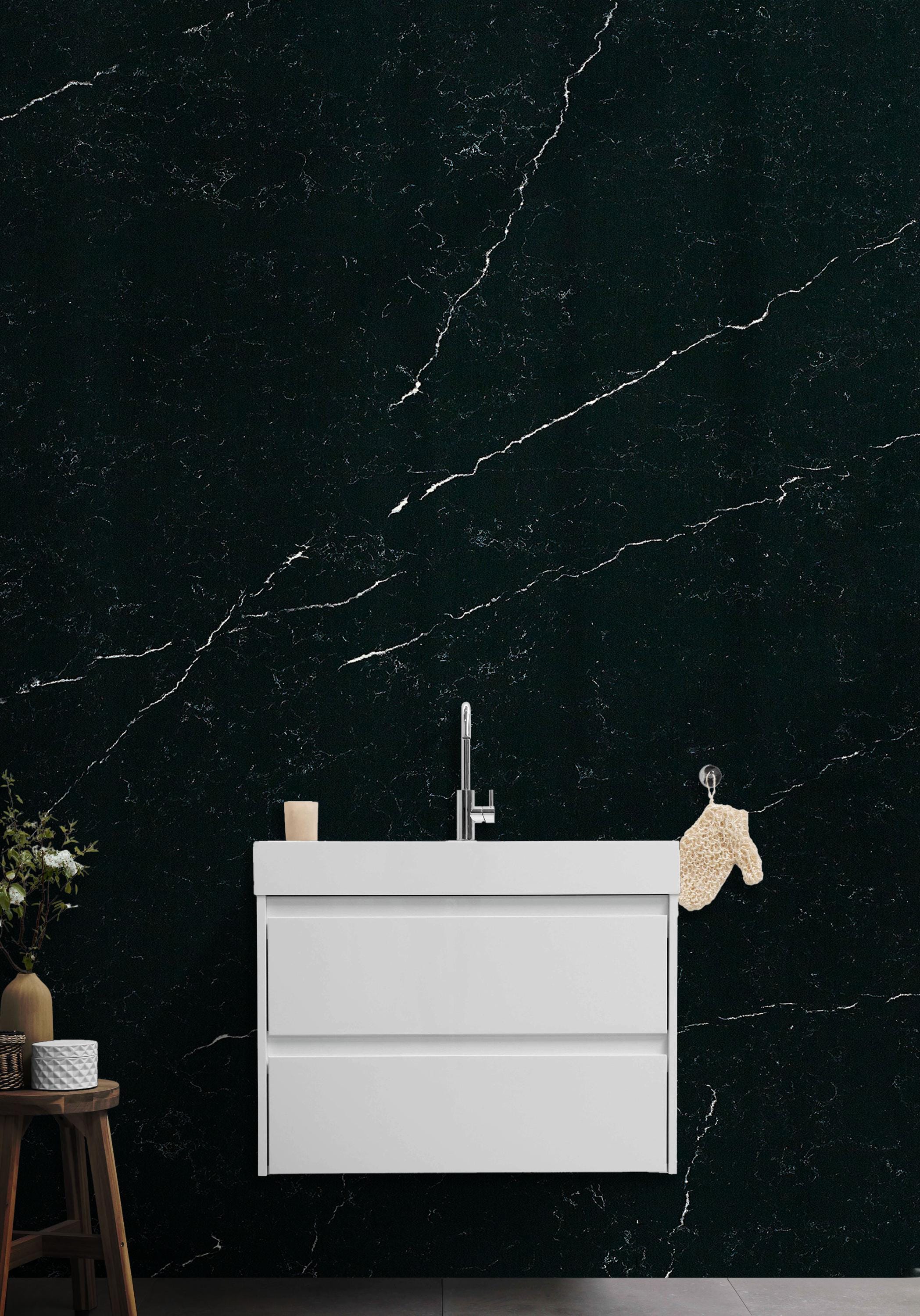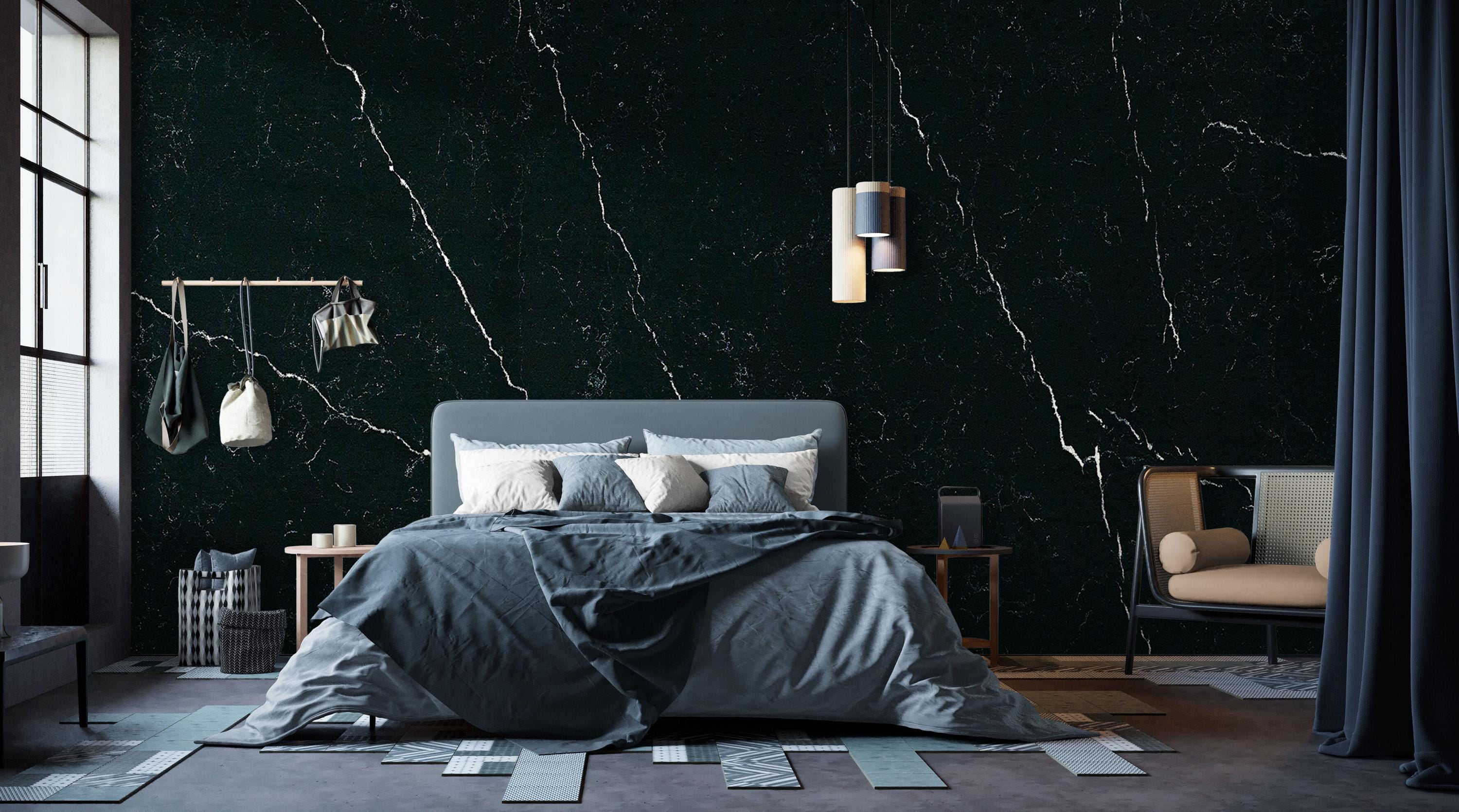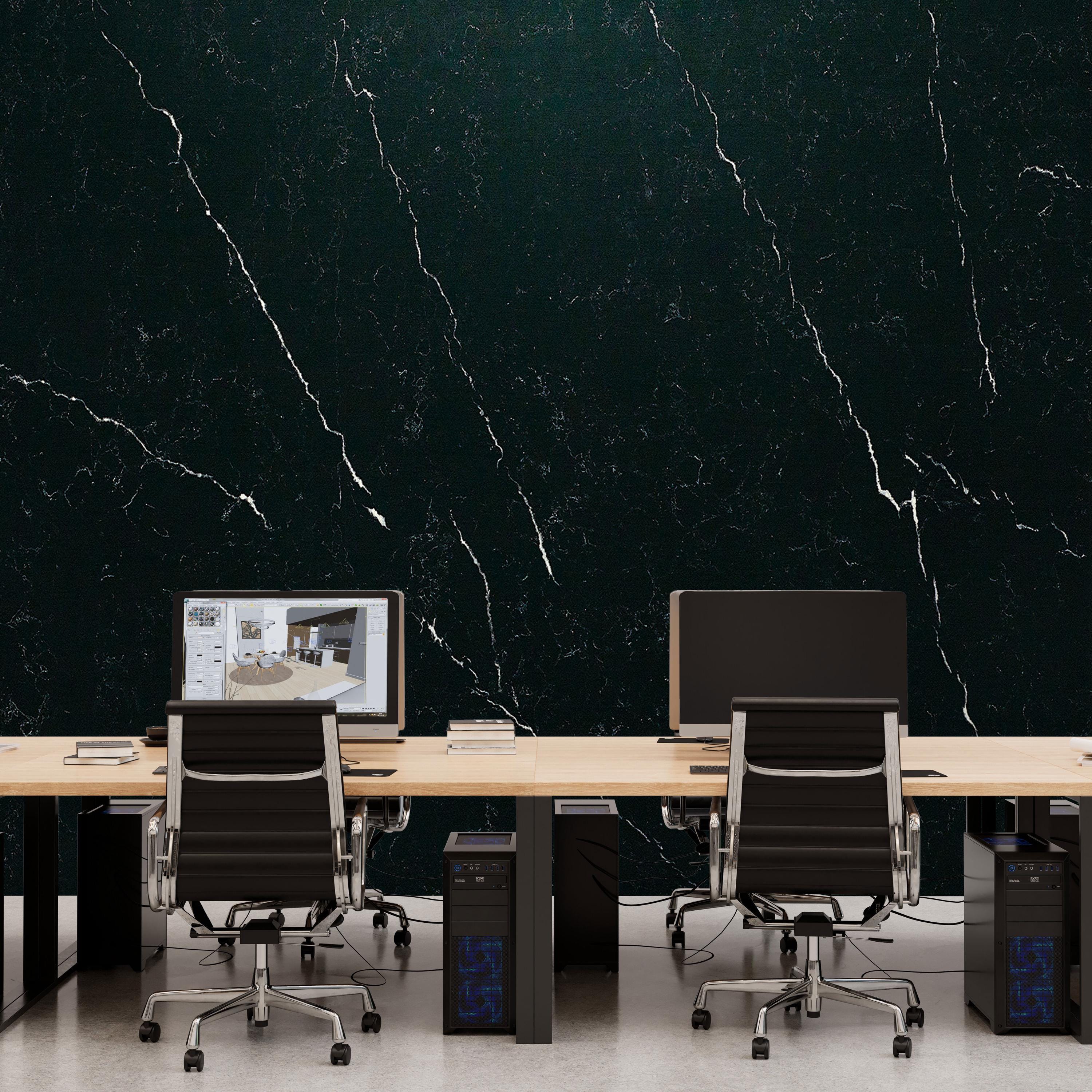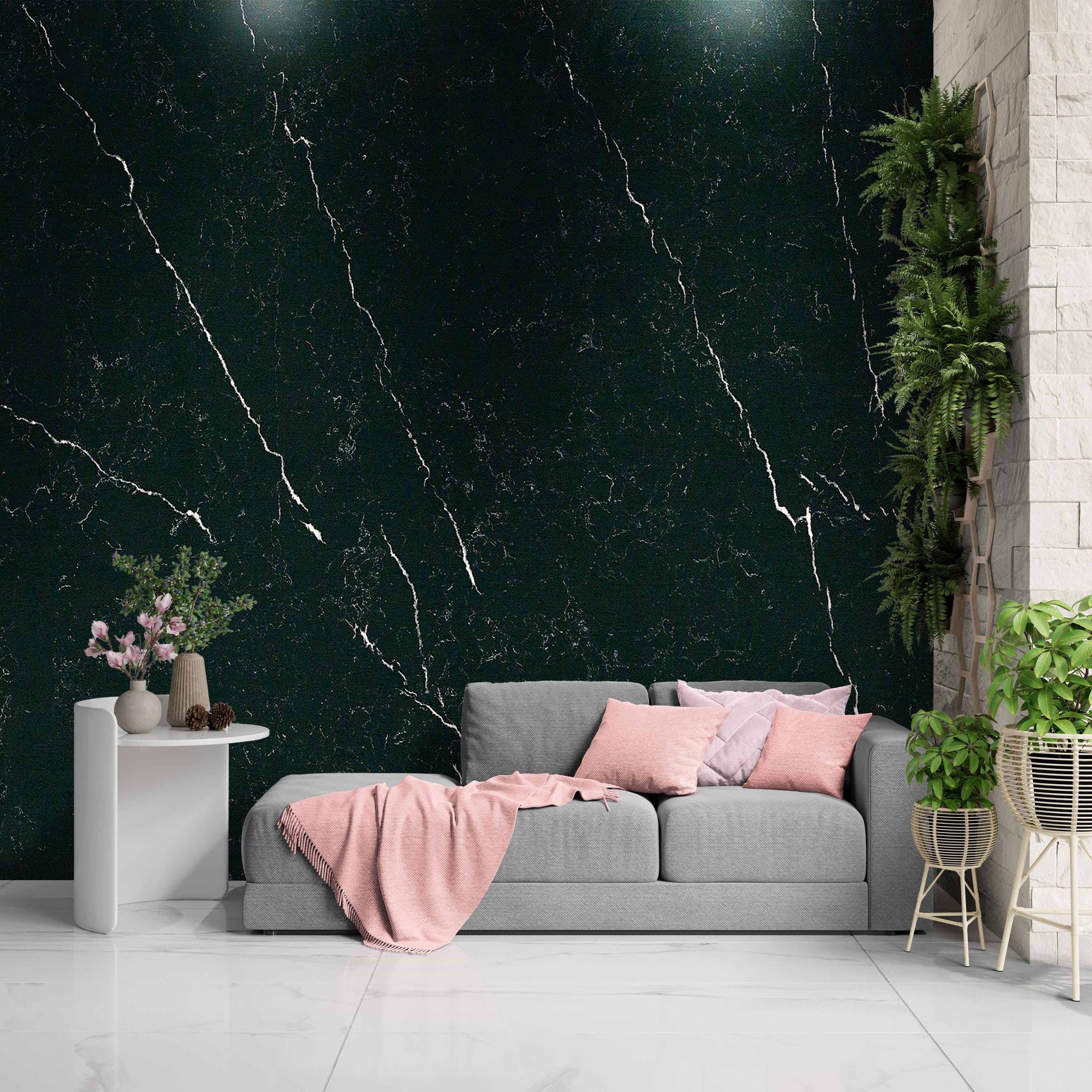 Dark Marble Wall Mural with White Veins – Bold Black Stone Look Wallpaper for Modern Living Rooms, Offices, or Accent Feature Walls
