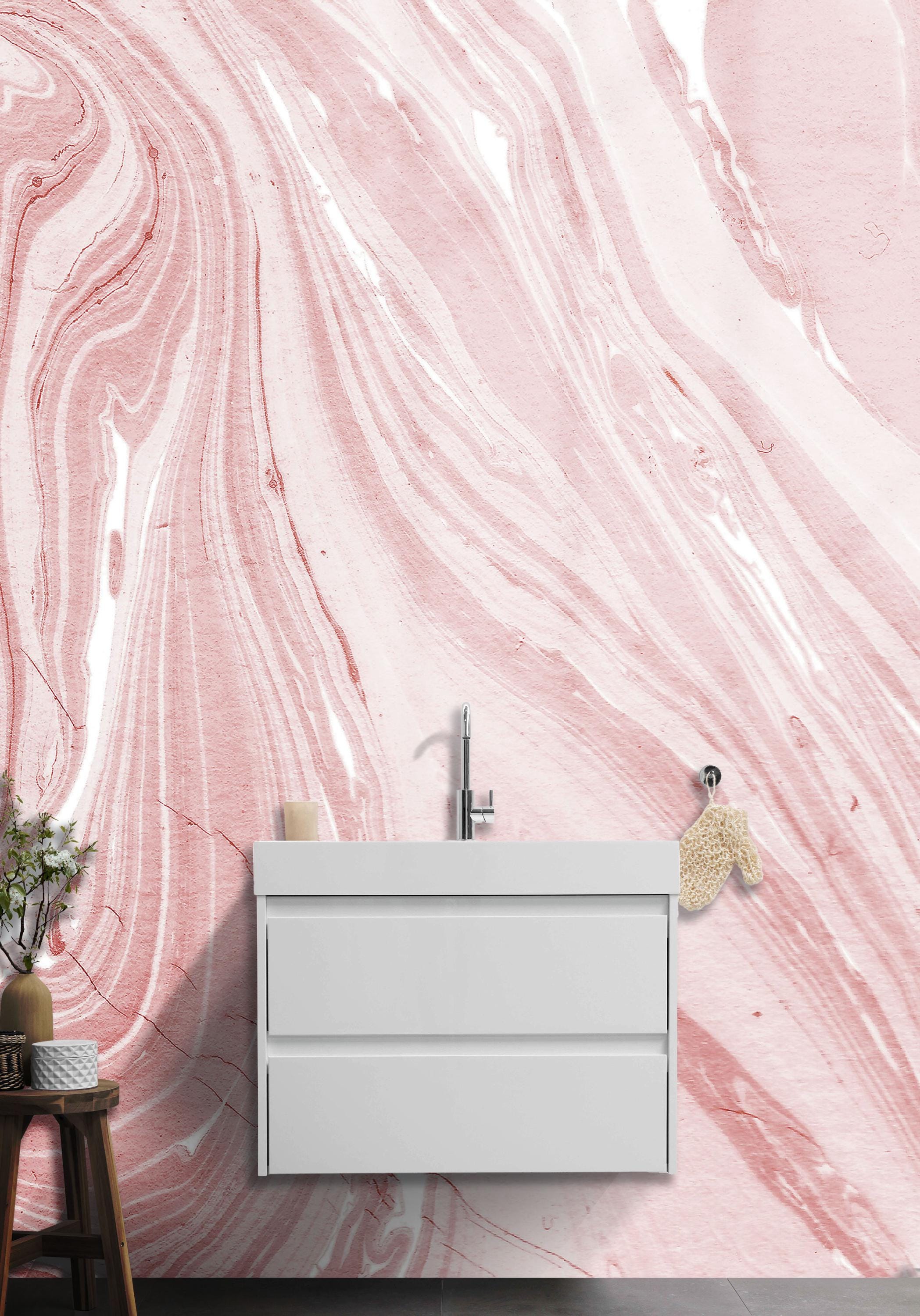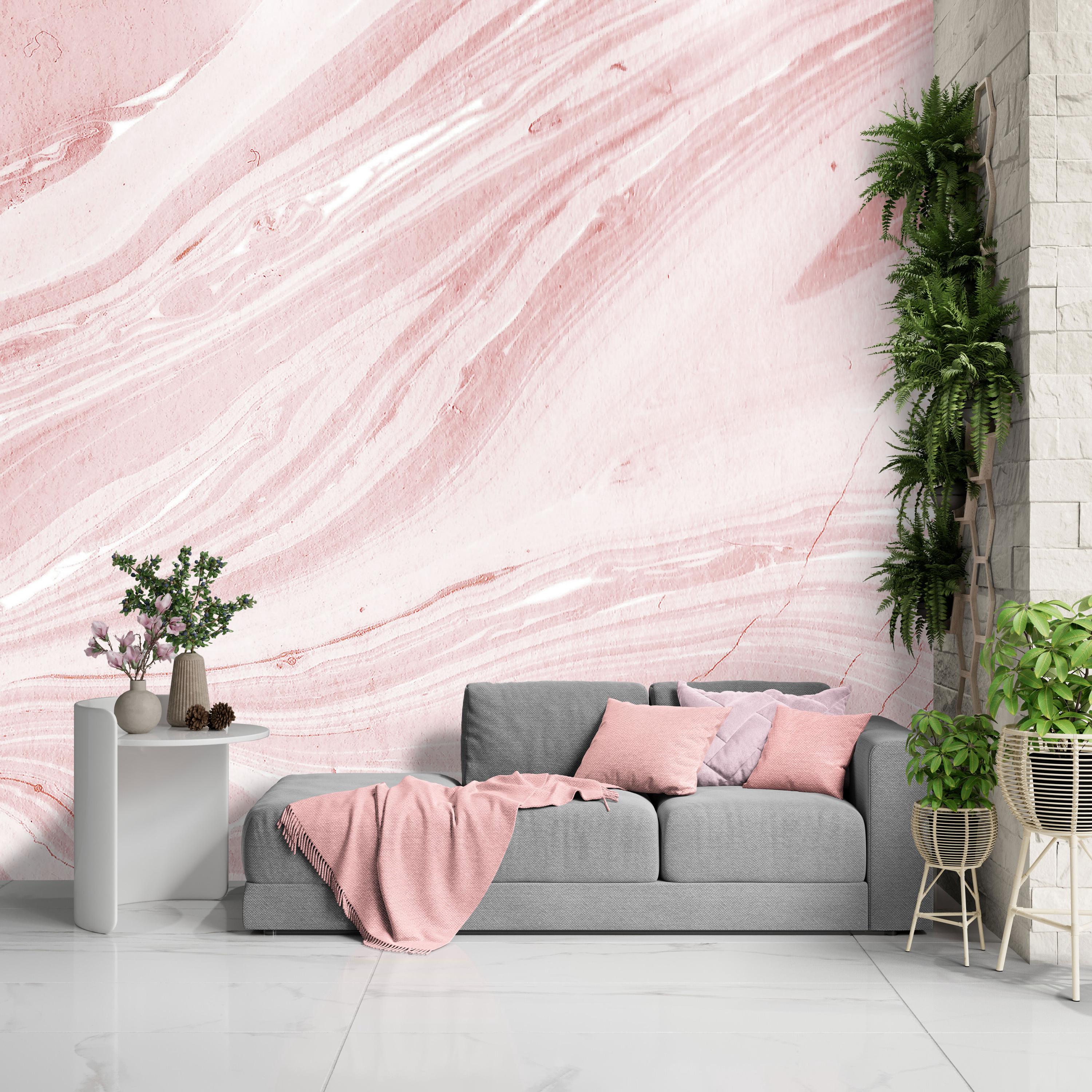Pink Marble Effect Wallpaper Mural – Soft Stone Texture Wall Art for Girls Bedroom, Living Room Accent, Elegant Pastel Home Décor