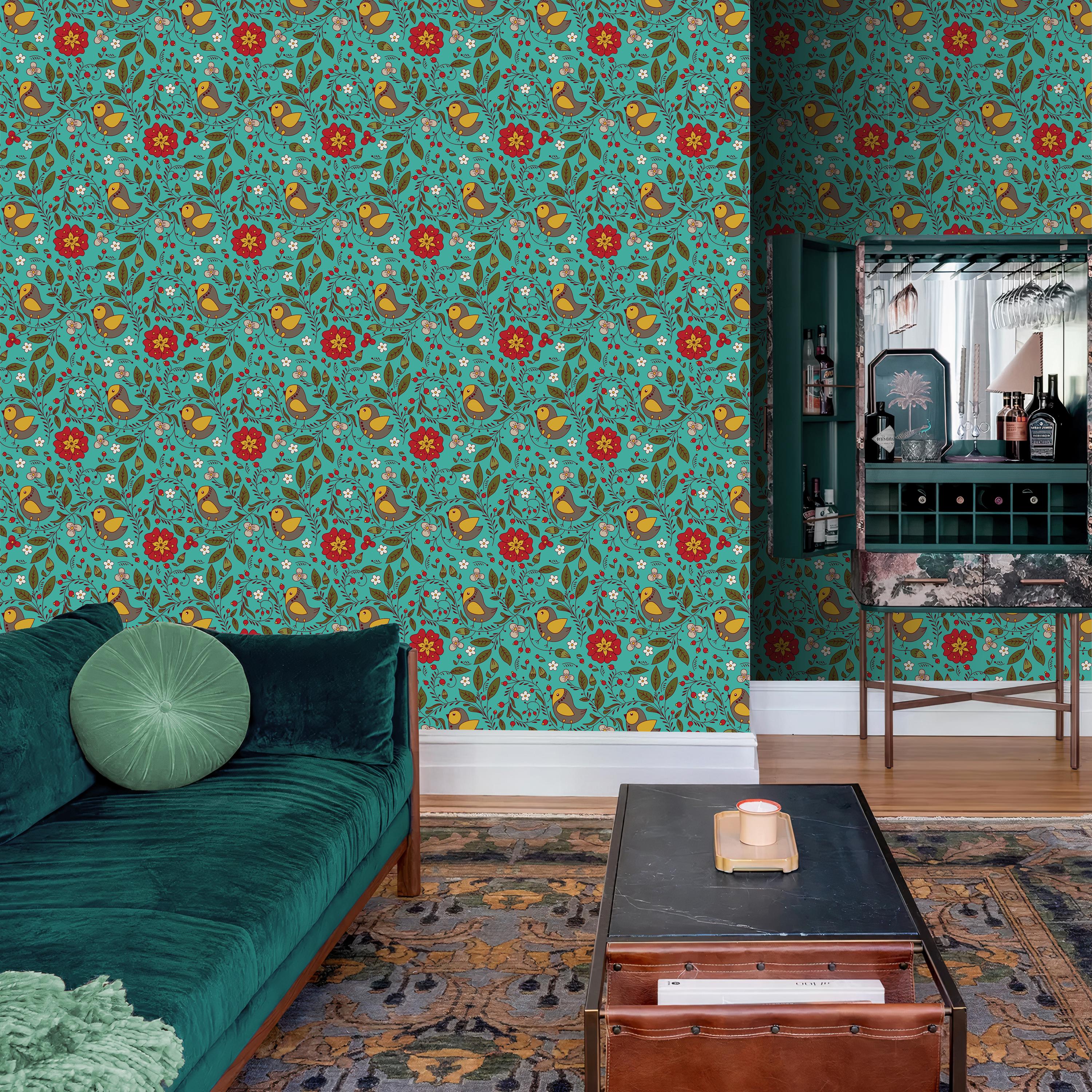 Bring rich color and timeless elegance to your space with this teal and orange damask tile wallpaper. The intricate ethnic pattern adds a bold statement to living rooms, home offices, or creative studios. With its peel-and-stick backing, it’s an effortless and removable wallpaper option for instant transformation.