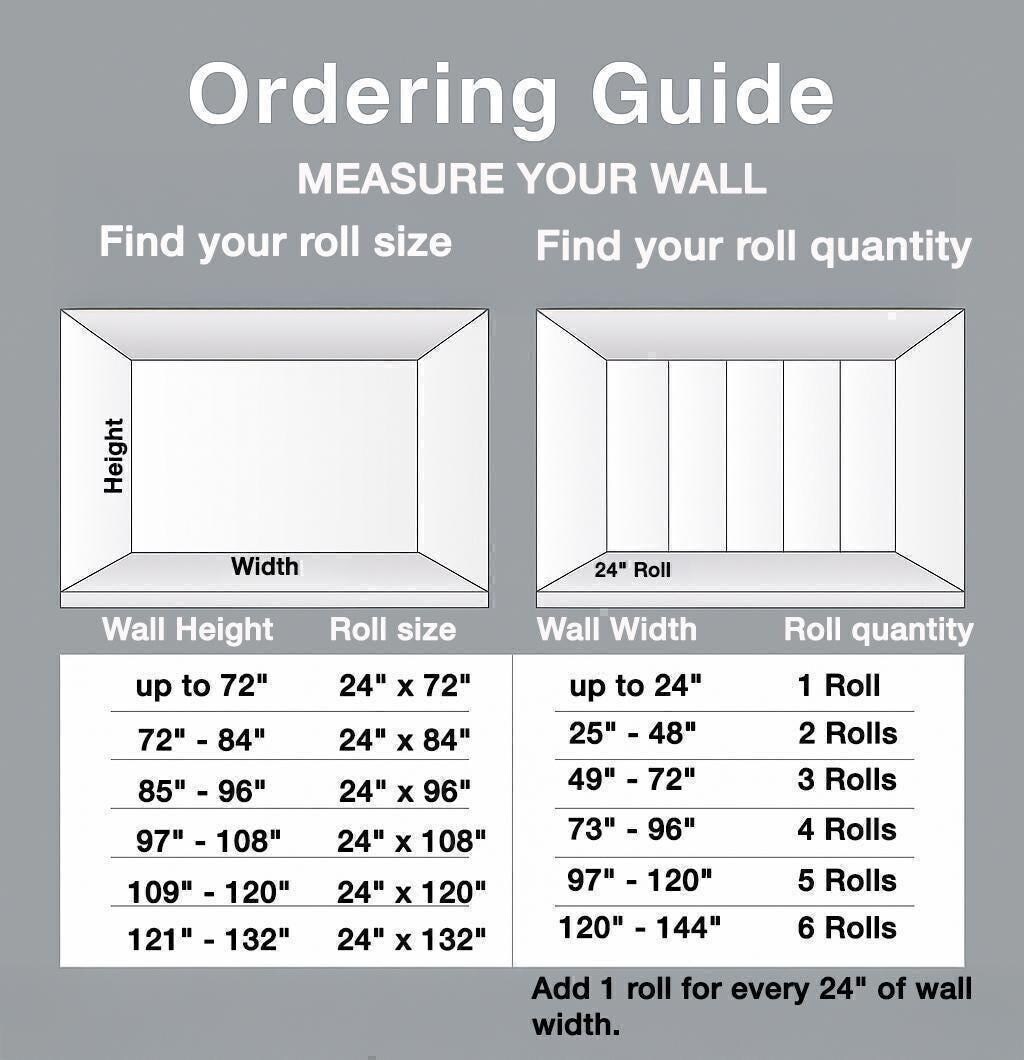 Example: For a wall 72 inches (183 cm) wide, order 3 rolls.