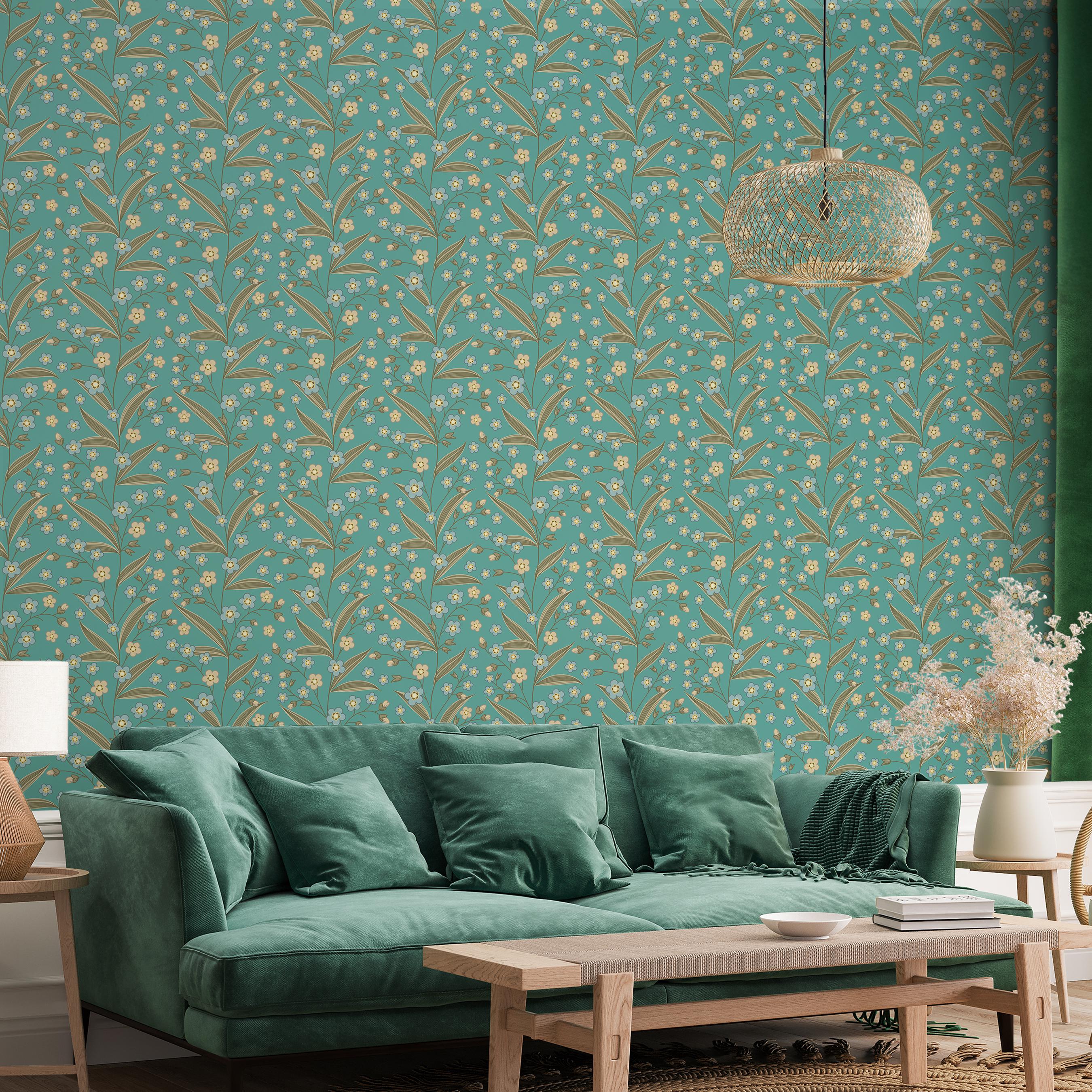 Create a calming atmosphere with this vintage green floral wallpaper, featuring elegant leafy vines and delicate flowers in a nature-inspired palette. Perfect for living rooms, bedrooms, or entryways, this peel-and-stick design offers easy installation and a refined botanical aesthetic, ideal for both modern and classic interiors.
