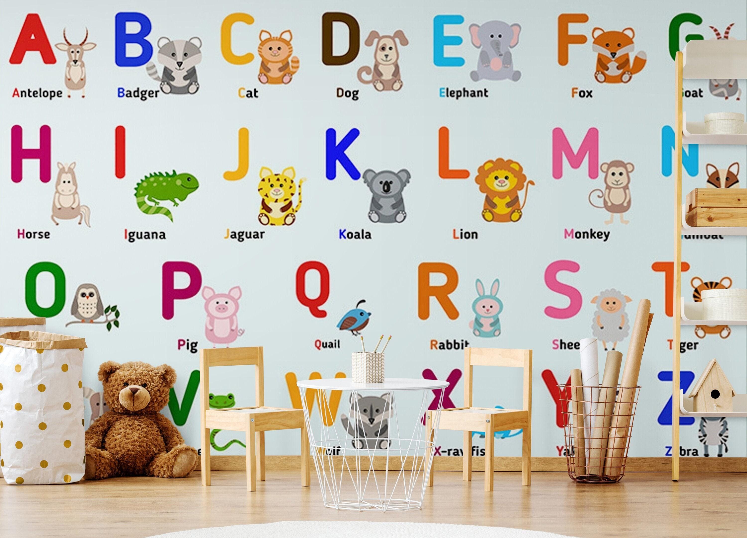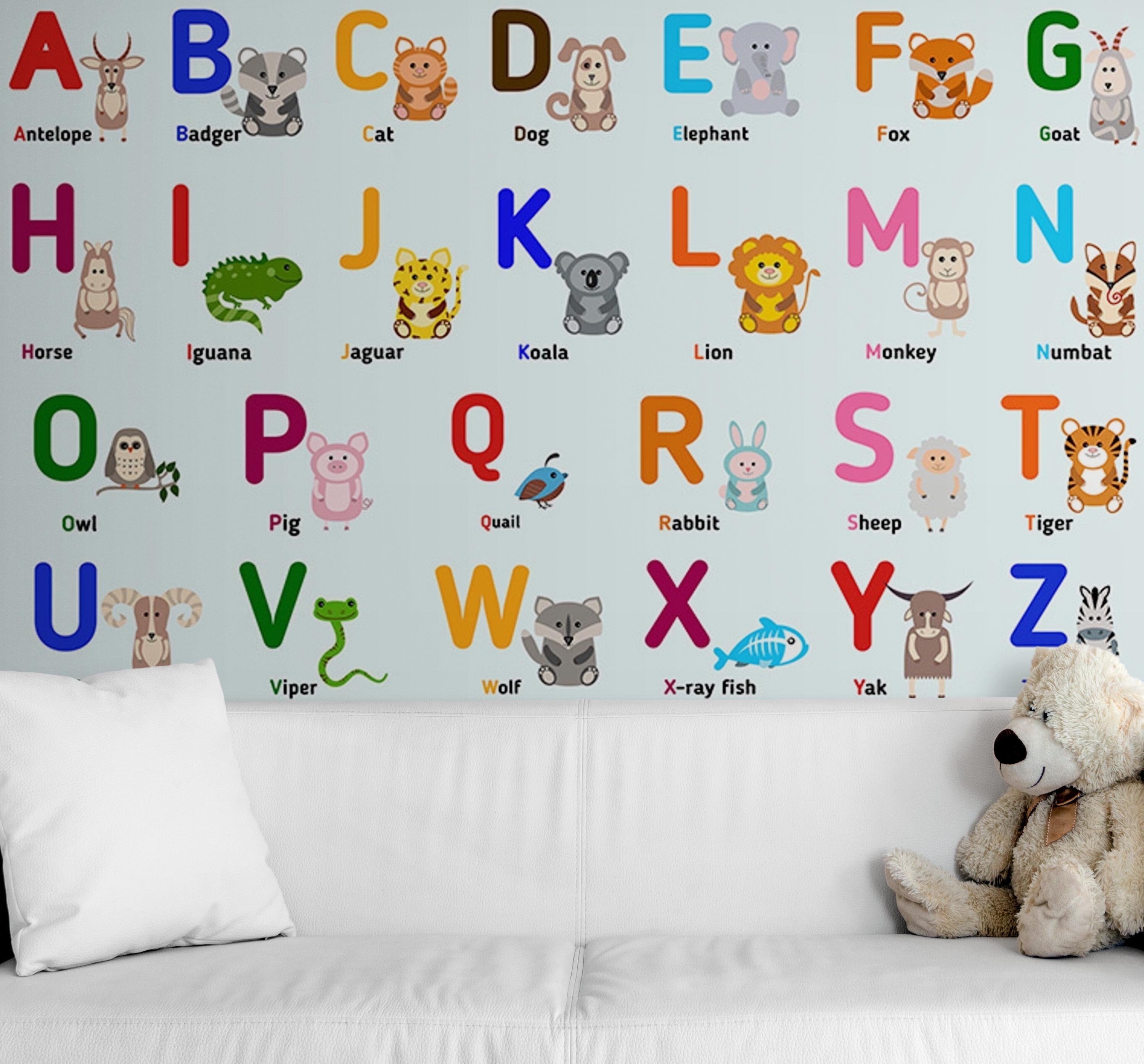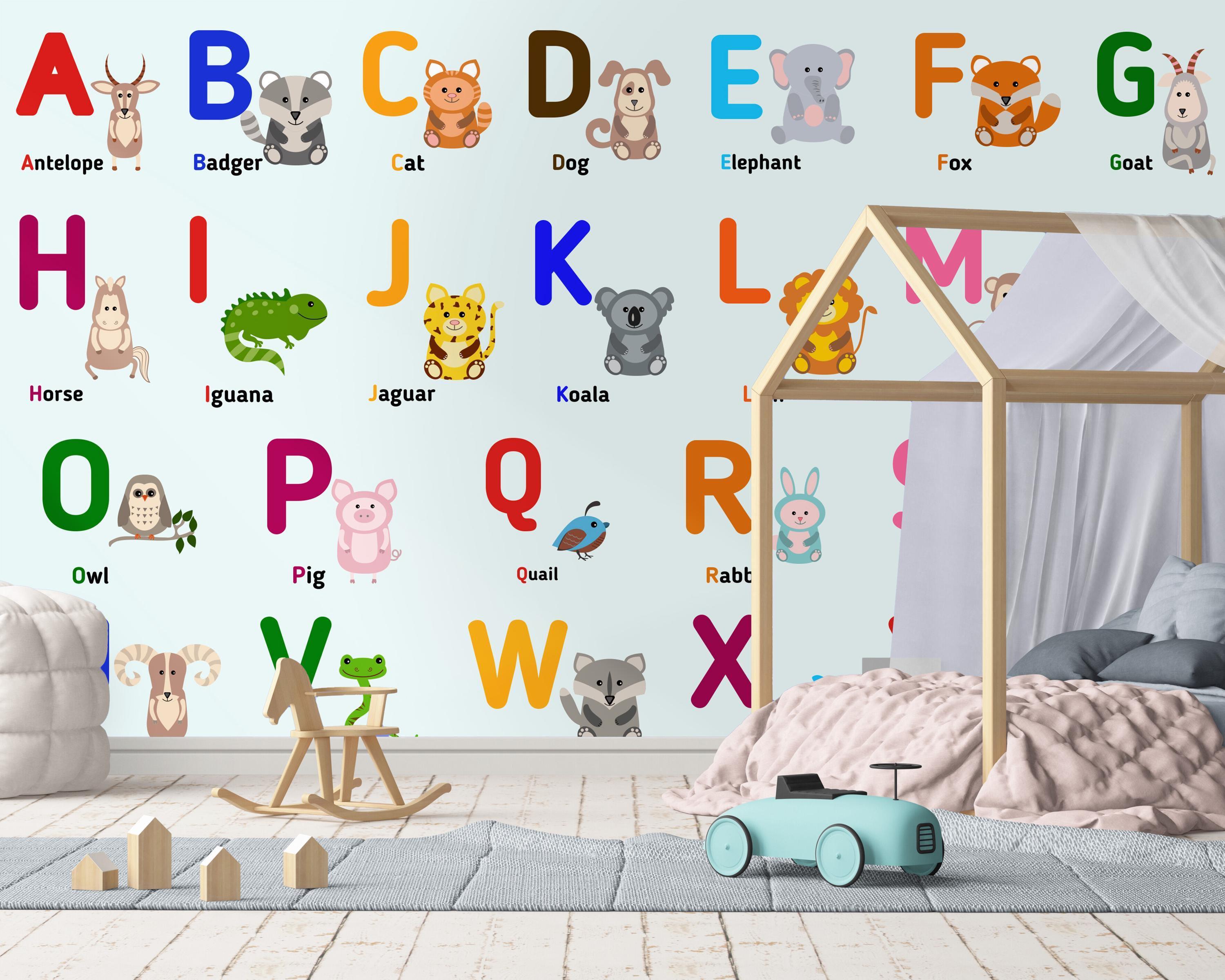 This charming mural features the alphabet with each letter showcasing an adorable animal, making it the perfect decoration for any baby room.