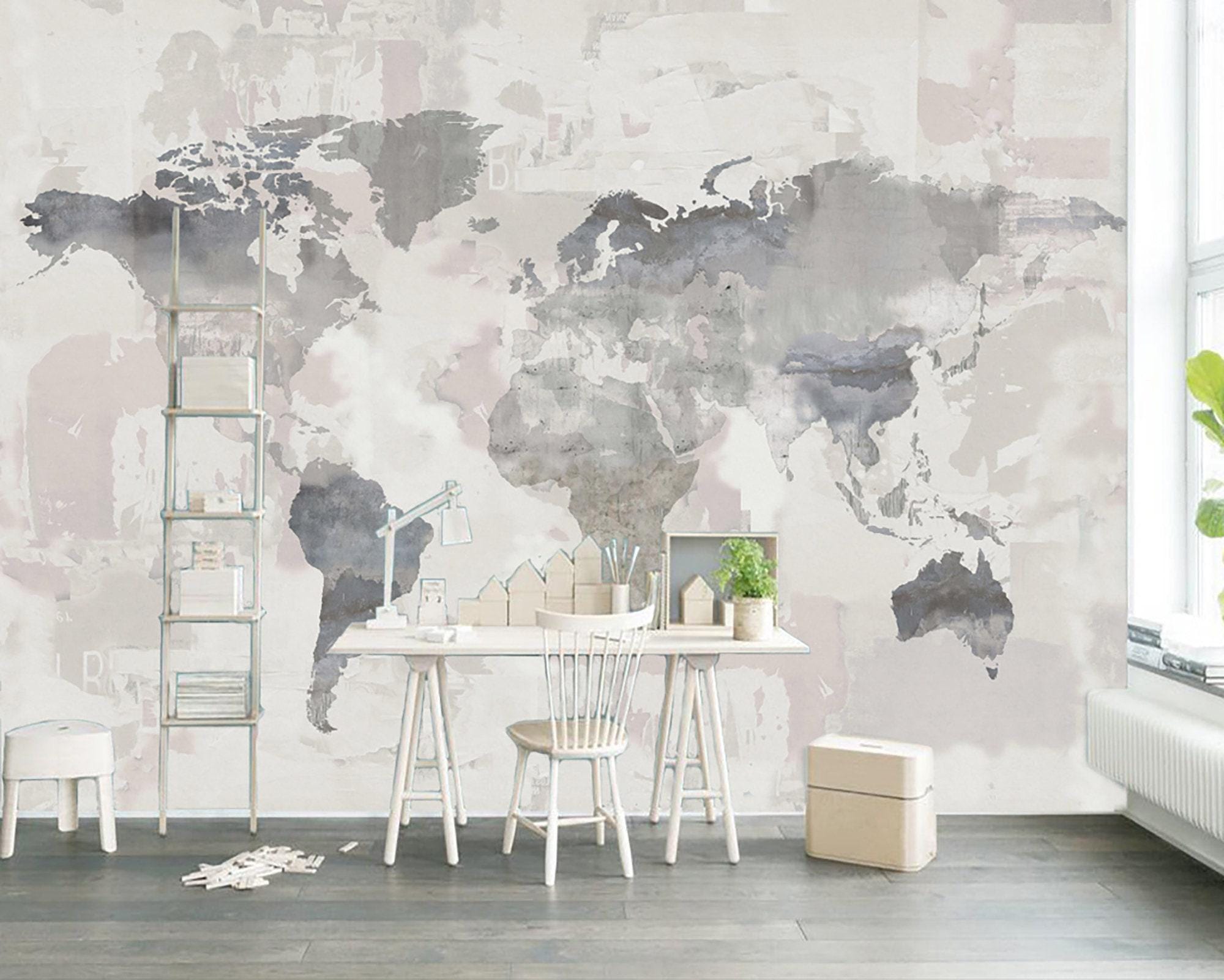 World Map Wall Mural Modern Home Decor For Living Room Bedroom Entryway Cafe