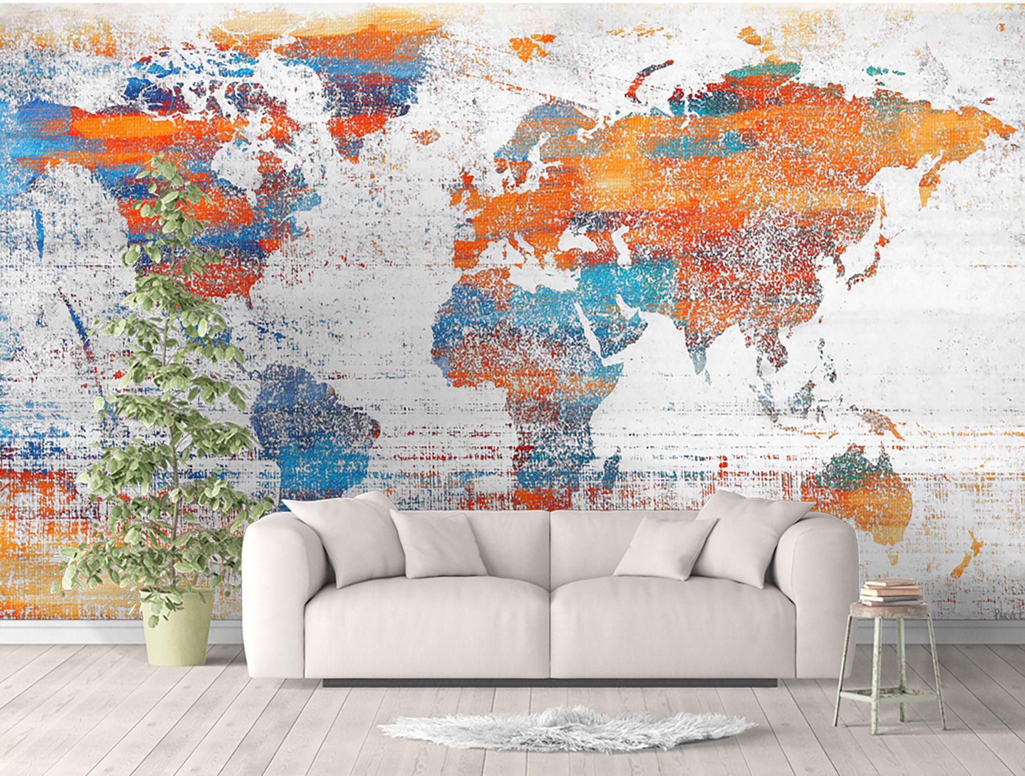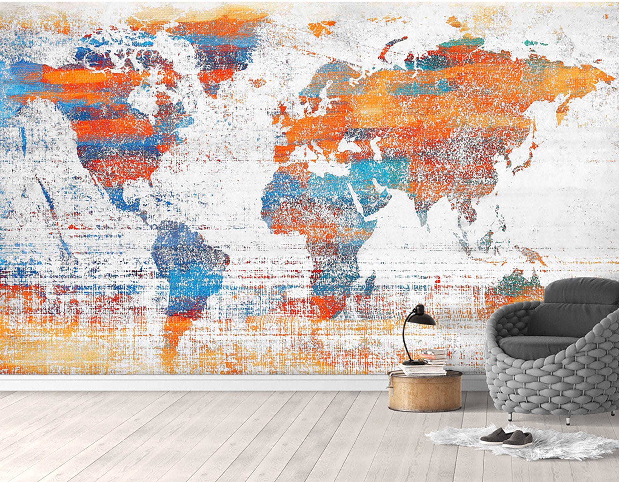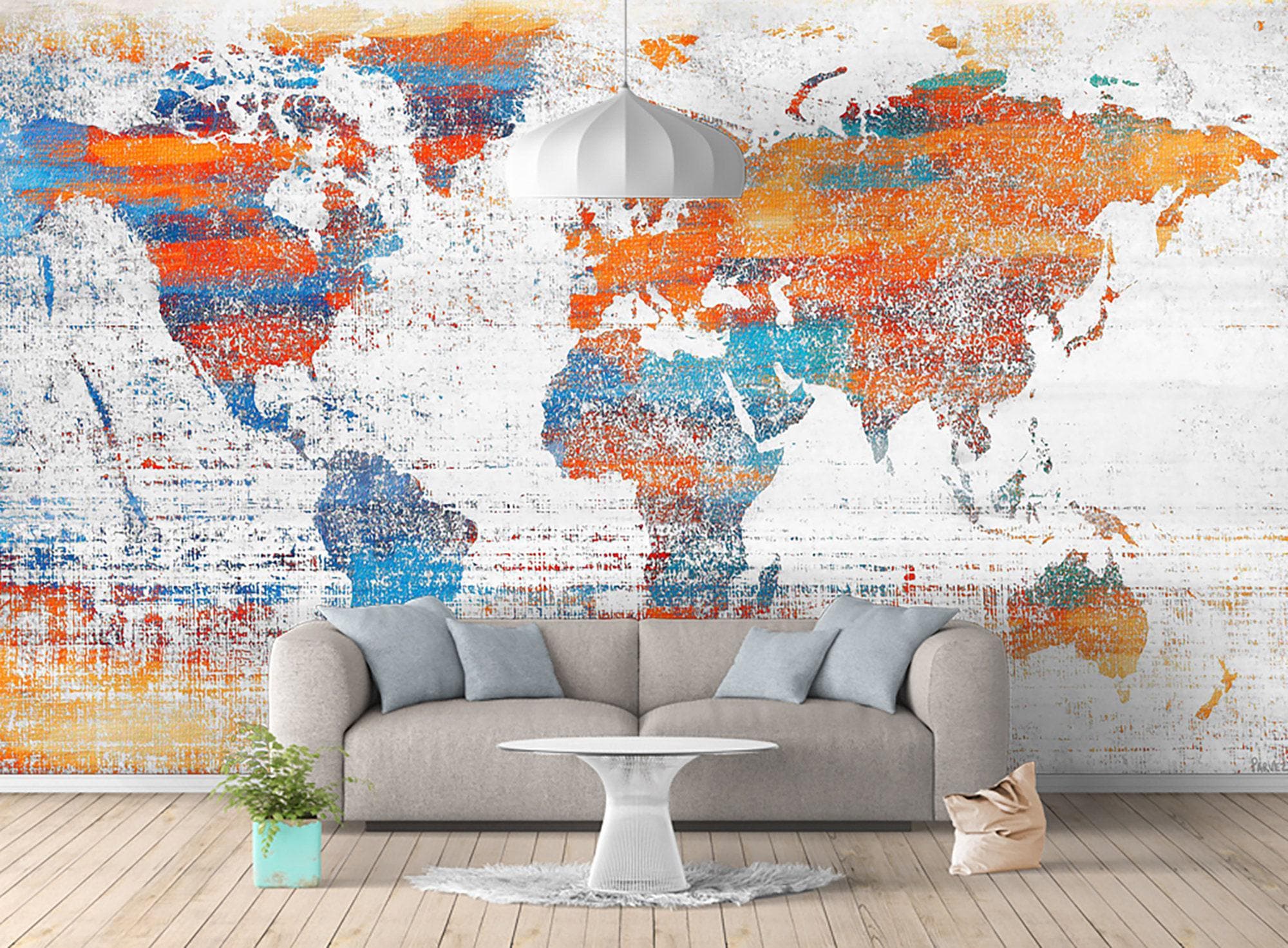 World Map Wall Mural Modern Home Decor For Living Room Bedroom Entryway Cafe
