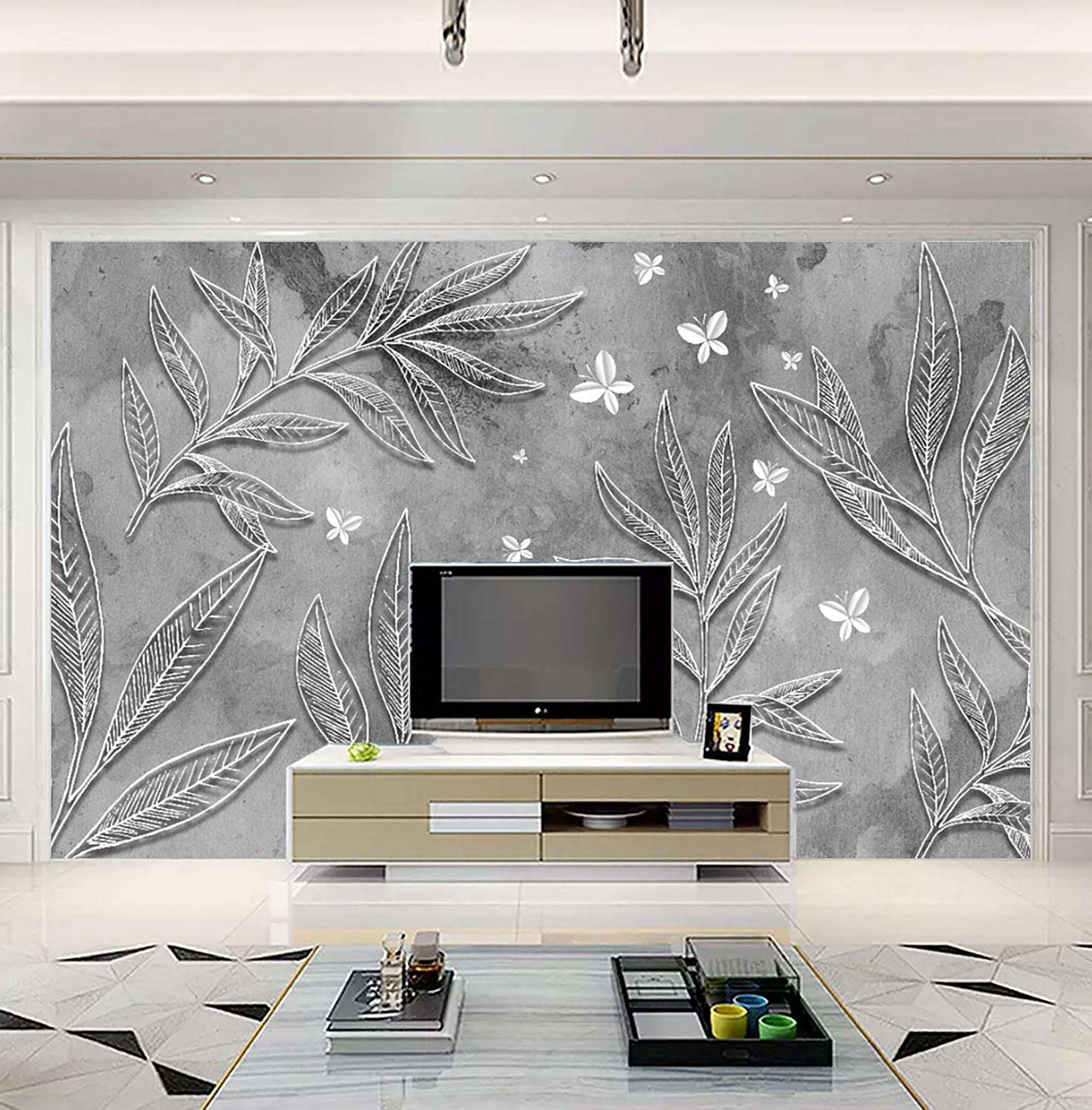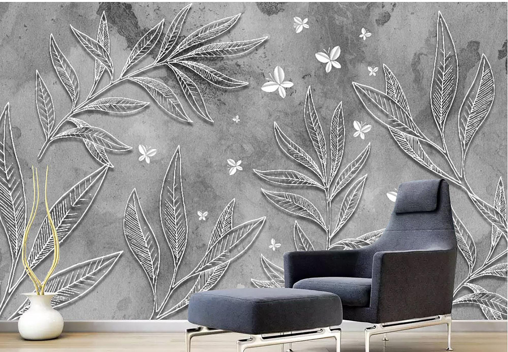 Grey Leafs Wallpaper 3D Embossed Floral Wall Mural Modern Home Decor For Living Room Bedroom Entryway Cafe