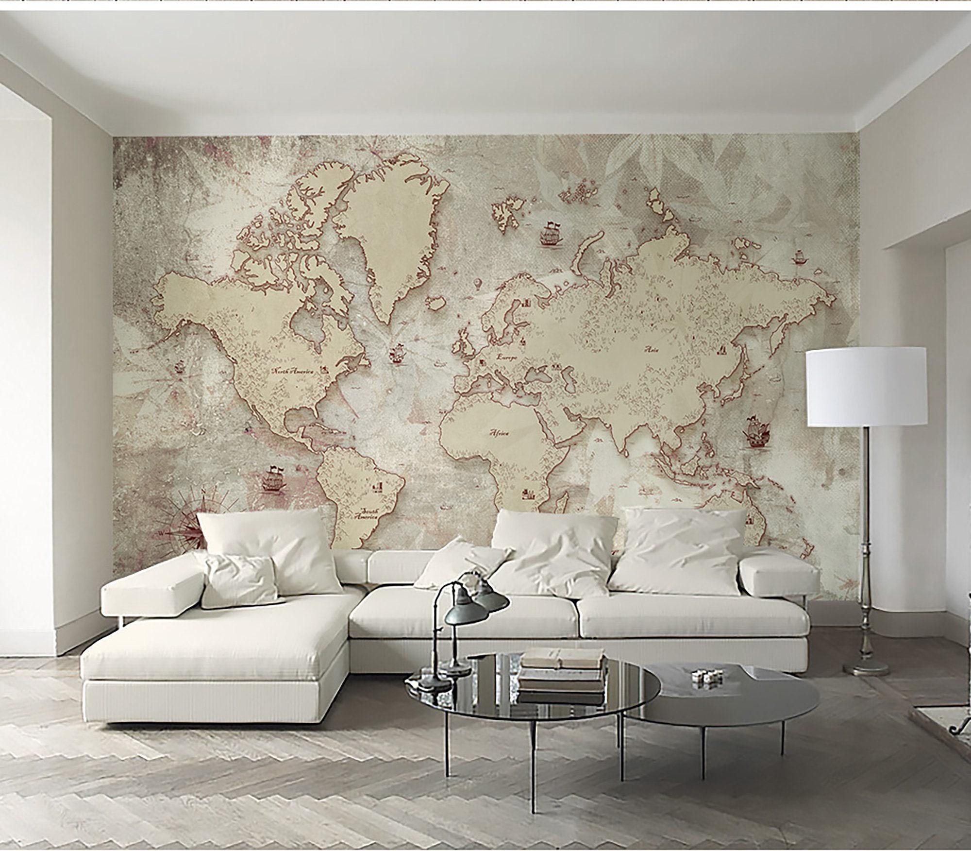 World Map Wall Mural Modern Home Decor For Living Room Bedroom Entryway Cafe