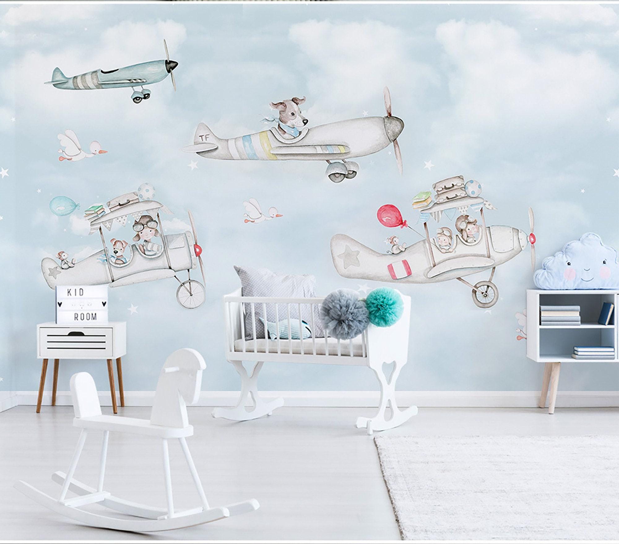 Child Room Plane Cartoon Wallpaper Nursery Wall Mural Baby Room Decoration (CR86)