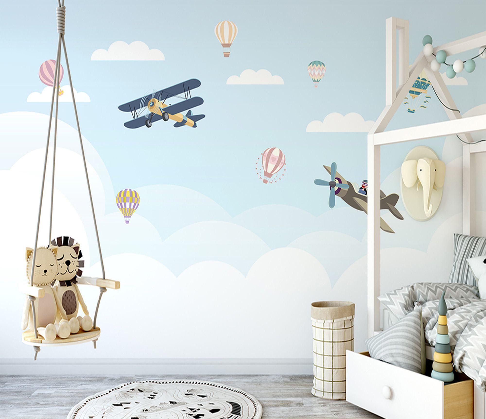 Plane and Air Baloon Child Room Wallpaper Large Kids Room Wall Mural