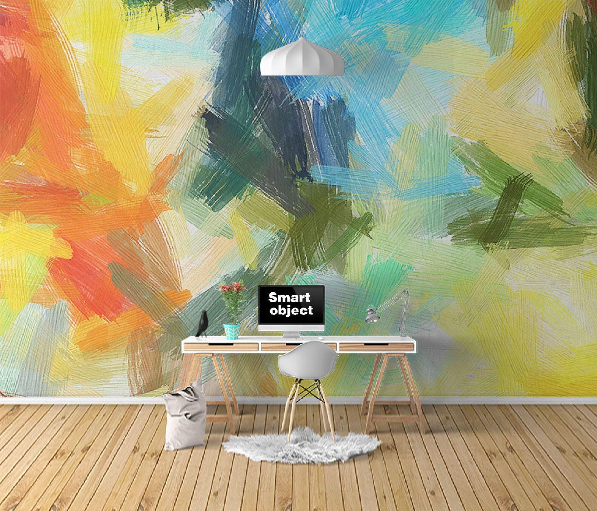 Multi Color Abstract Wallpaper Brush Strokes Wall Mural Fabric Textile Wallpaper, High Quality, For Living Room, Bedroom, Cafe