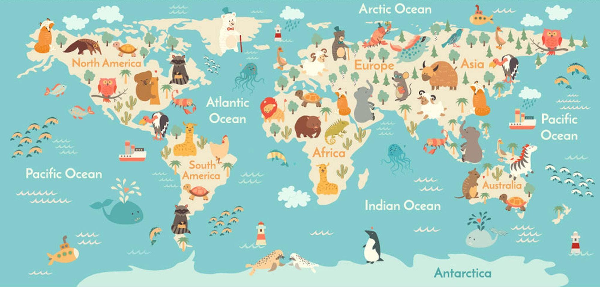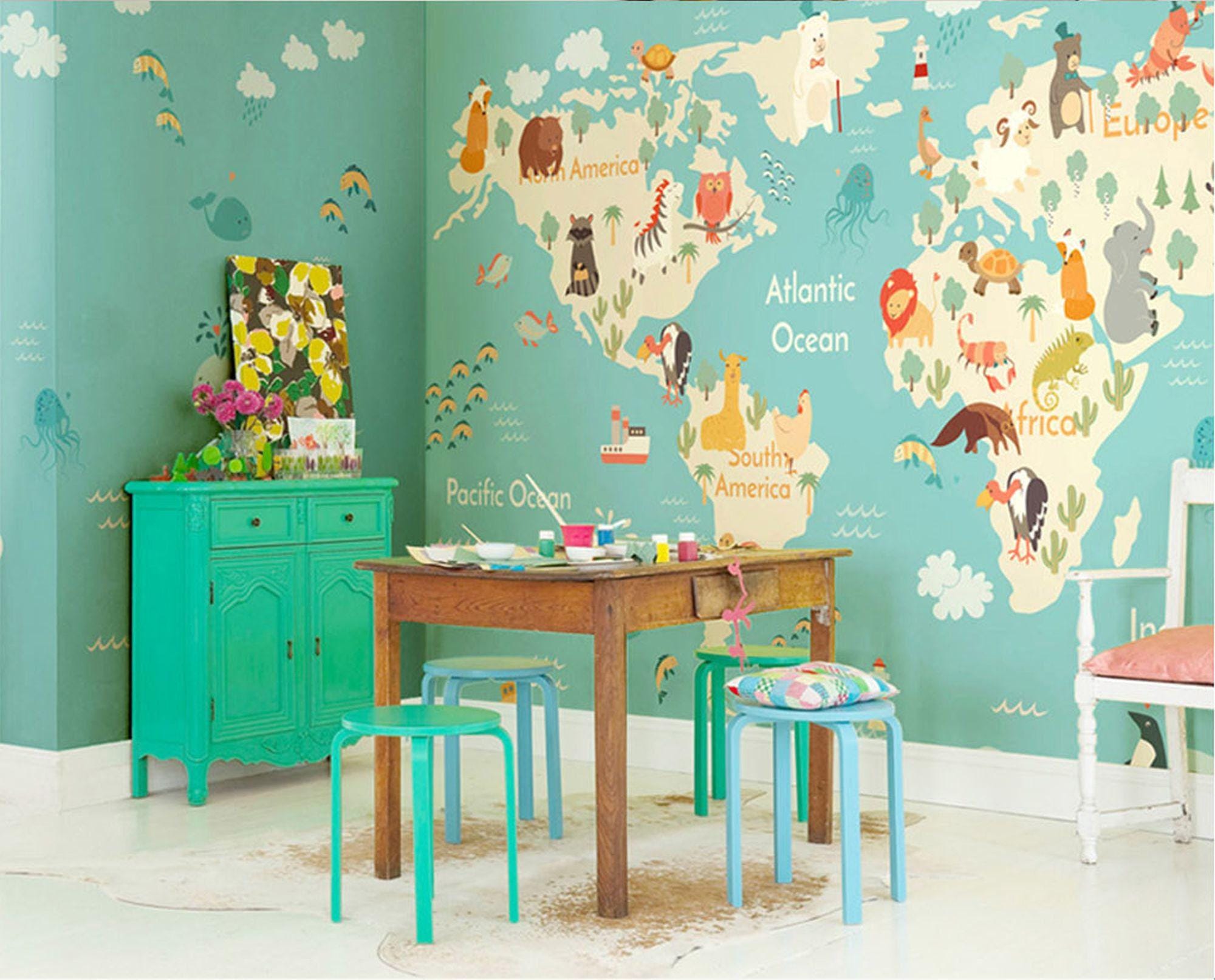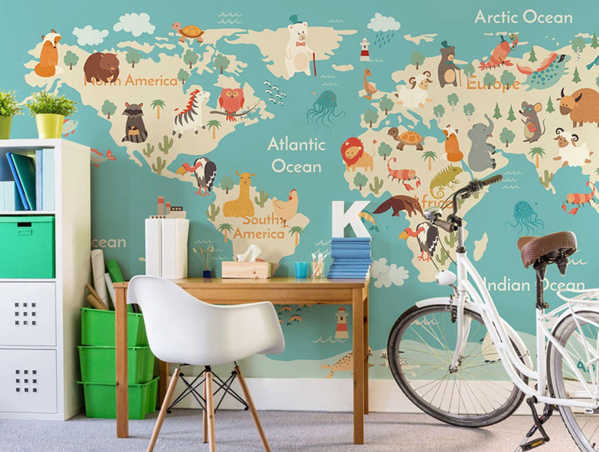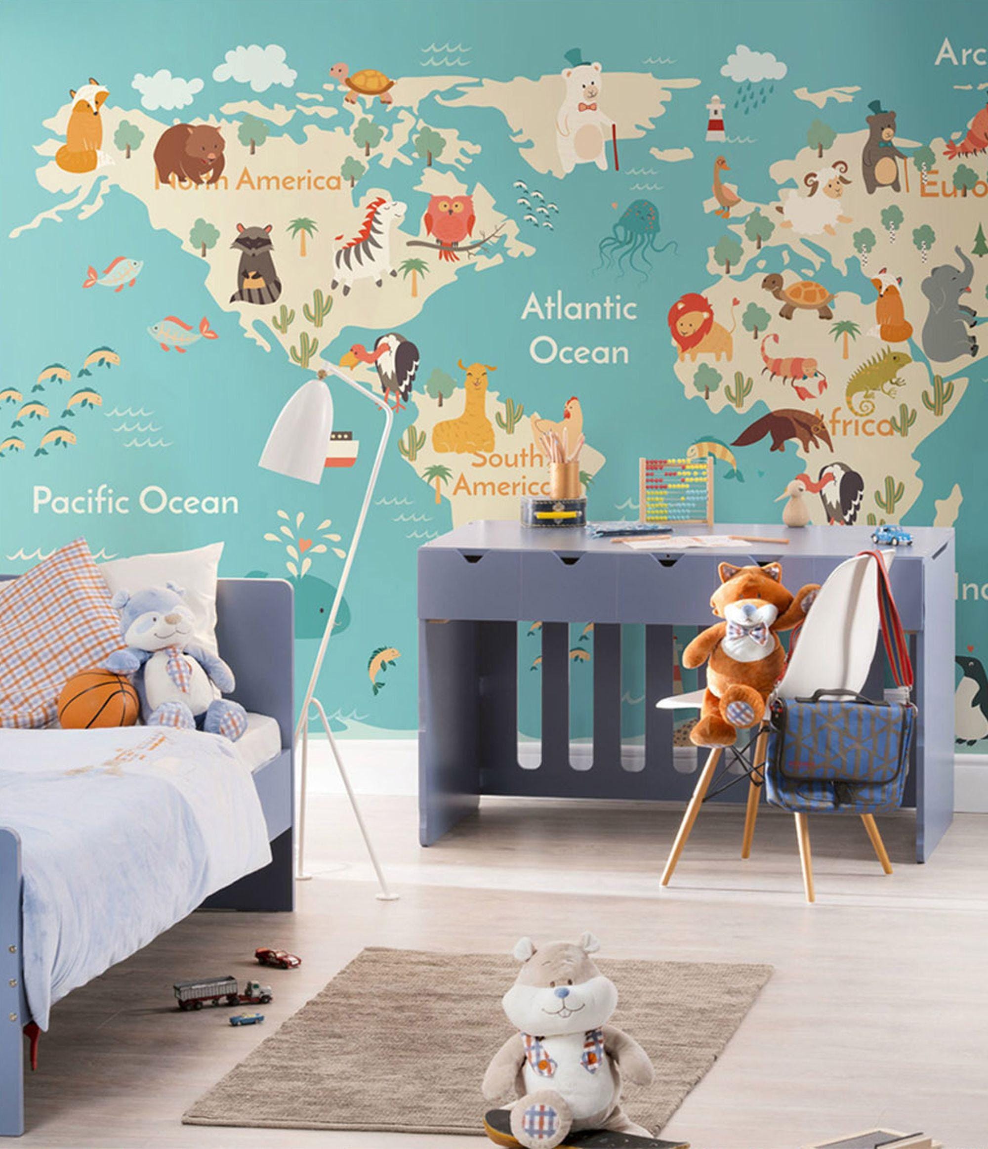 World Map Child Room Wallpaper Nursery Wall Mural Child Room Decoration